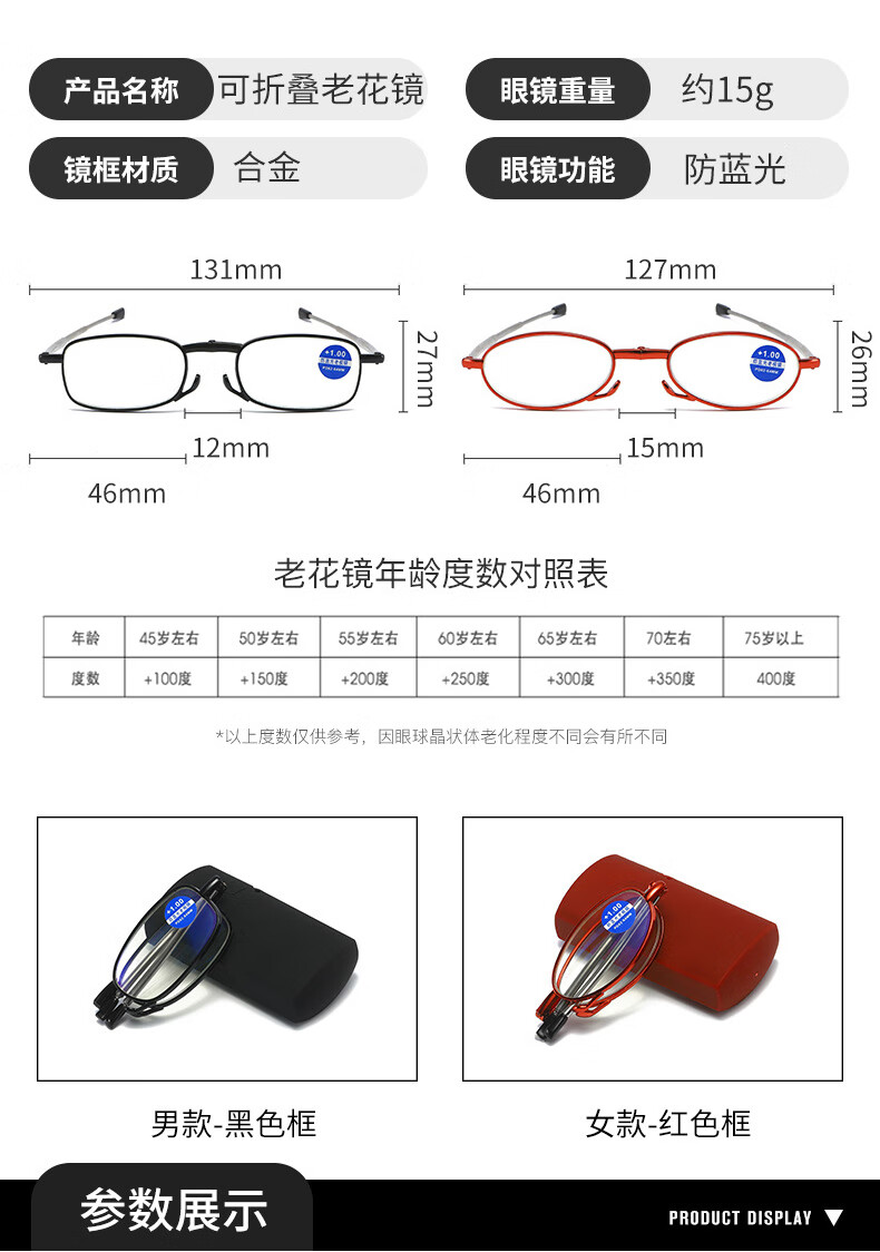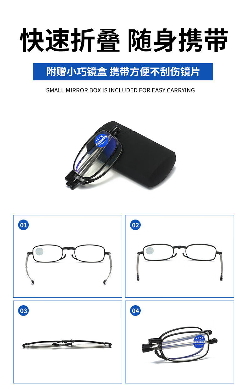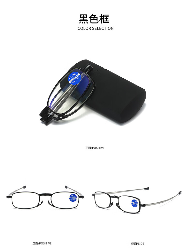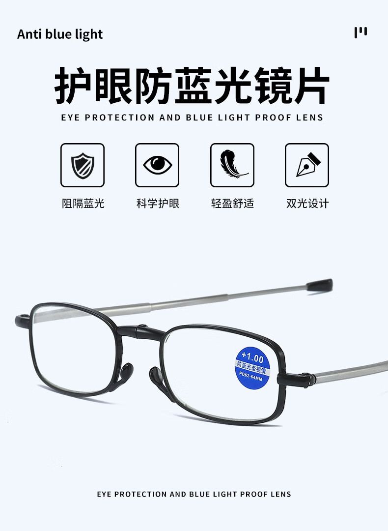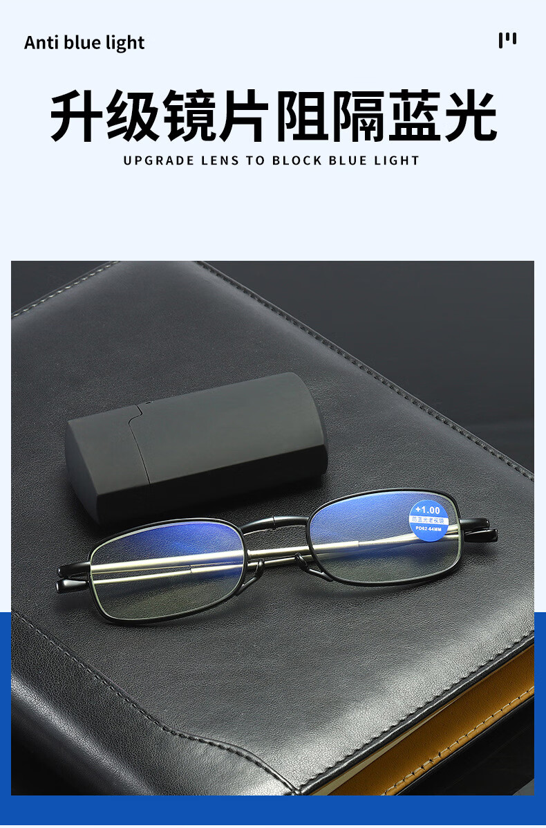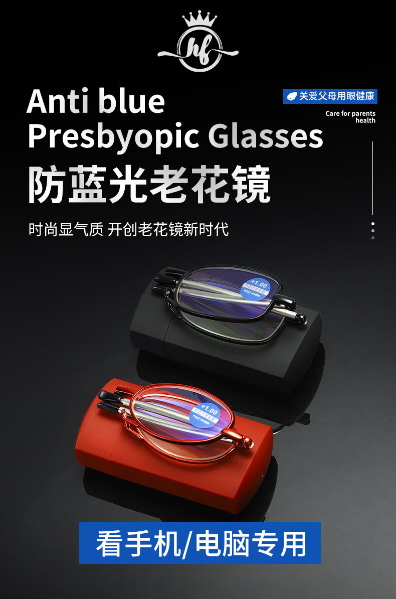 HB折叠老花镜300度 黑色防蓝光男女通用便携舒款适高清耐磨XH老人镜