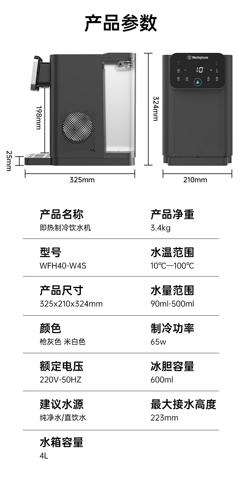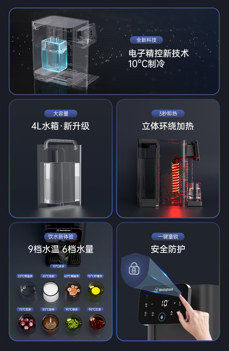 西屋(Westinghouse)台式即热式饮水机小型饮水机家用 制冷速热办公客厅即热饮水机 W2S冷热冲泡奶机水壶【国家补贴】