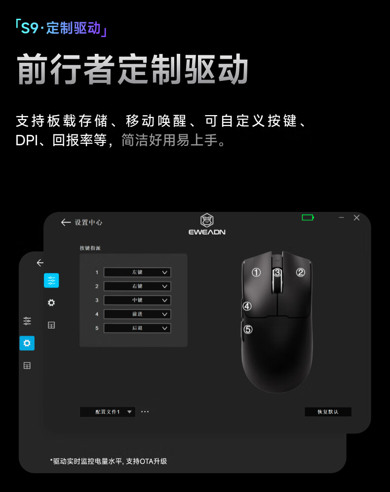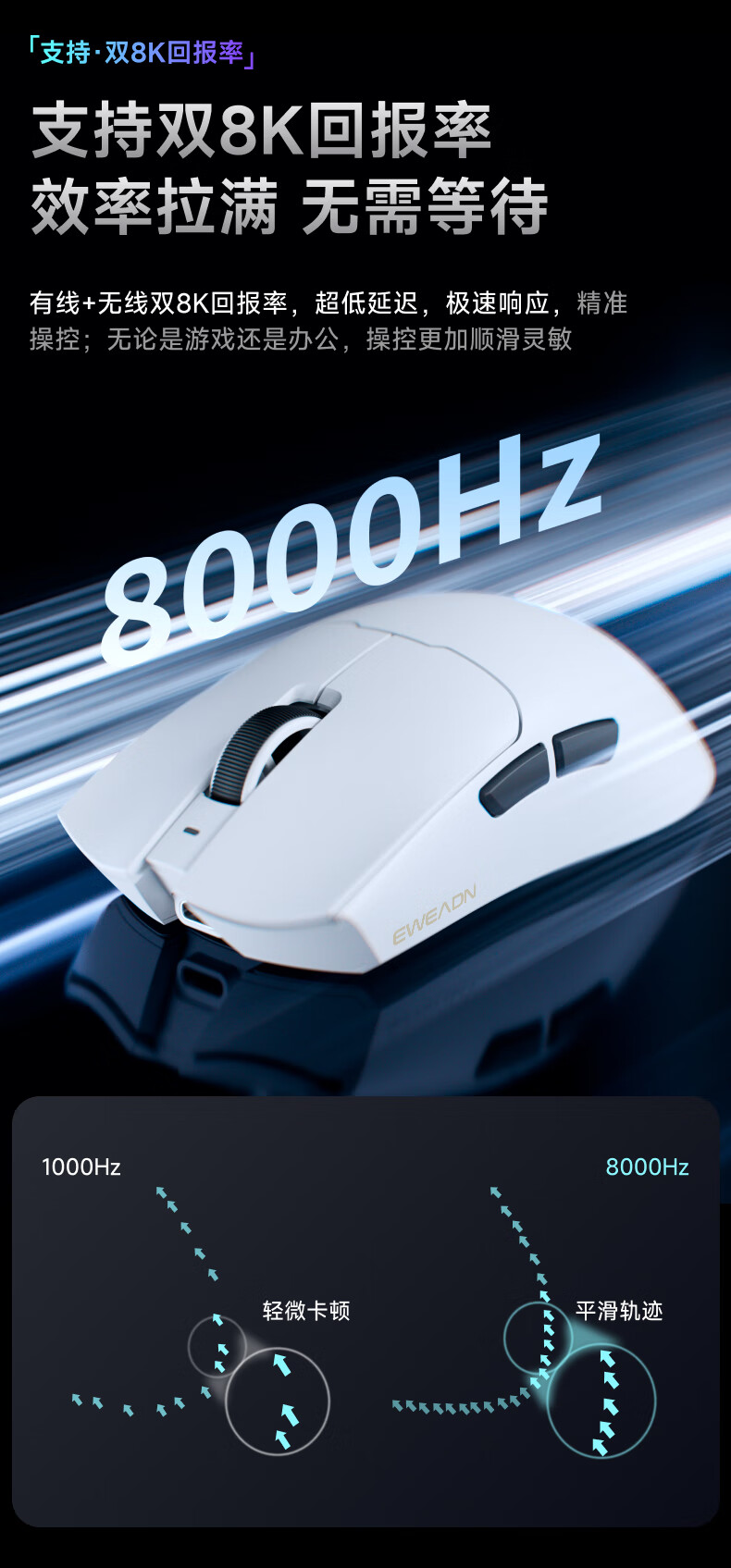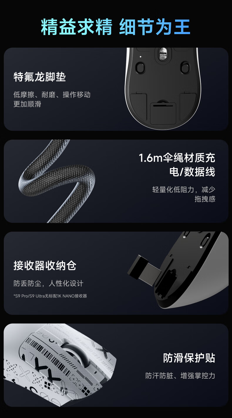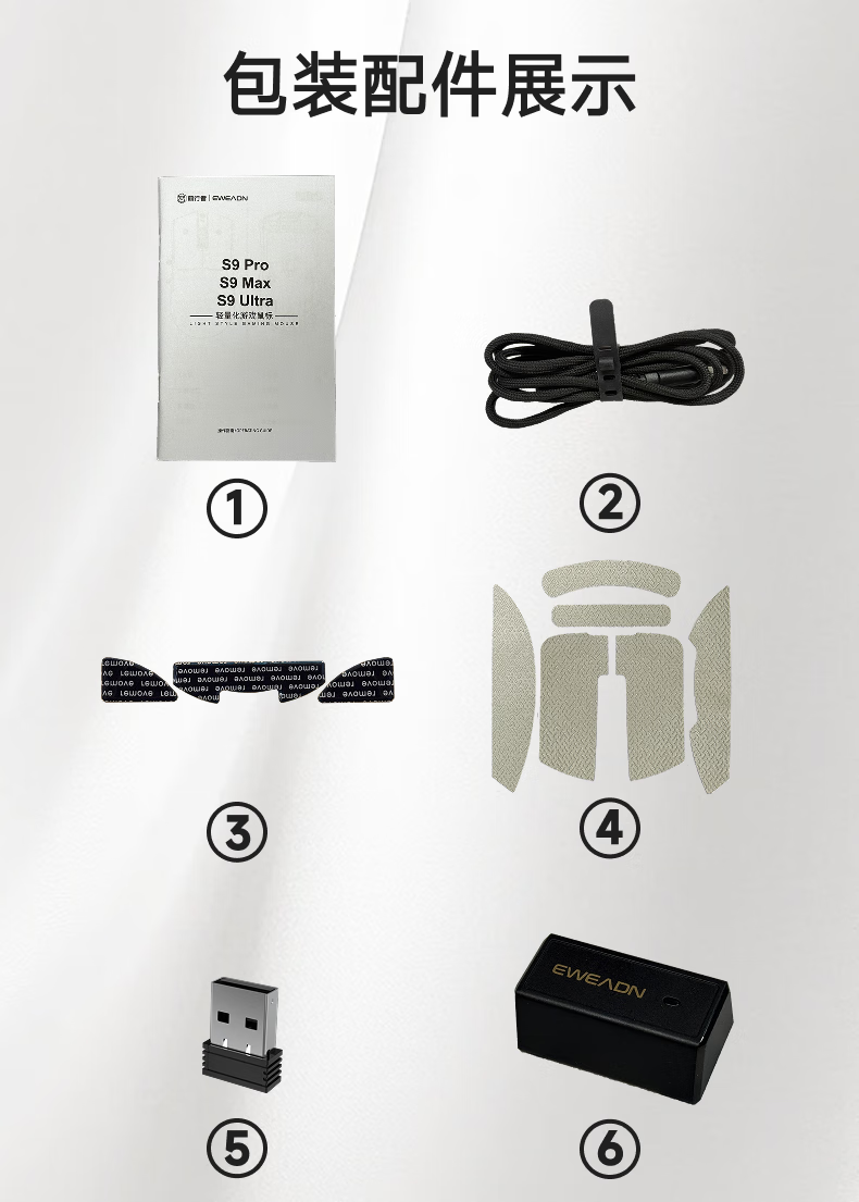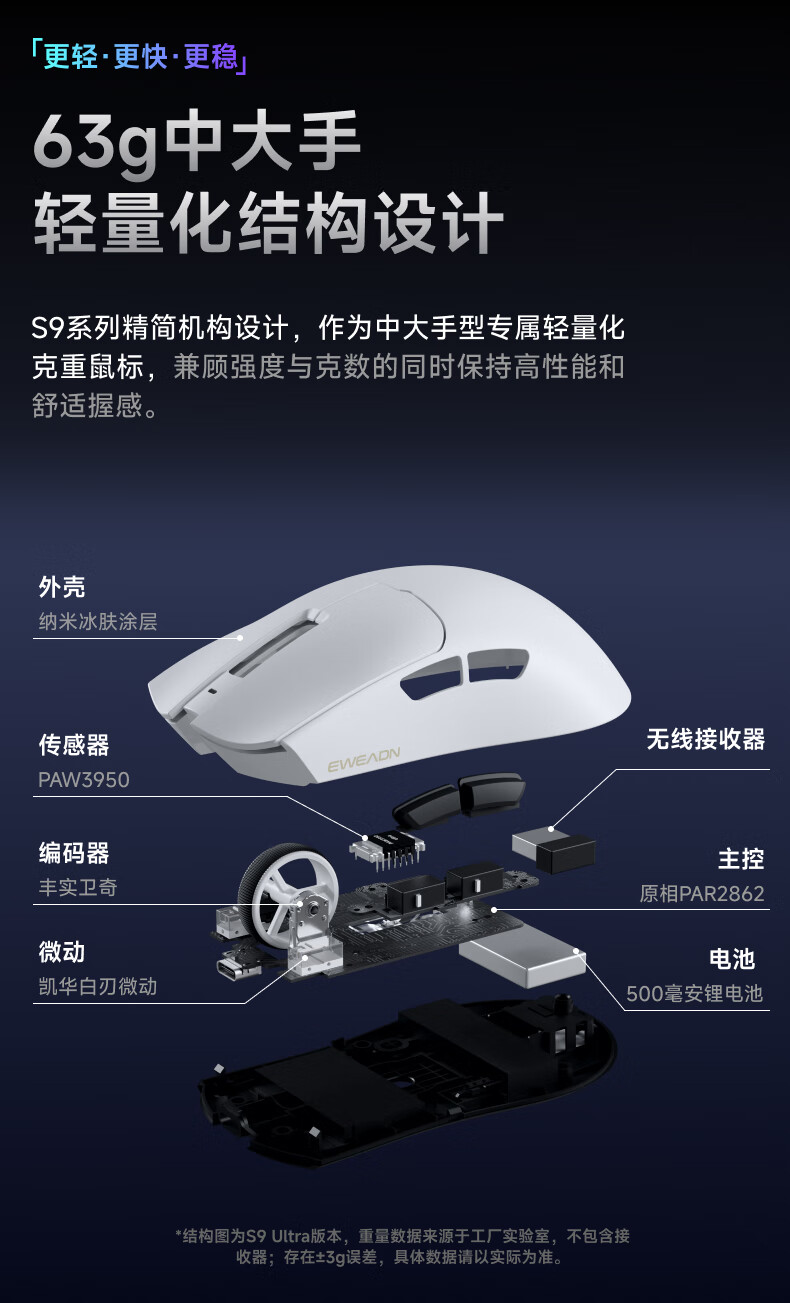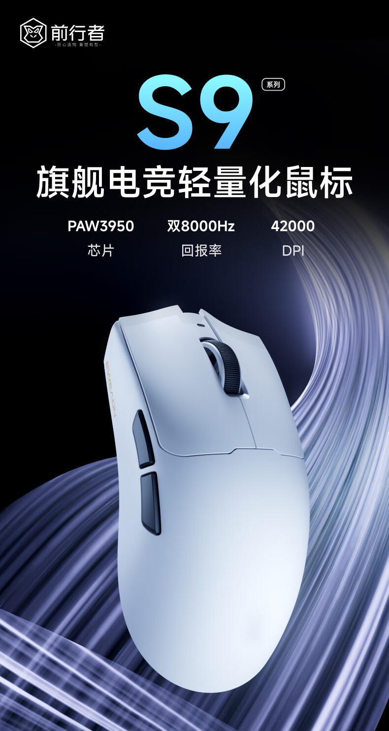 前行者(EWEADN)S9 Ultra无线鼠标电竞游戏轻量化鼠标蓝牙三模电脑办公中大手适用电脑平板笔记本电竞 黑色