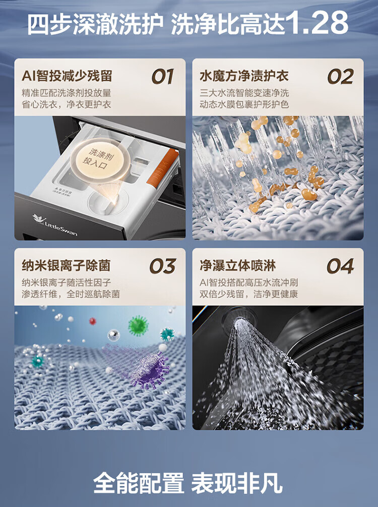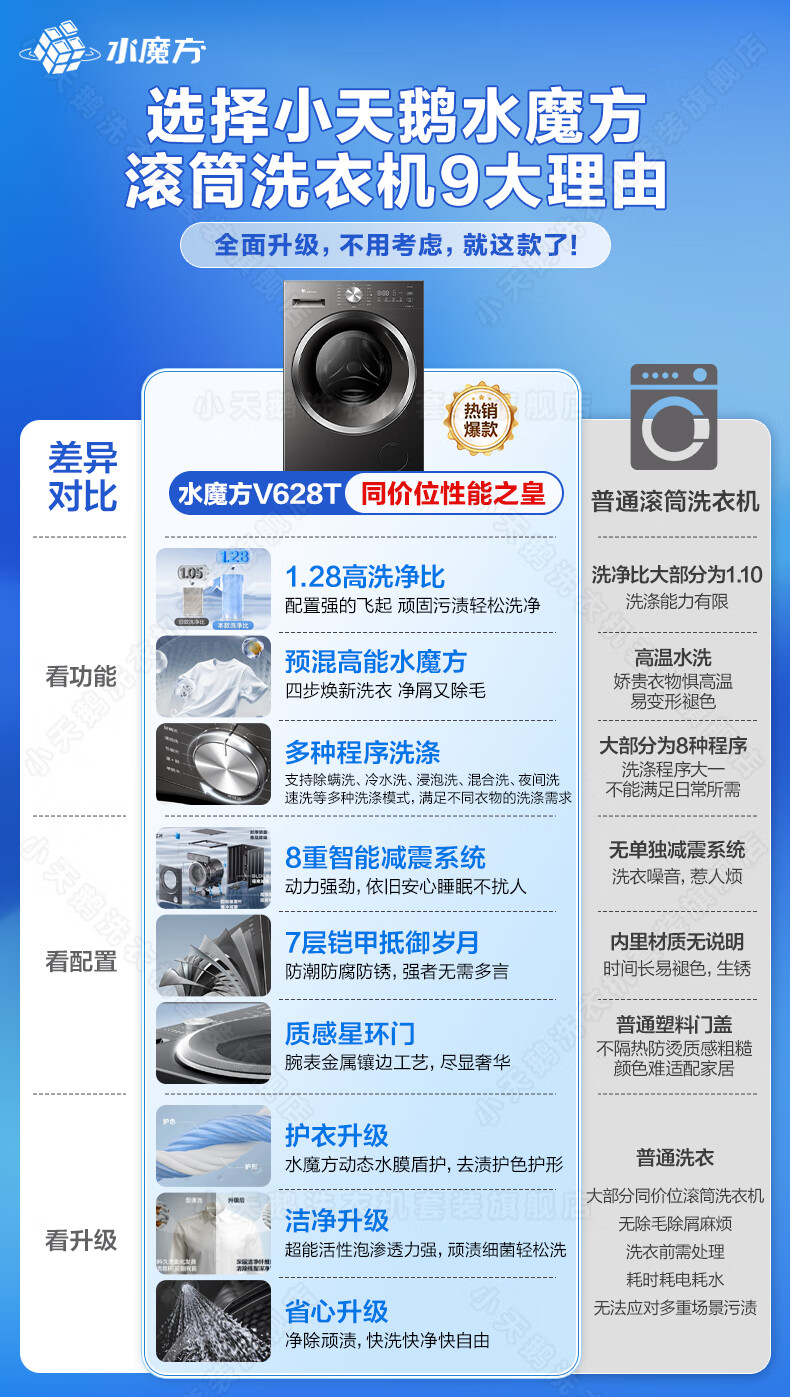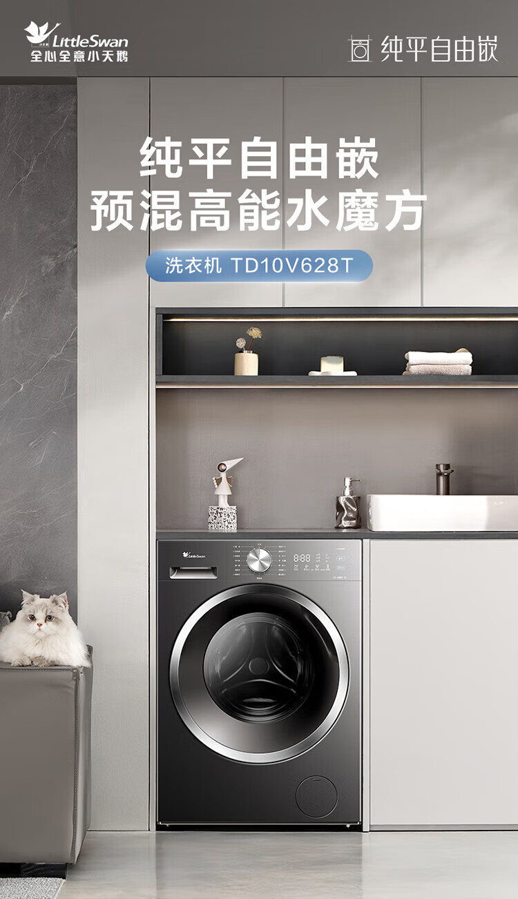 小天鹅(LittleSwan)滚筒洗衣机 水魔方纯平自由嵌10公斤大容量全自动家用内衣洗1.28洗净比除菌变频 除螨洗 净屑除毛 【新品628T非烘干】1.28高洗净比+纯平自由嵌