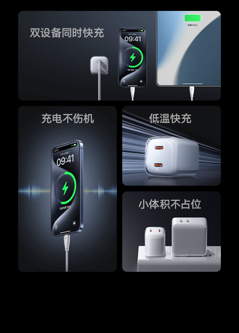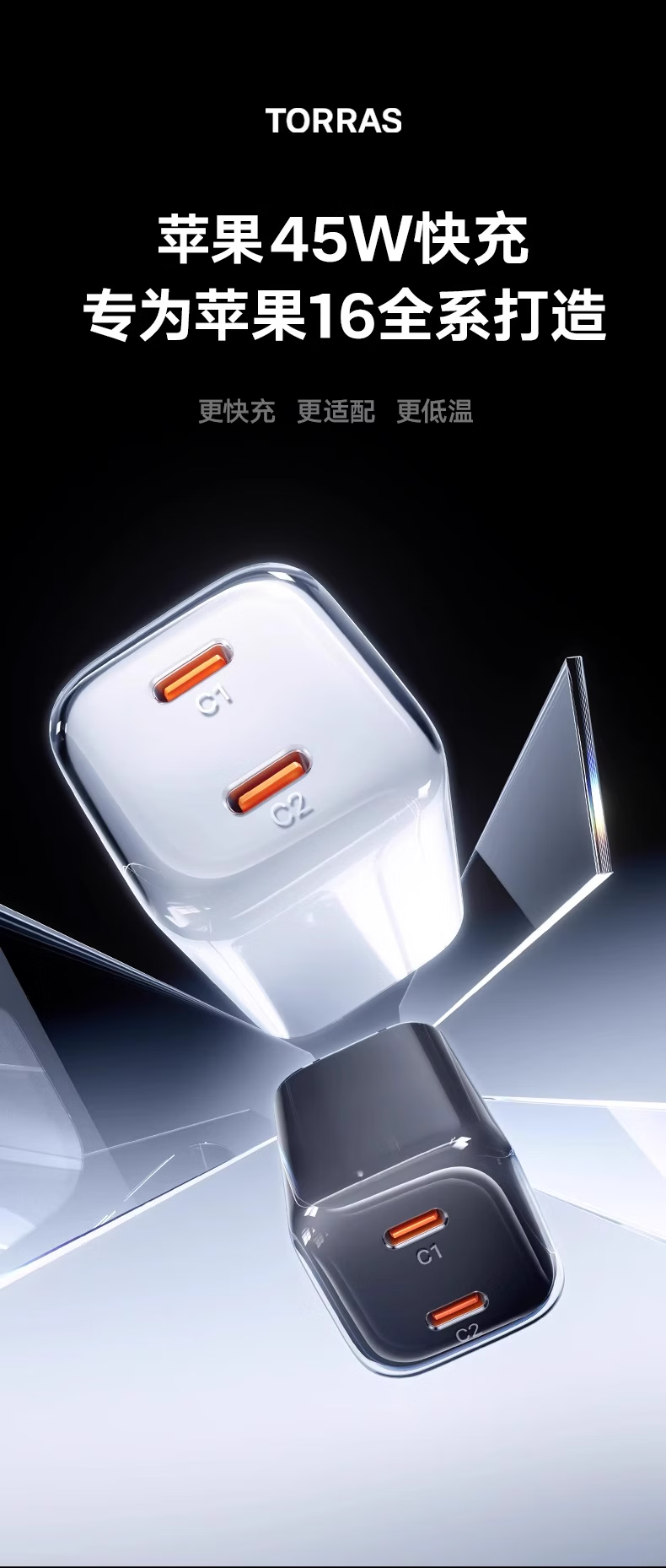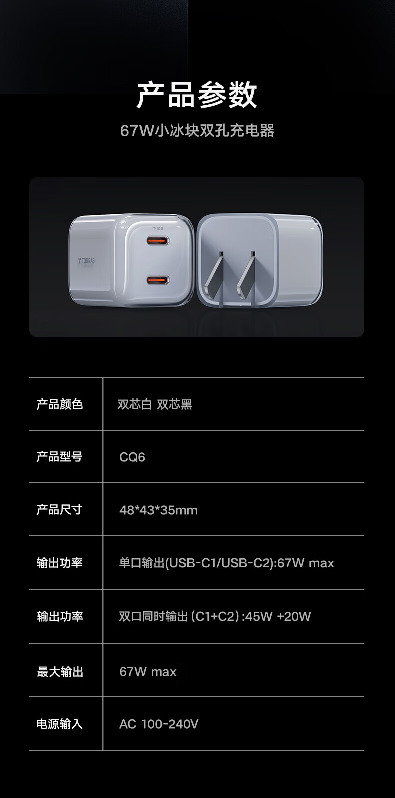 图拉斯苹果17promax充电器67w氮化镓45w充电头适用华为iPhone15快充套装多口小米笔记本iPad线兼容40W 【双口快充】冰透白单头+1.68m双c线 顶配尊享版