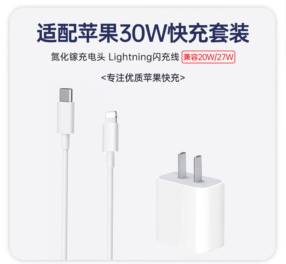 苹果充电器充电线氮化镓原装30W快充线PD套装iPhone14ProMax13 15 16手机12正品充电头数据线 【适配苹果8-14】30W快充头+闪充线丨1米套装 3C+PD双认证丨安全不伤机