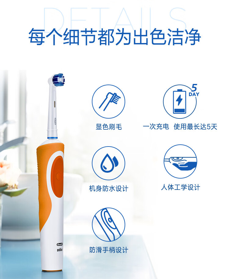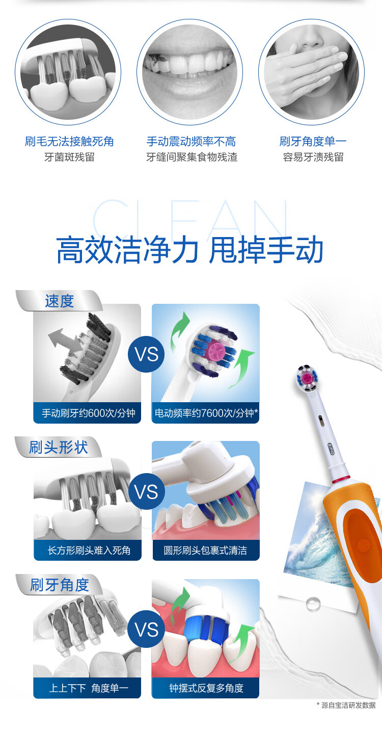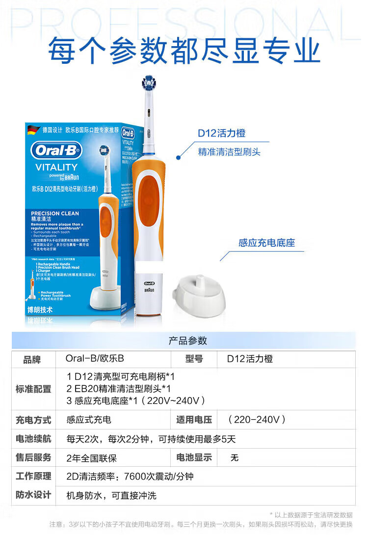 欧乐B电动牙刷成人男士女士D12活力橙日常清洁(刷头*1)圆头京东自营热卖榜生日礼物送男友送女友中秋
