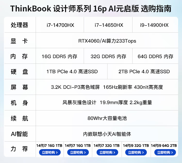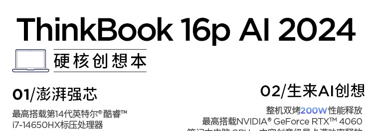 ThinkPad【国家补贴20%】联想ThinkBook 设计师系列16p游戏AI创作DeepSeek14代酷睿i7 16G 1T RTX4060 3.2K