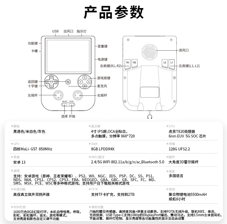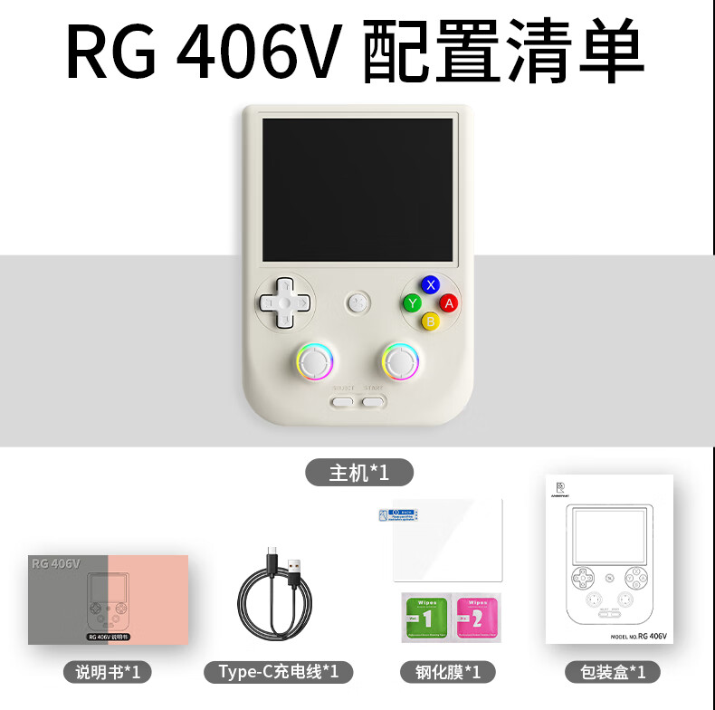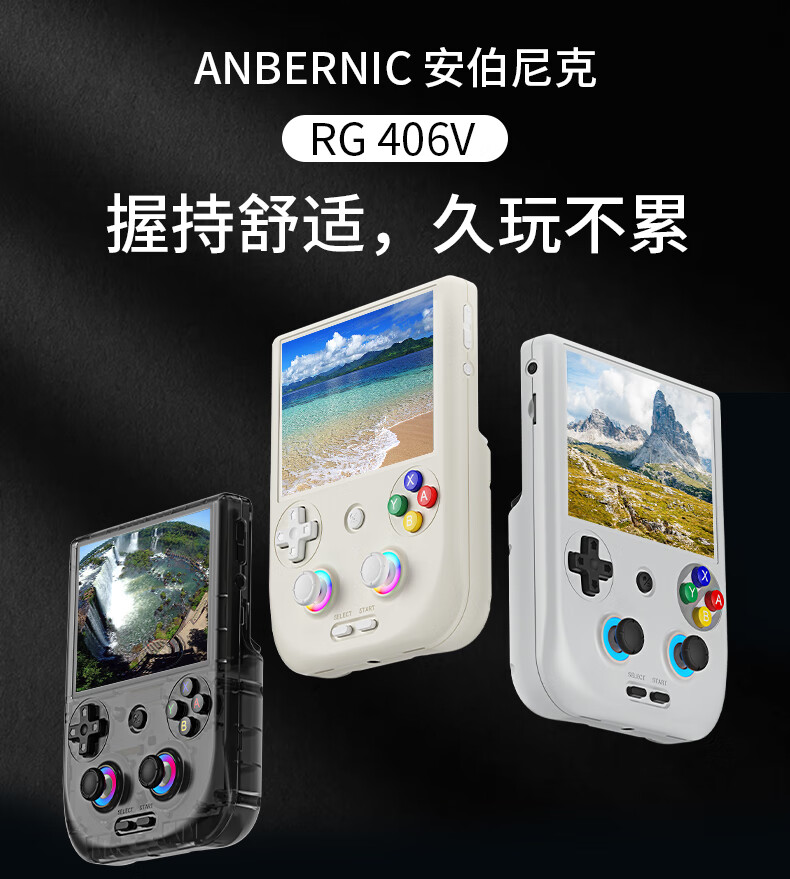 ANBERNIC安伯尼克RG 406V新款T820高性能竖版安卓13掌机WIFI串流连电视大屏复古怀旧游戏机 黑透 RG406V标配+256GTF卡套餐