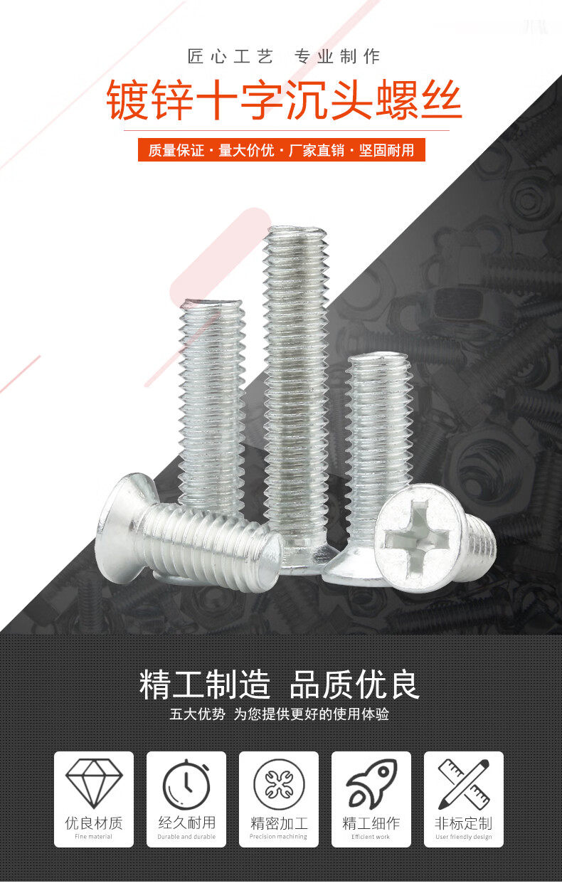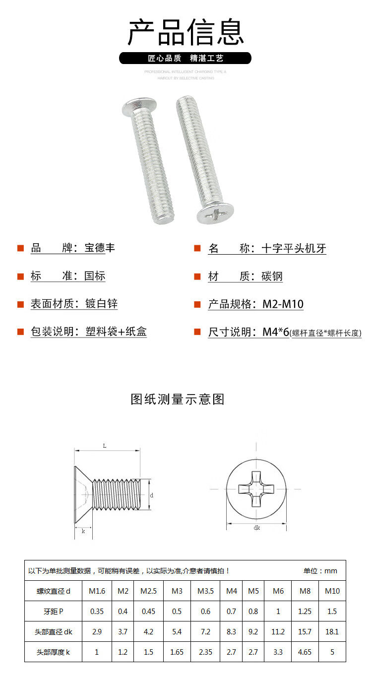 宝德丰铁镀锌十字沉头螺丝钉KM十字平头螺丝机丝沉头螺钉电子小螺丝钉 M2x3[500只]