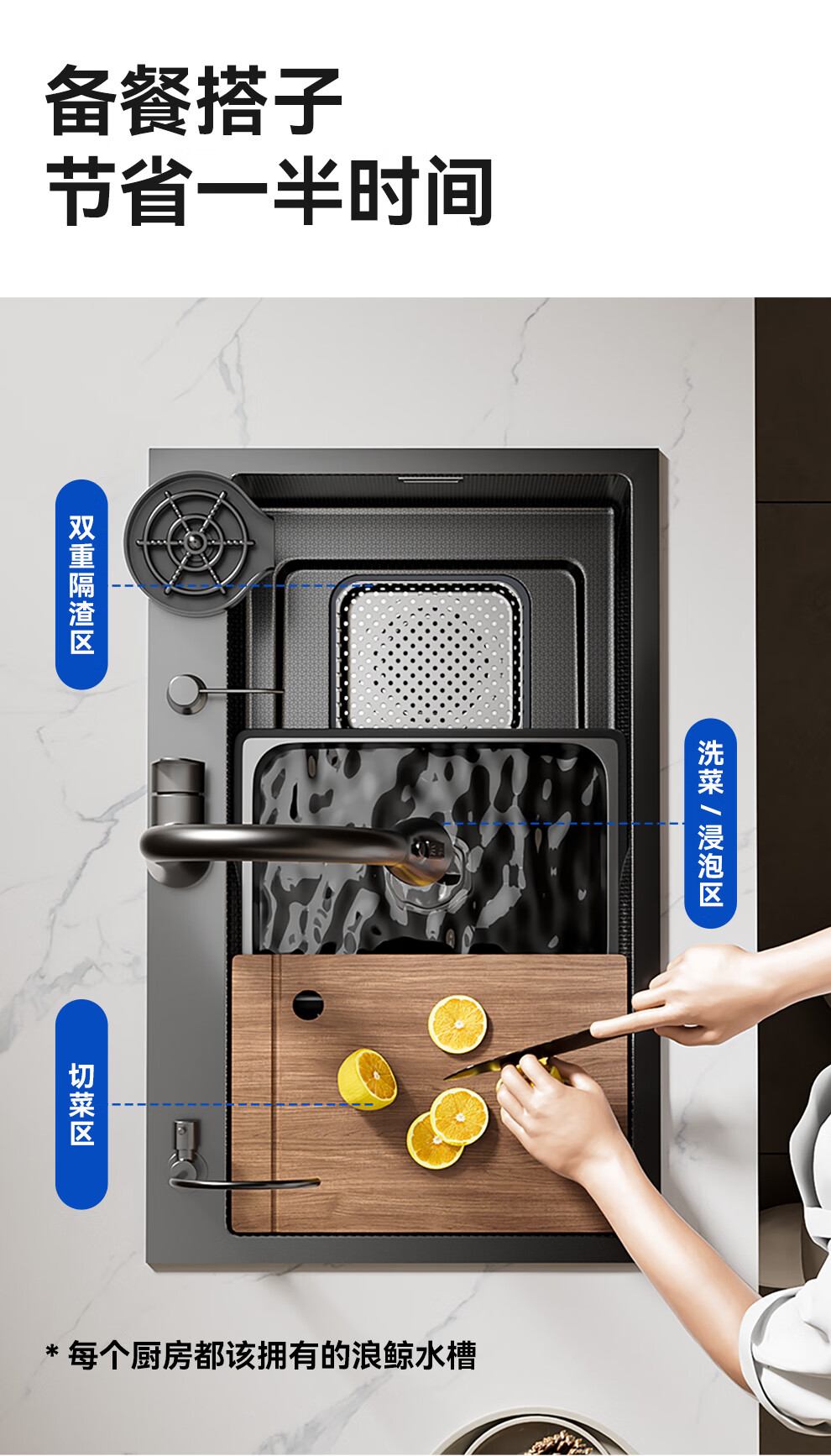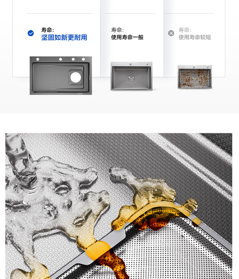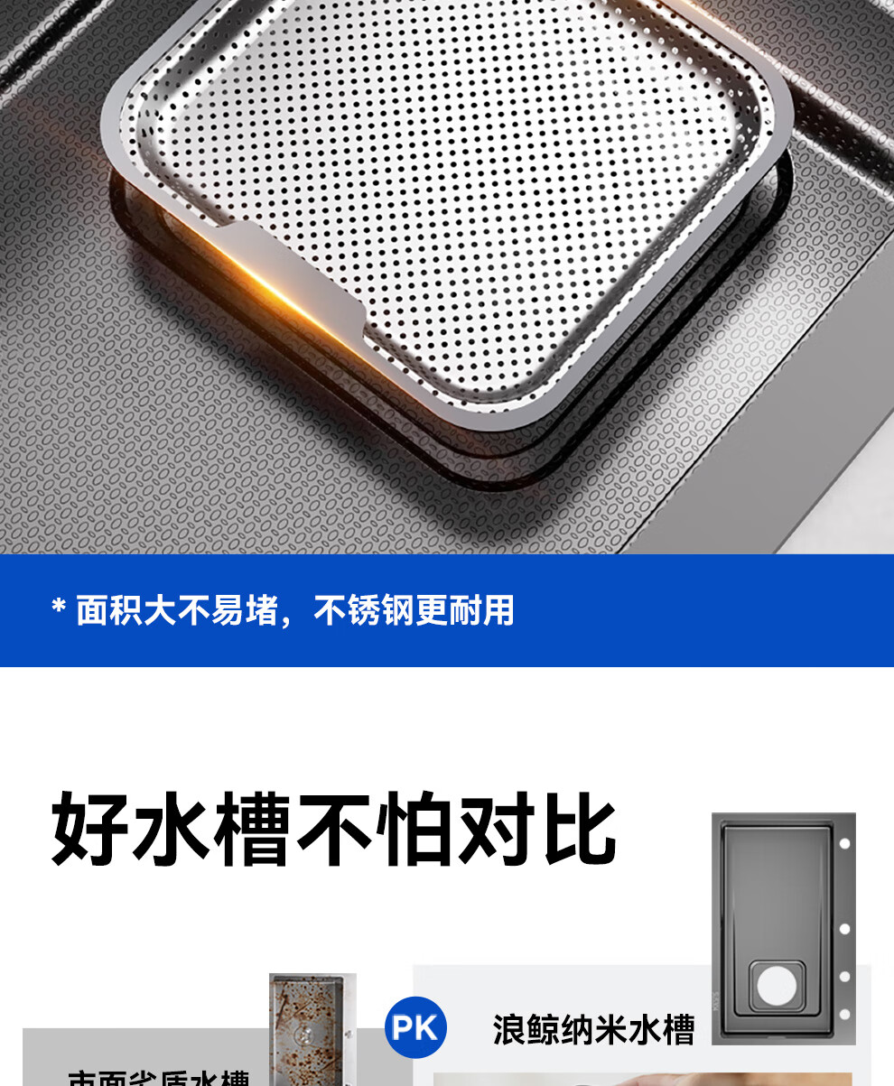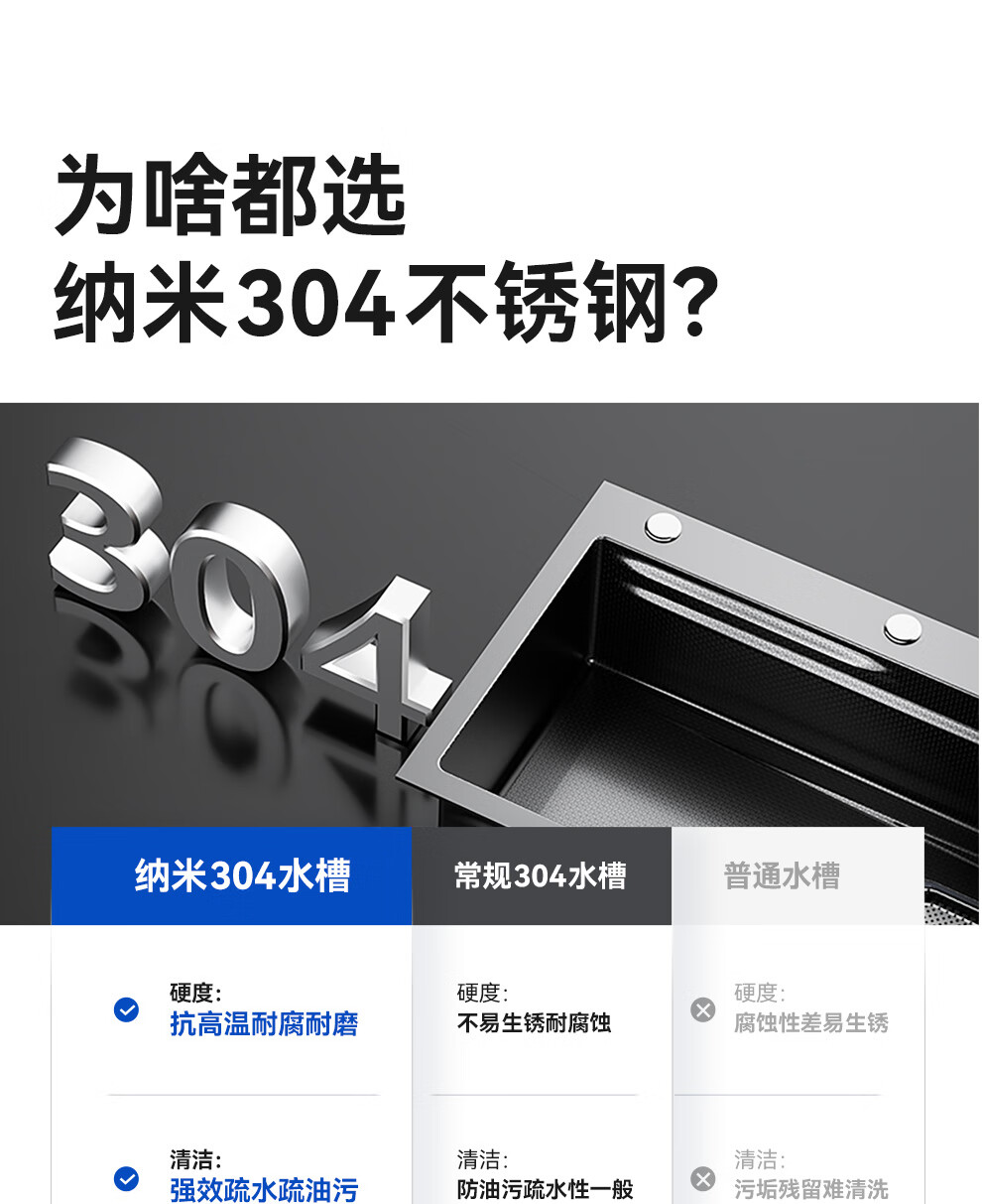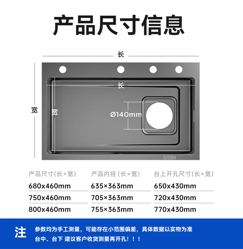 浪鲸(SSWW)水槽大单槽纳米304不锈钢多功能洗菜盆洗菜池厨房洗碗槽TK22 A-80*46 裸槽(不含龙头)