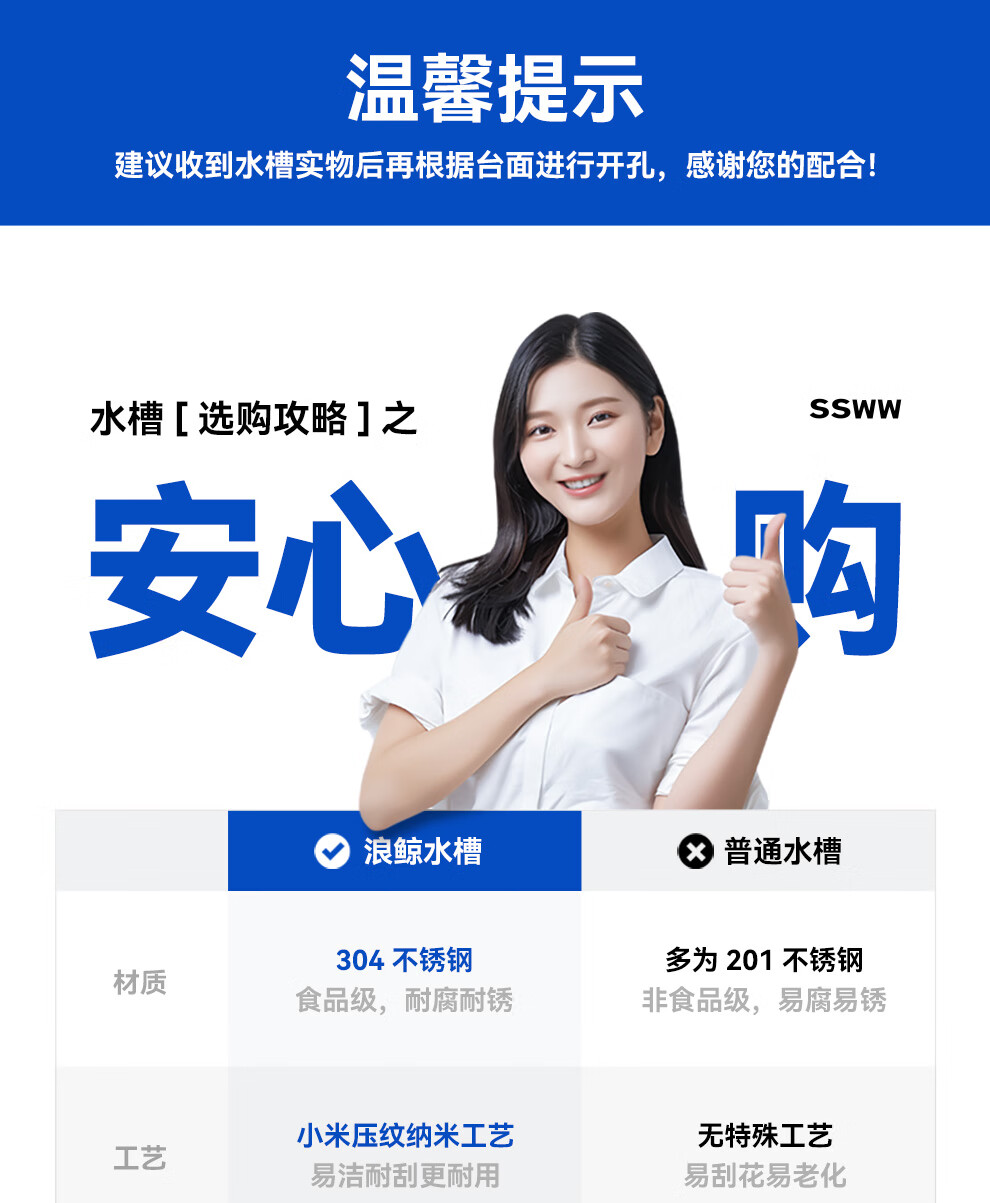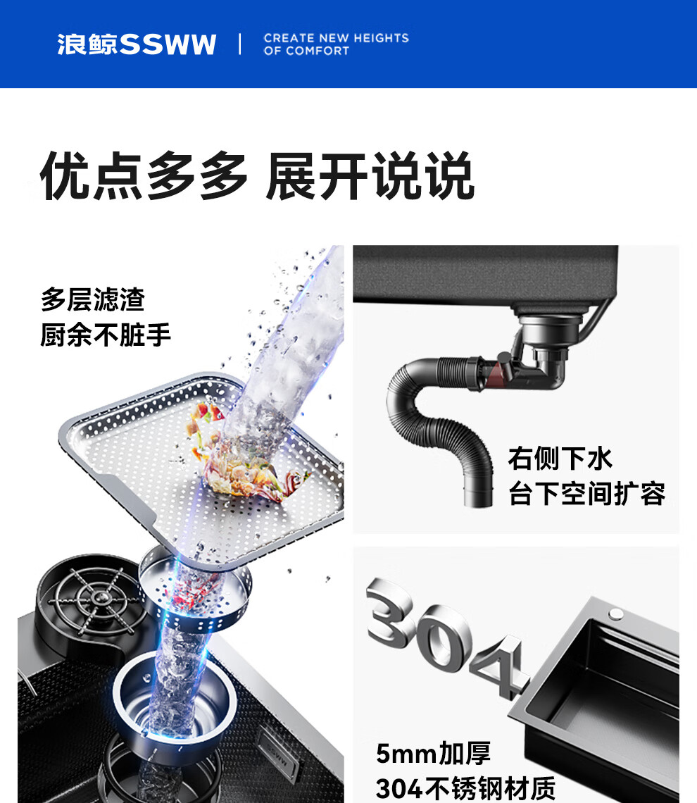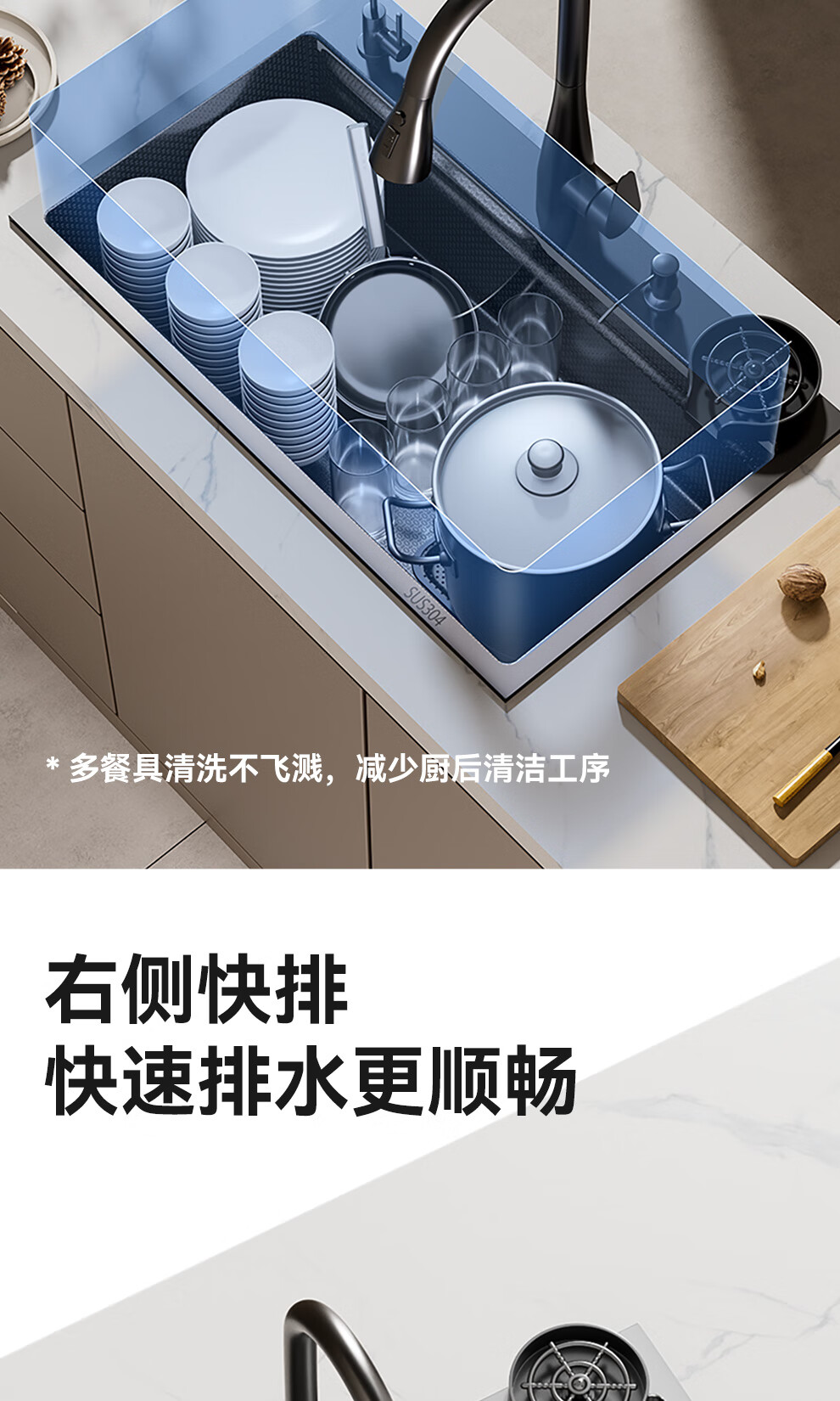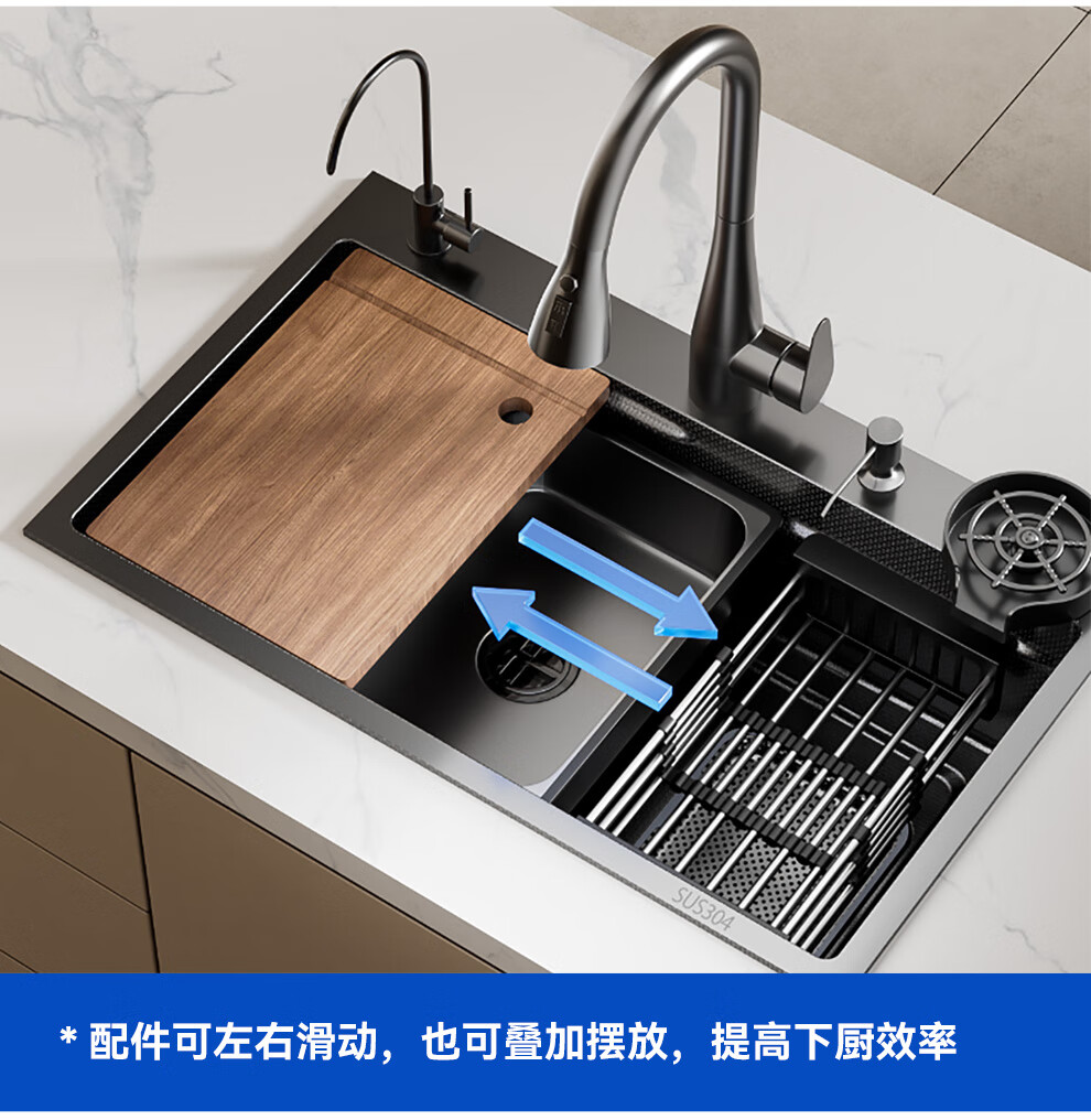 浪鲸(SSWW)水槽大单槽纳米304不锈钢多功能洗菜盆洗菜池厨房洗碗槽TK22 A-80*46 裸槽(不含龙头)