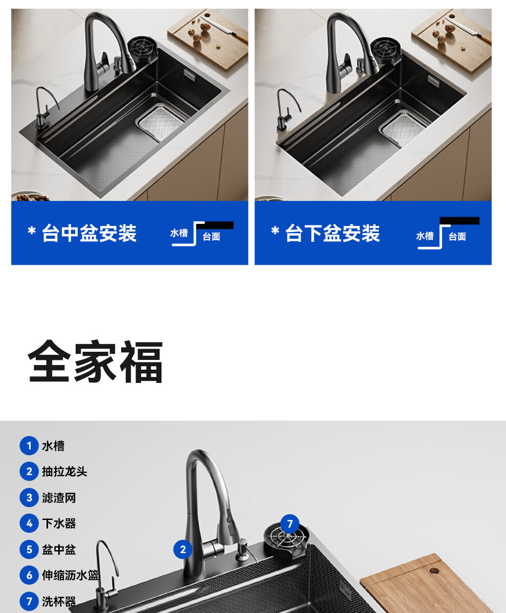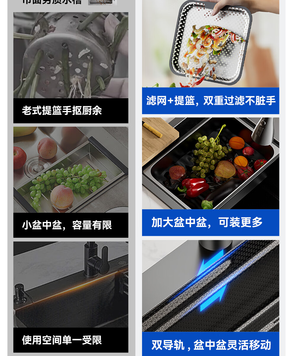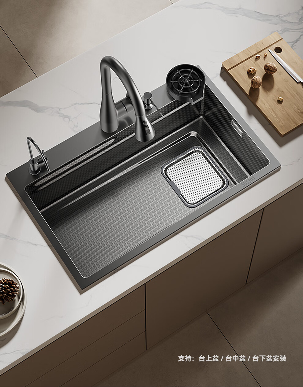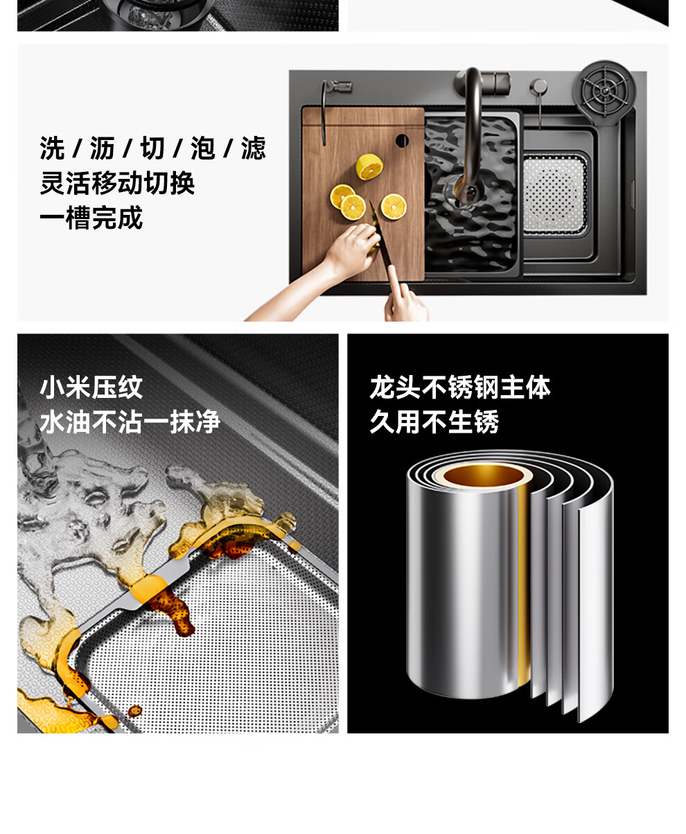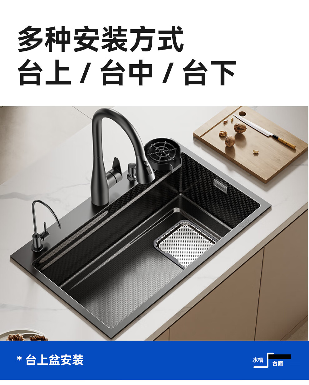 浪鲸(SSWW)水槽大单槽纳米304不锈钢多功能洗菜盆洗菜池厨房洗碗槽TK22 A-80*46 裸槽(不含龙头)