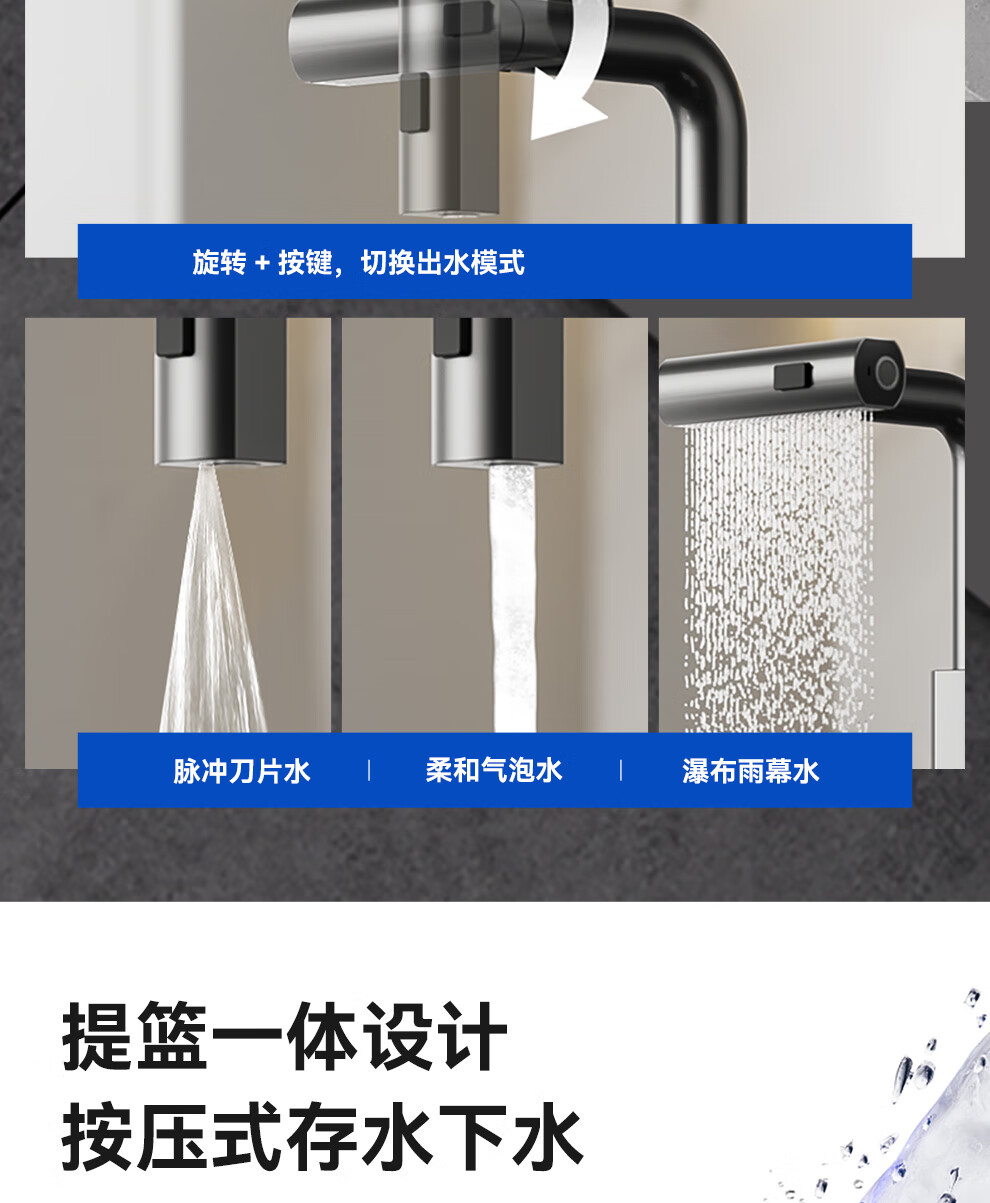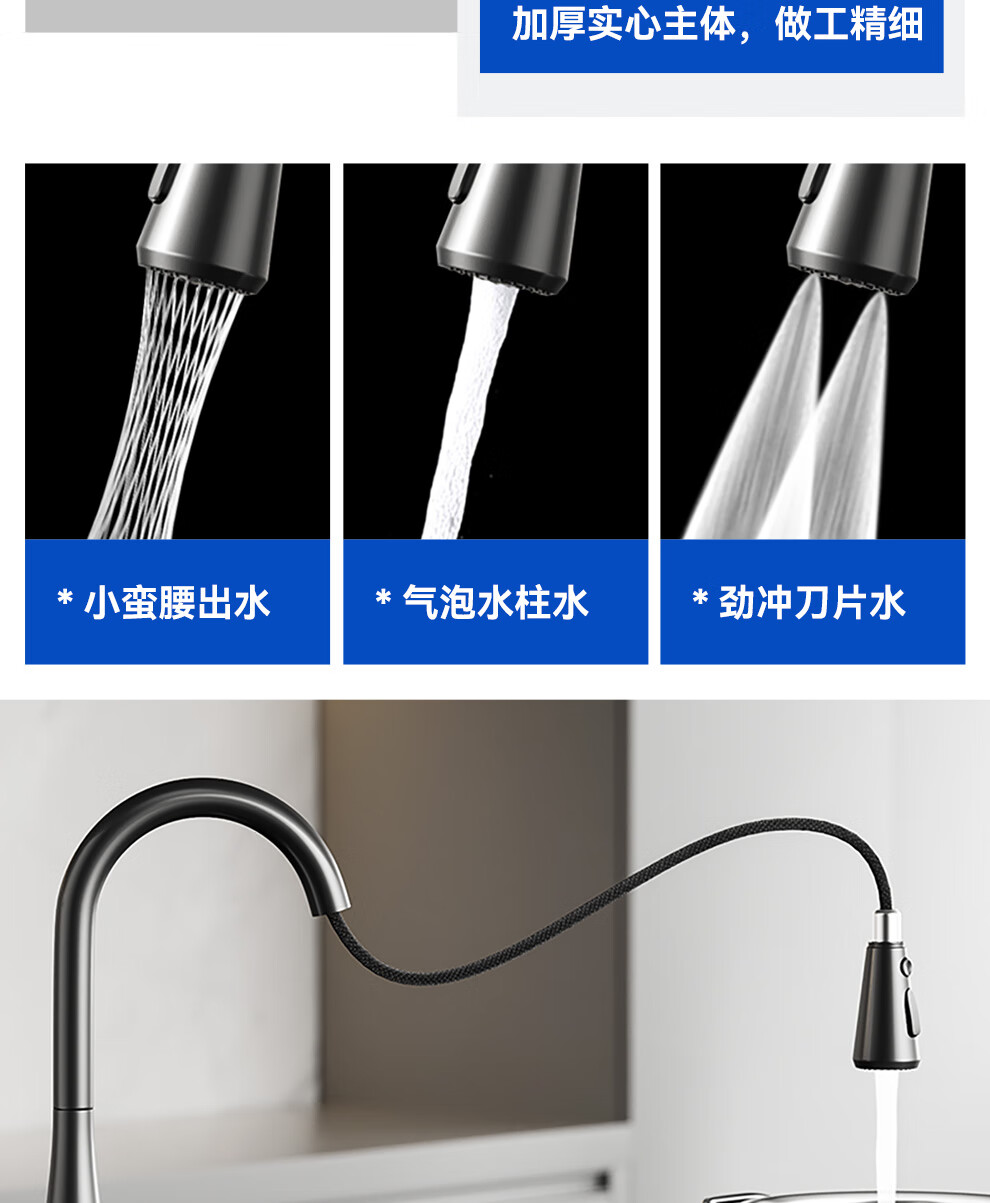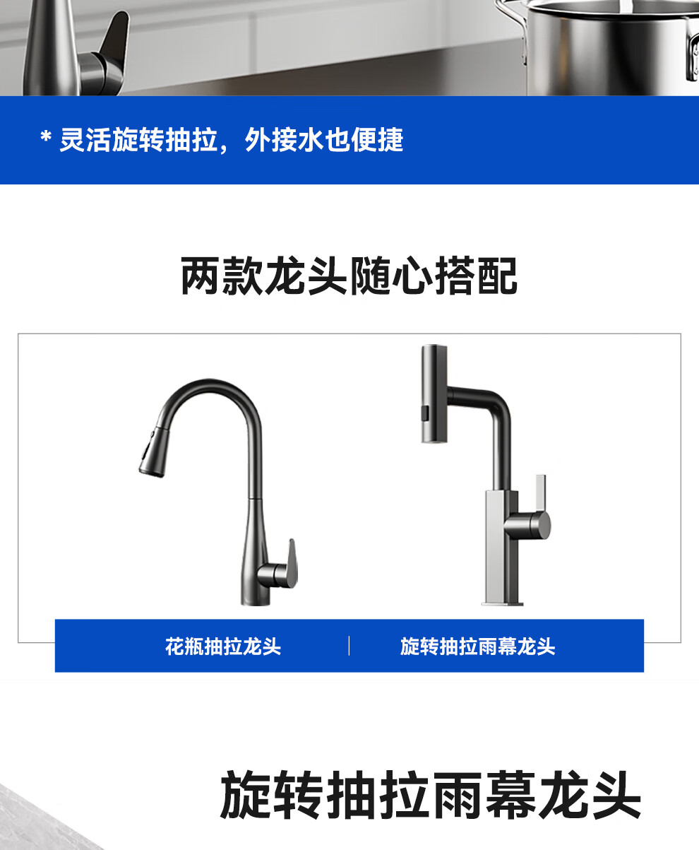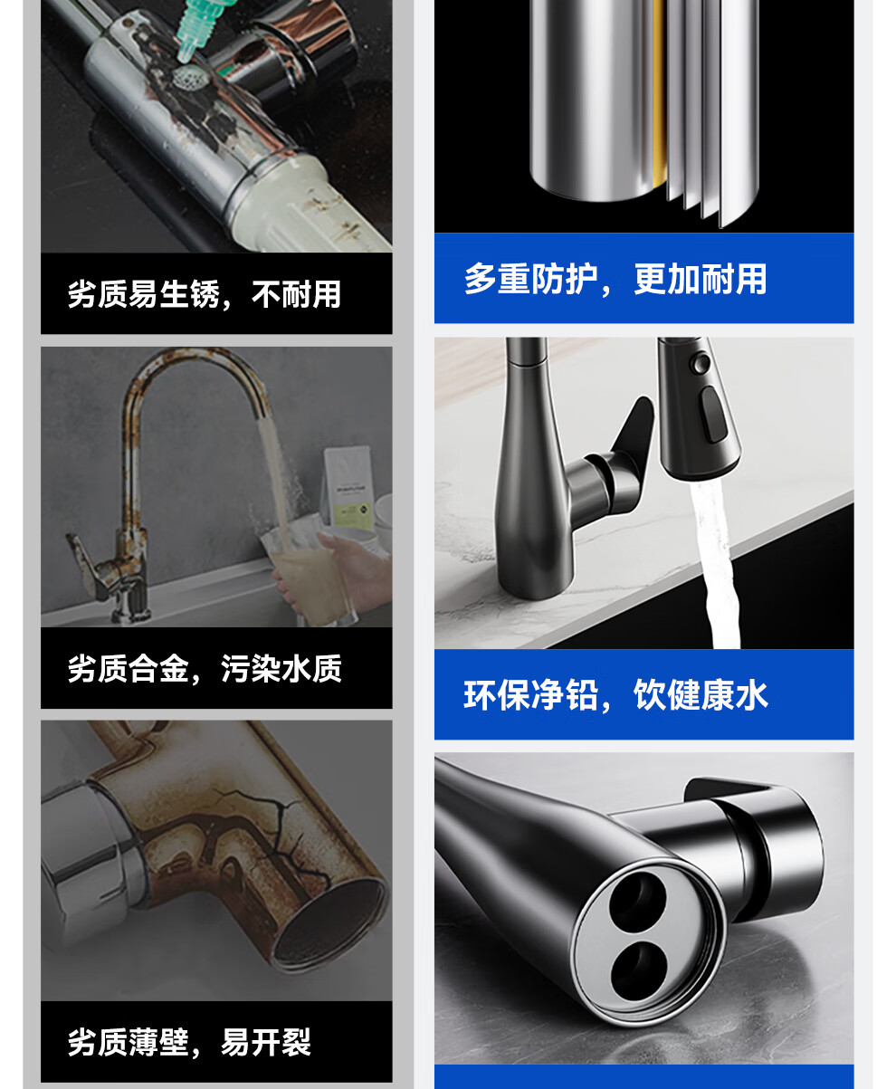 卓贝诗厨房水龙头单冷精铜主体万向旋转增压防溅水洗菜盆洗碗池水槽龙头 冰川银【两档防溅】单冷龙头 加厚精铜主体丨单双槽通用