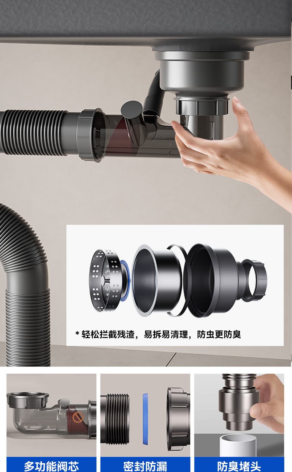壹品印象阳台洗衣机下水三头通分水器烘干机排水管道四通防反水止逆阀接头 奶白【Y型大头两通】防臭防虫大排量防溢 (洗衣机/面盆/烘干机/扫地机器人)