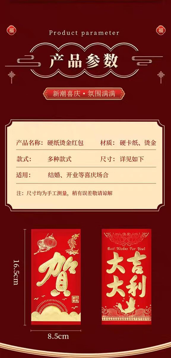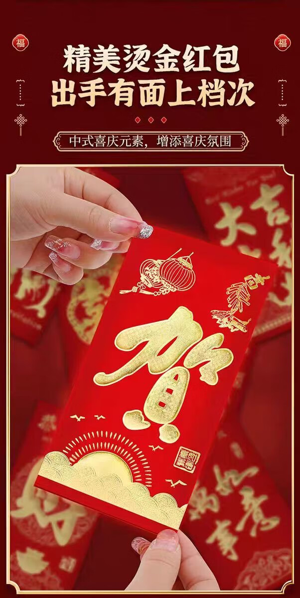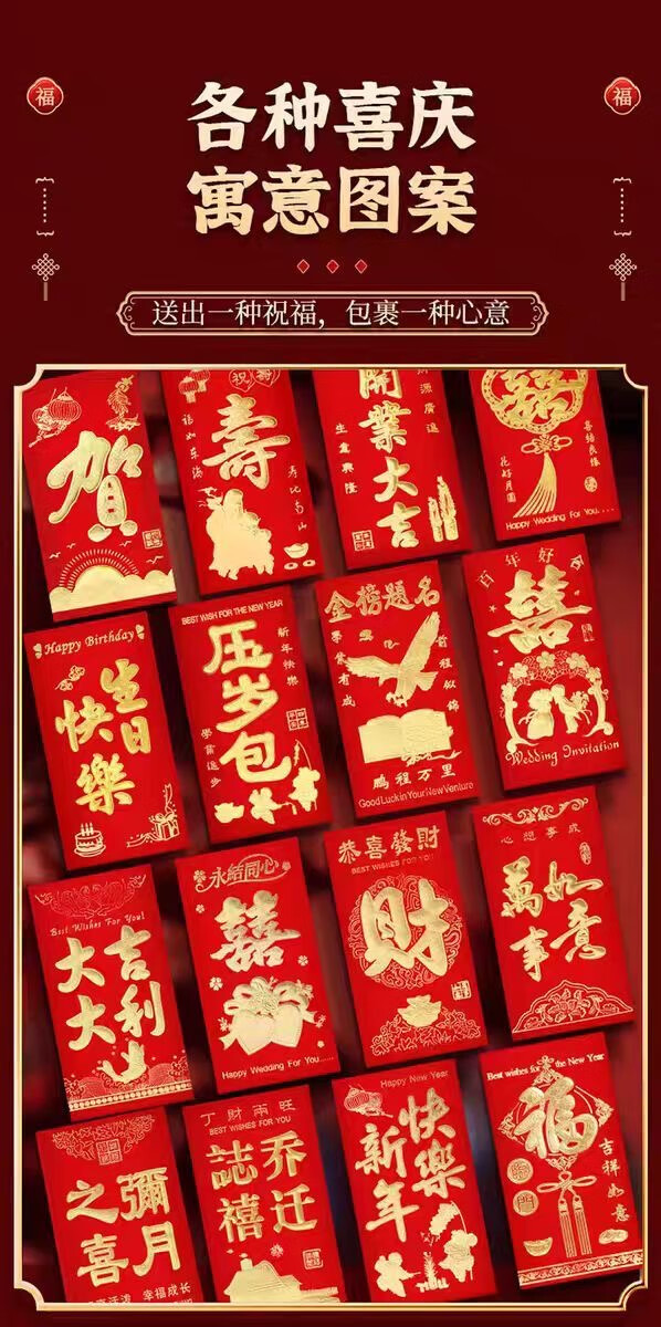新年红包蛇年春节压岁包开工利是压岁包千元封大吉大利高档通用袋 万事如意 6个(大号)百元可平放 大吉大利 12个(小号)百元折叠放