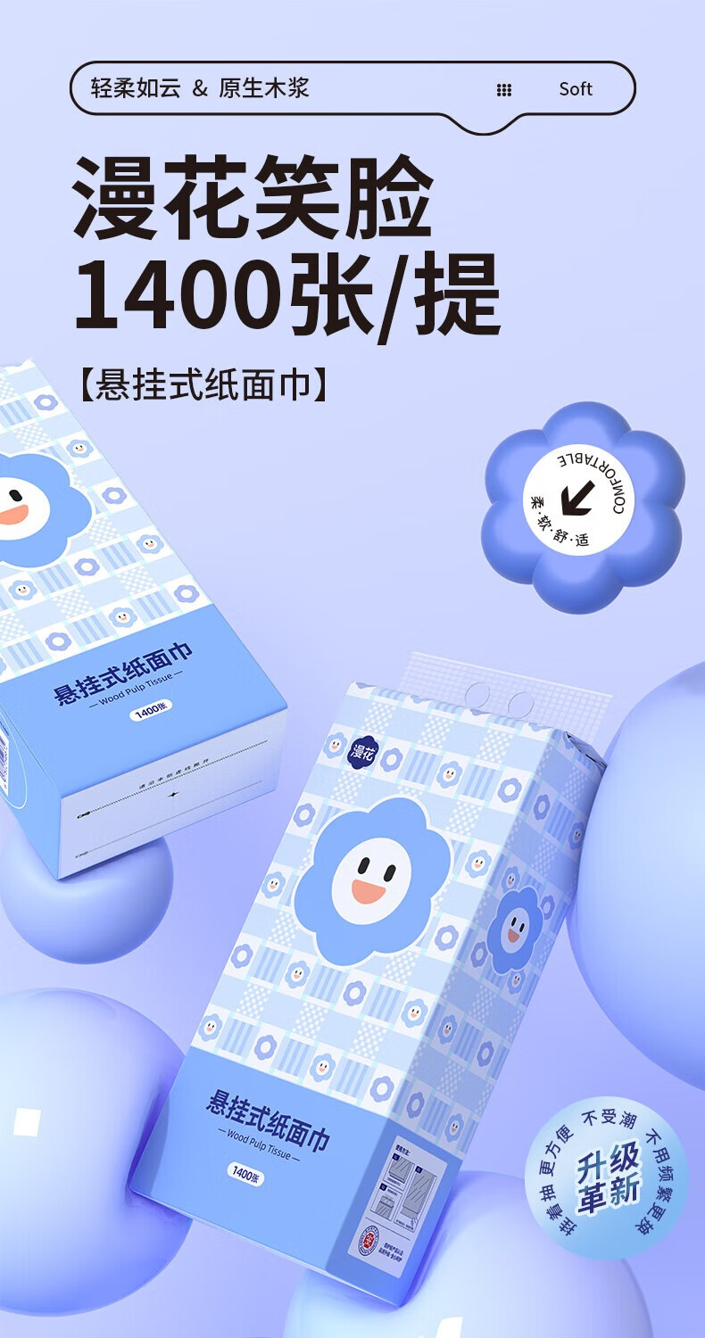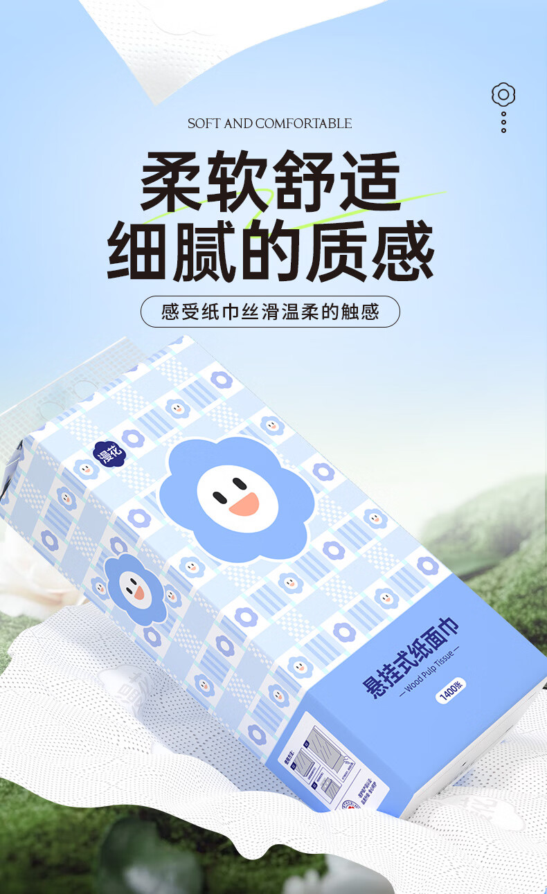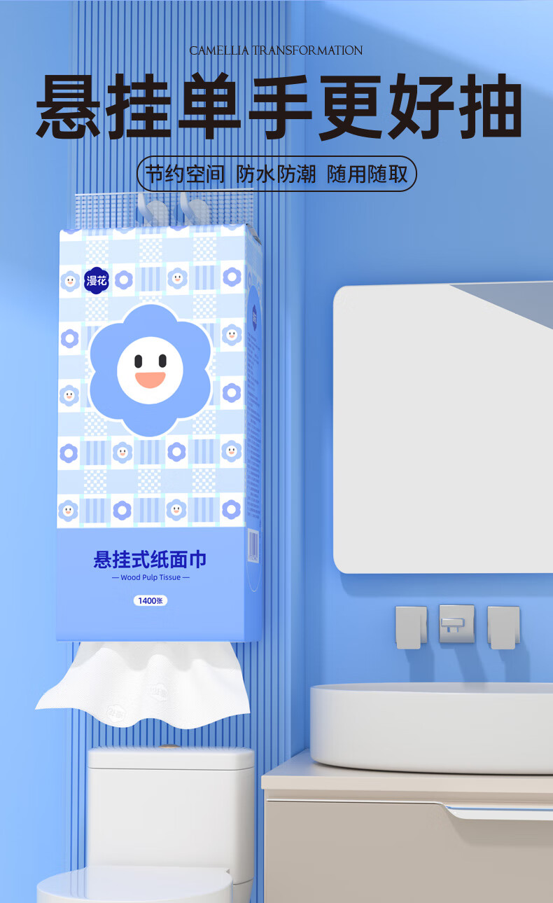 漫花1400张挂式抽纸大包纸巾卫生间厕所家用卫生纸悬挂厕纸 1400张*1提【严选爆款】