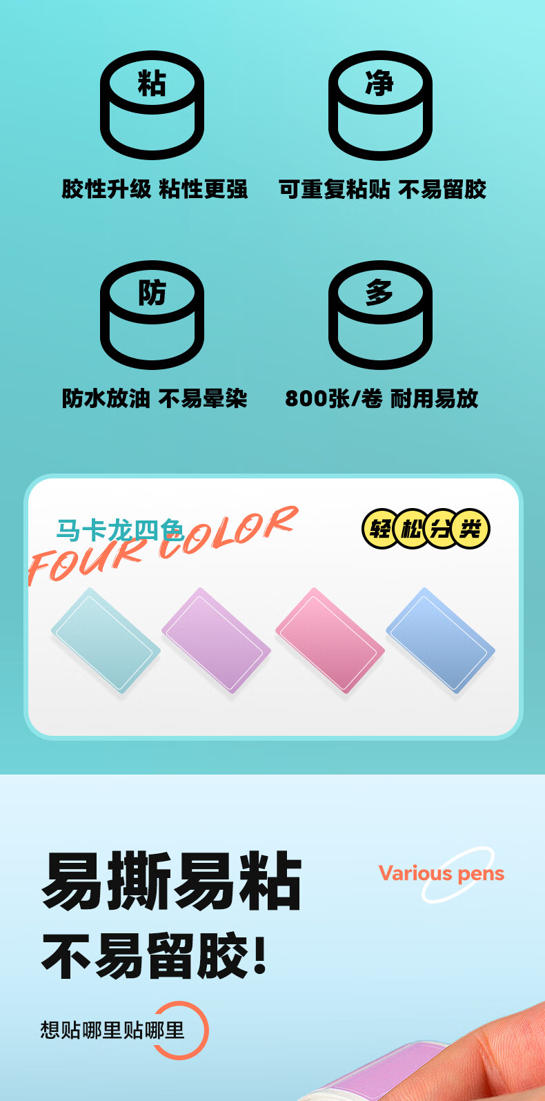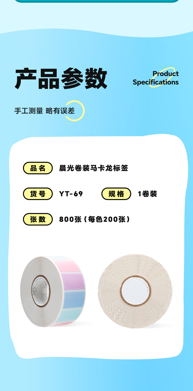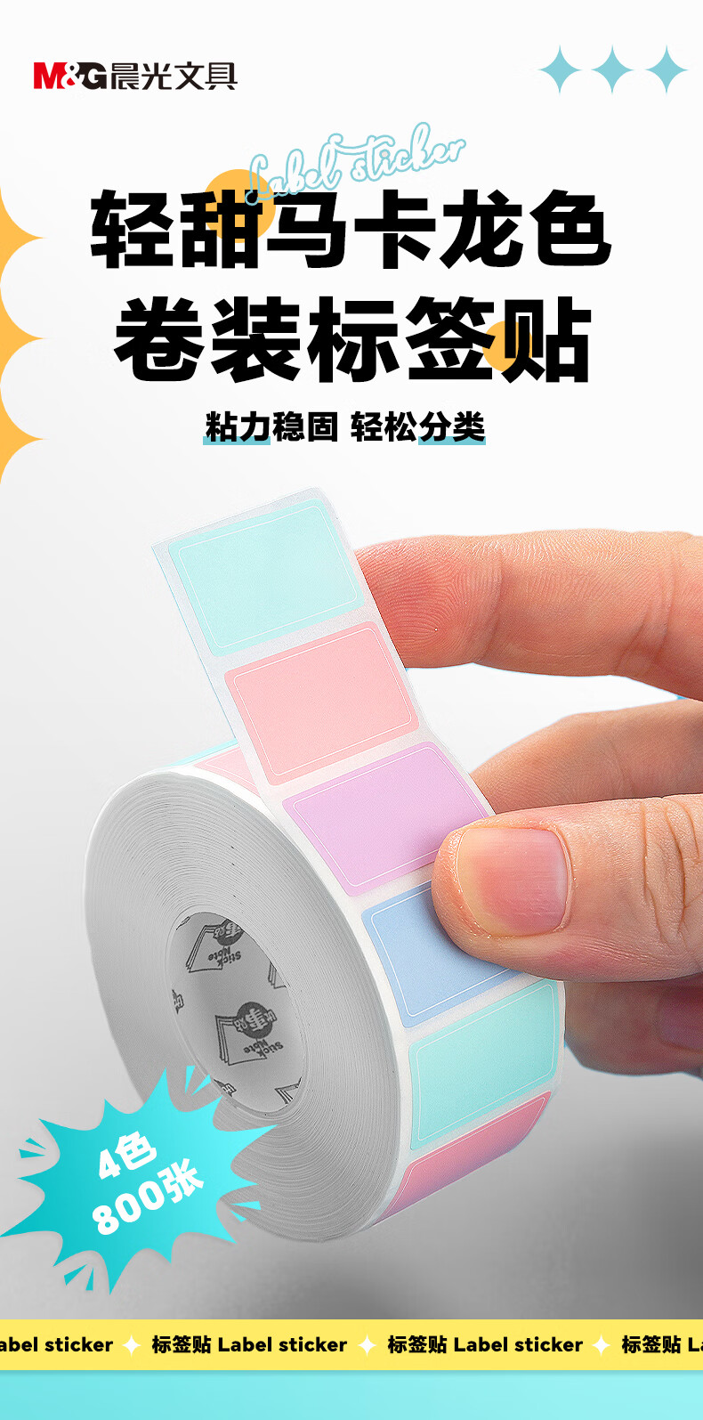 晨光(M&G)800枚标签贴纸便利贴姓名贴便签纸不干胶自粘性手写文件彩色分类贴小标签标识贴马卡龙色 YT-69