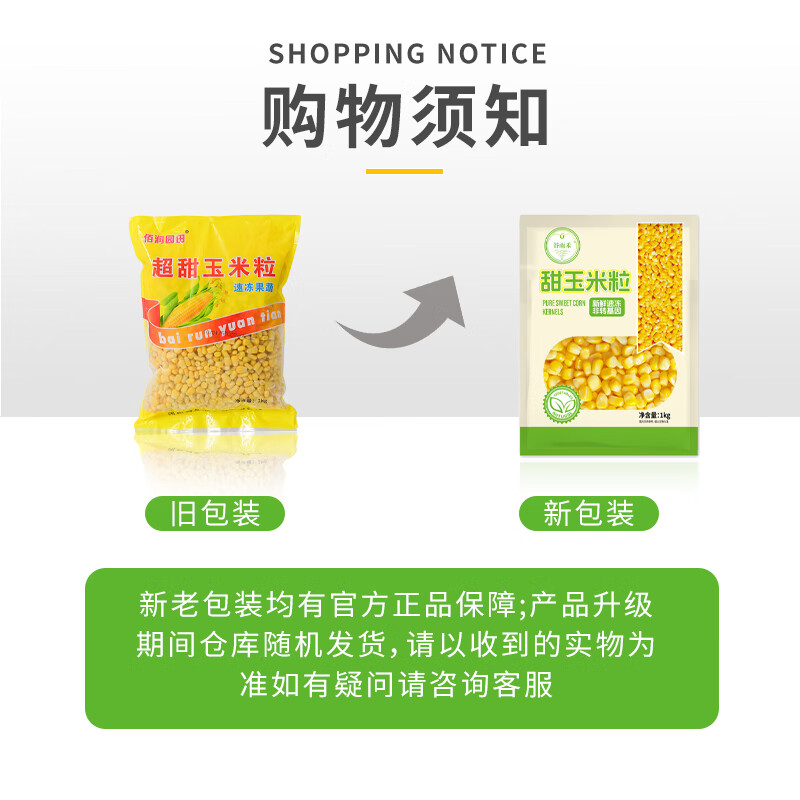京鲜生甜玉米粒1kg 水果玉米粒代餐 速冻食品半成品菜【春节也送货】