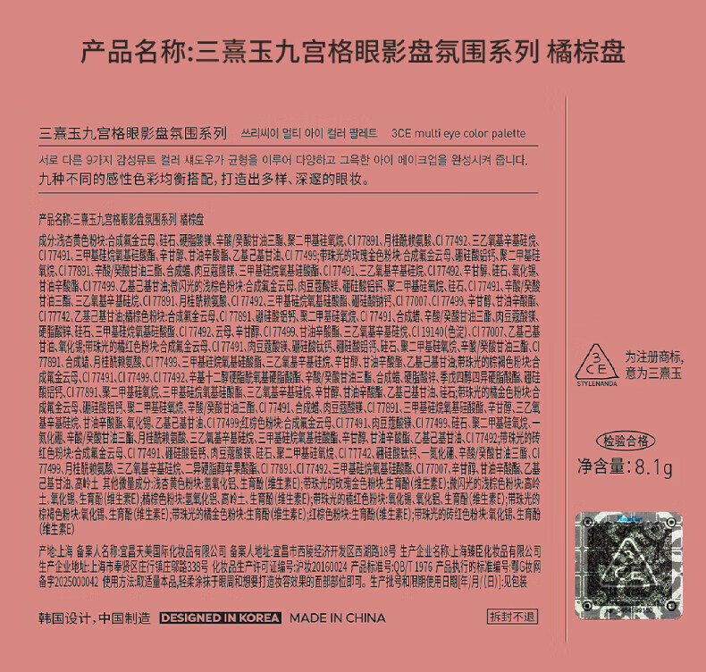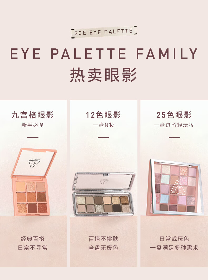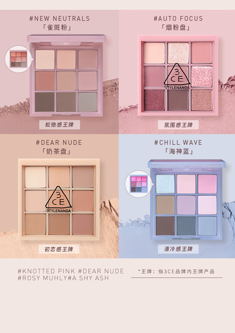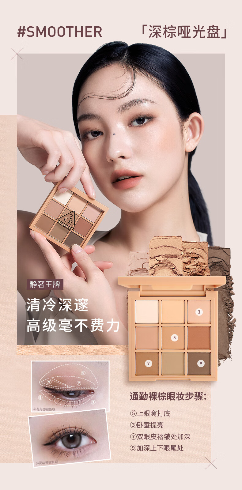 3ce九宫格九色眼影盘秋风落叶OVERTAKE橘棕盘哑光生日礼物妇女节礼物