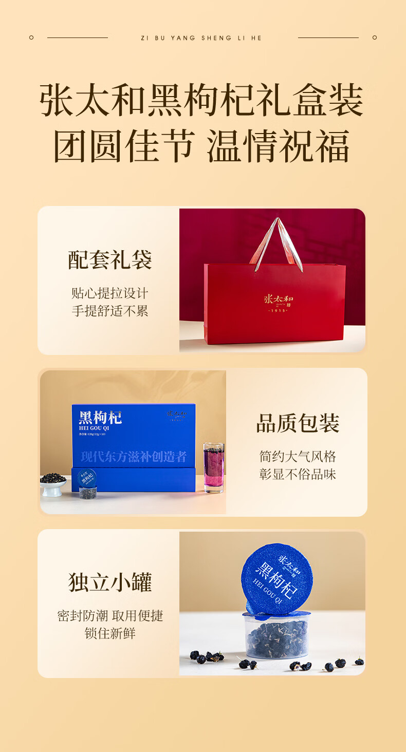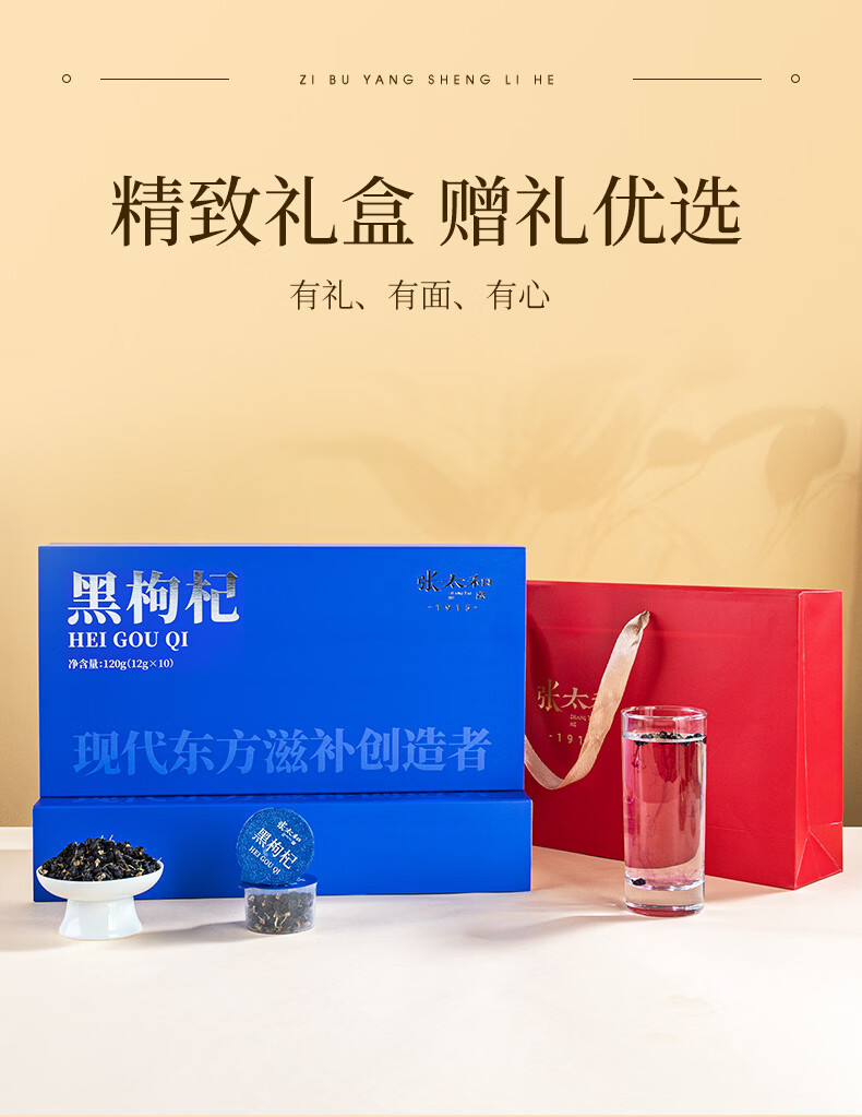张太和黑枸杞小罐茶礼盒120g(12g*10罐)泡水养生茶富含花青素送礼袋 黑枸杞礼盒 120g*1盒 送礼袋