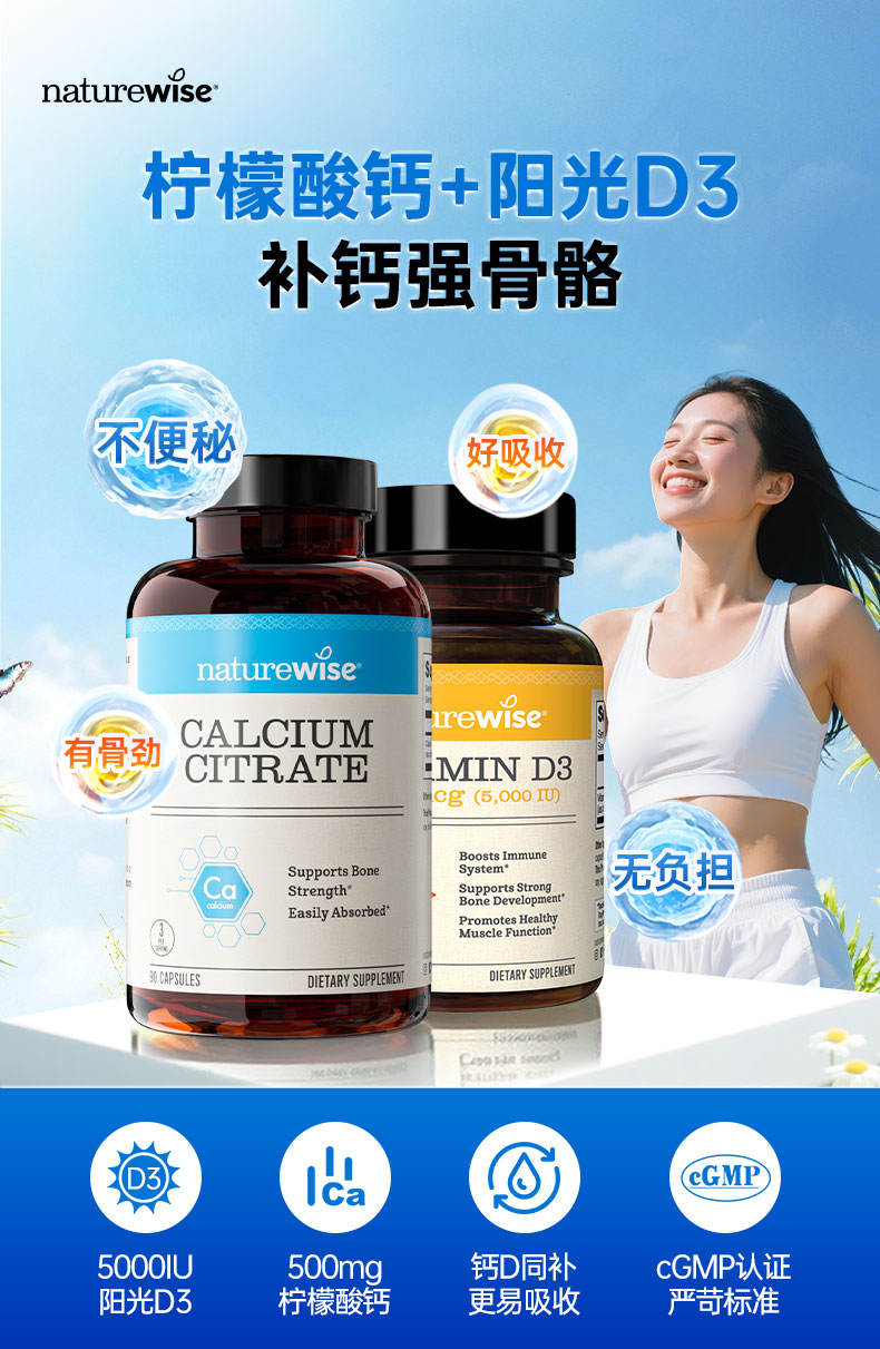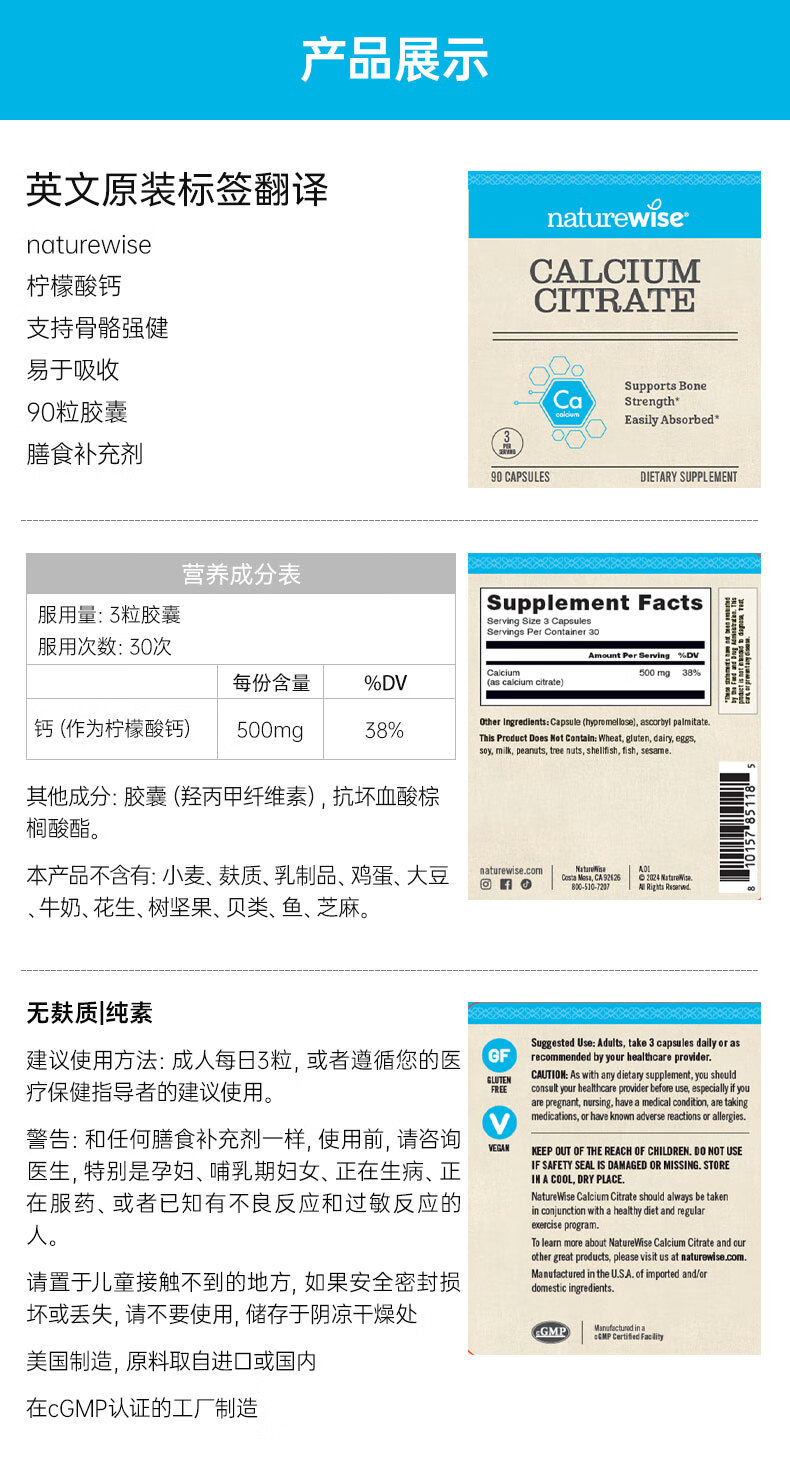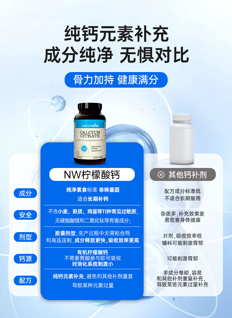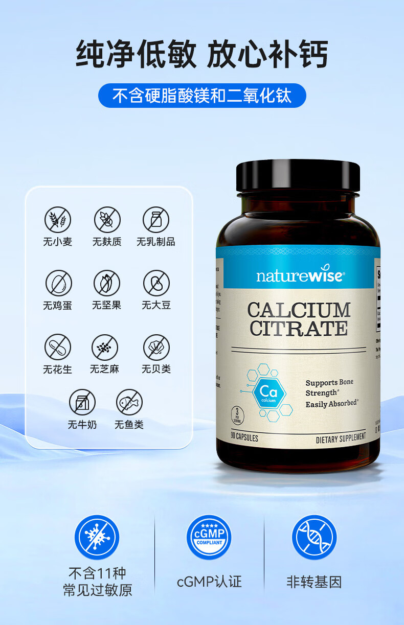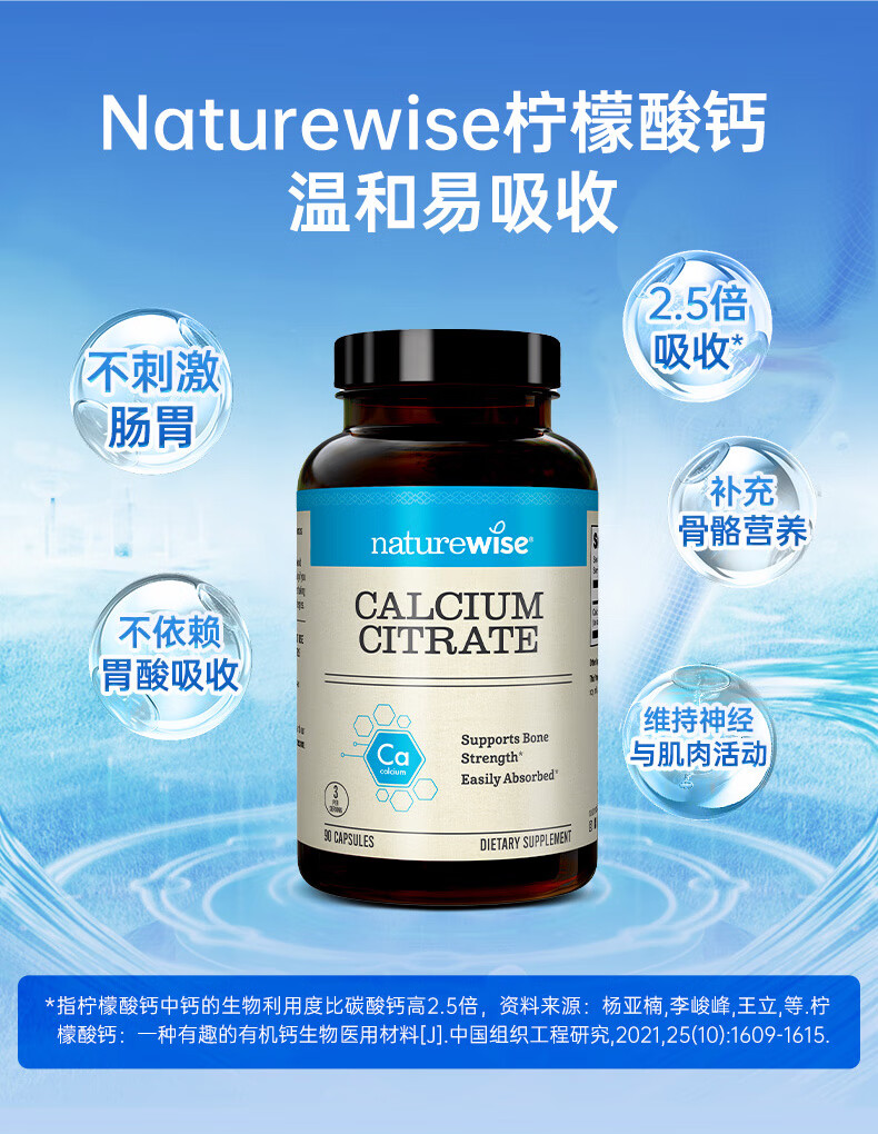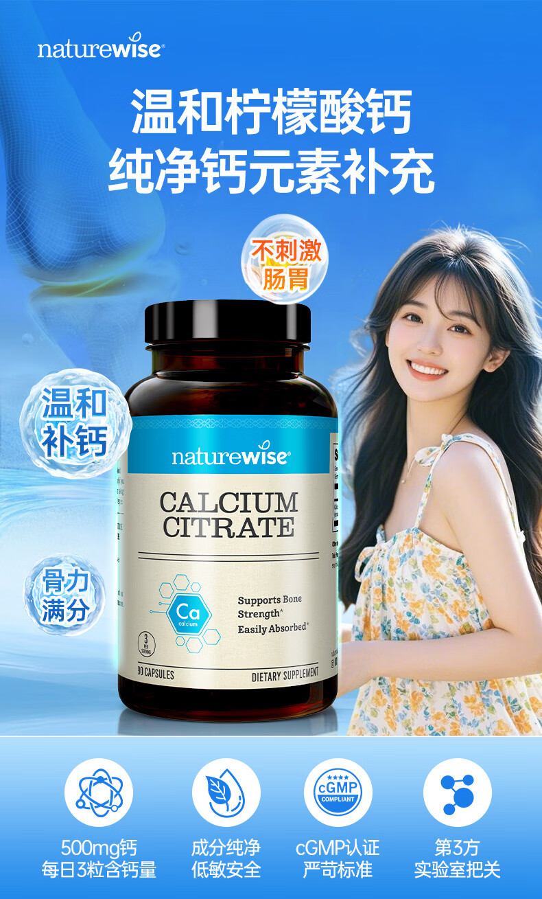naturewise纯柠檬酸钙胶囊孕妇成人女士男士强健骨骼骨质疏松美国进口 纯净柠檬酸钙 90粒*1瓶