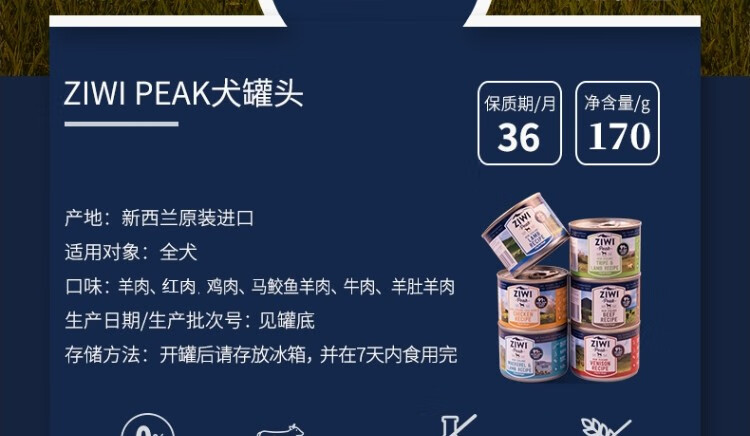 滋益巅峰(ZIWI)狗罐头主食罐170g 新西兰进口幼犬成犬营养狗罐头全犬种通用型 鹿肉170g