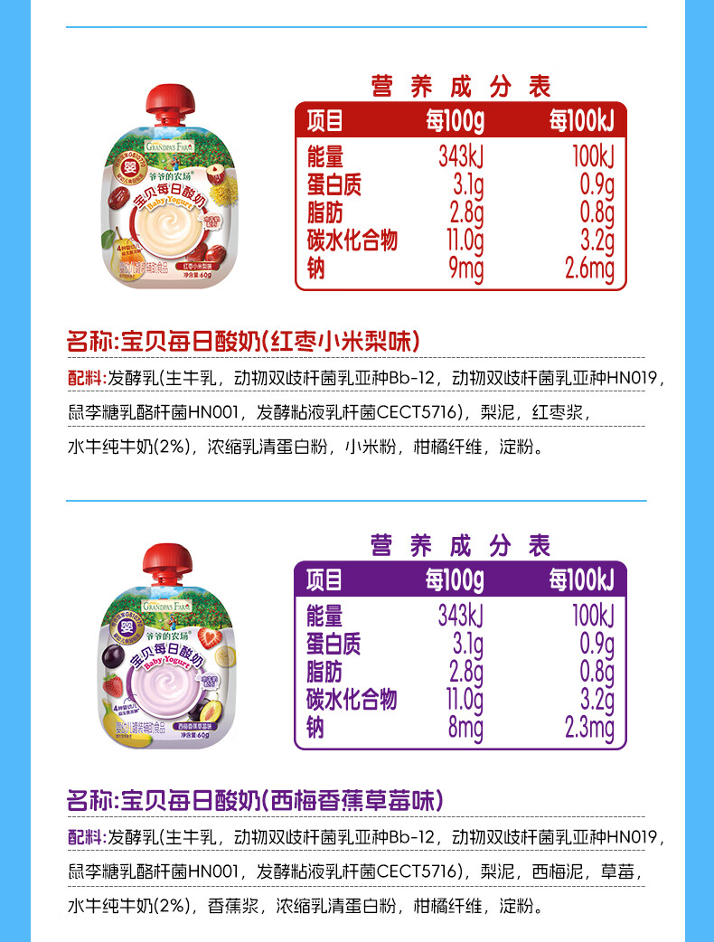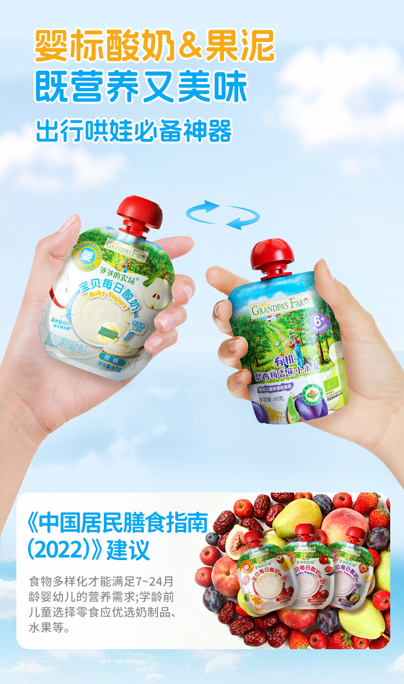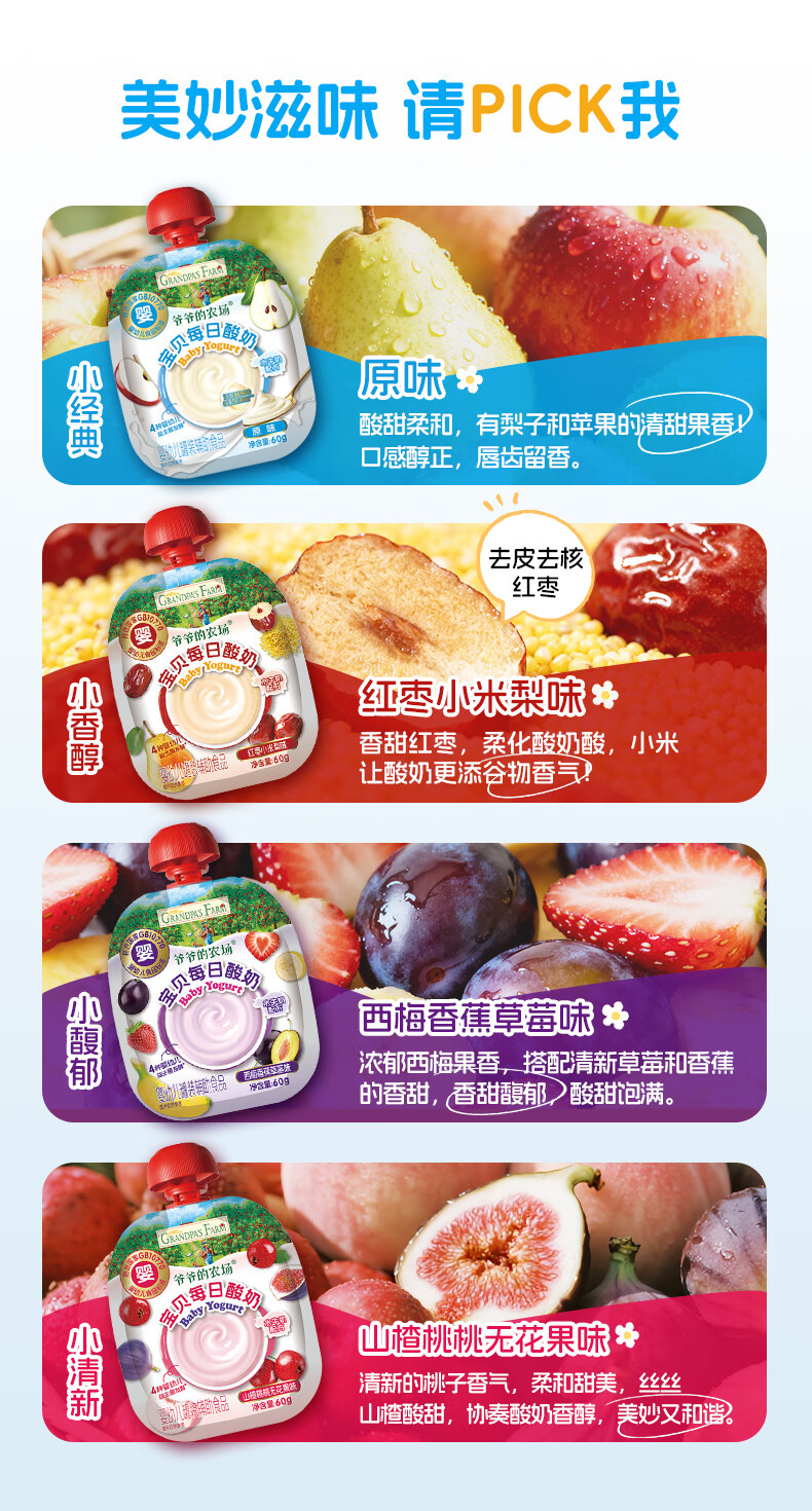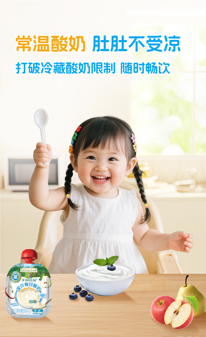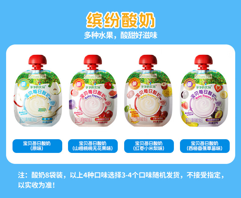 爷爷的农场婴幼儿宝宝酸奶3-4口味随机60g*8袋 婴标零食常温酸奶营养代餐