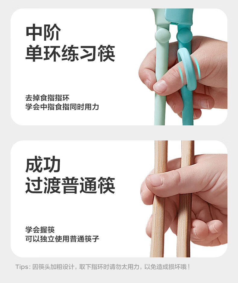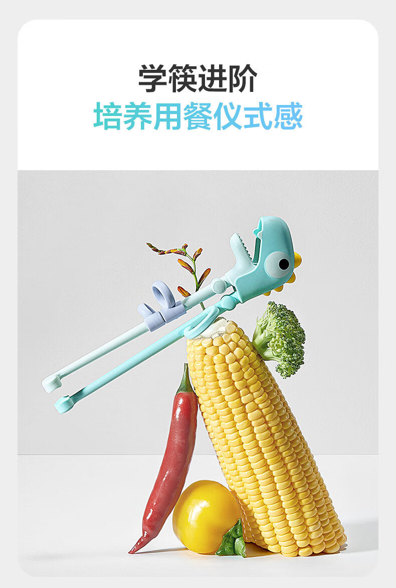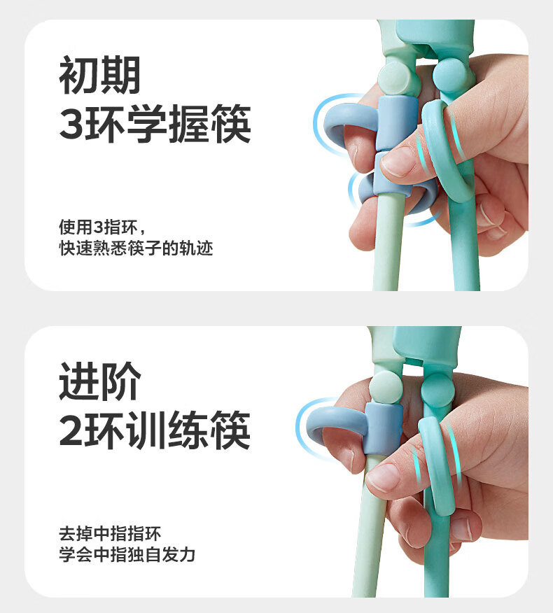 babycare儿童筷子训练筷自动回弹学习筷宝宝筷虎口训练筷学习PPSU蒂普奇绿