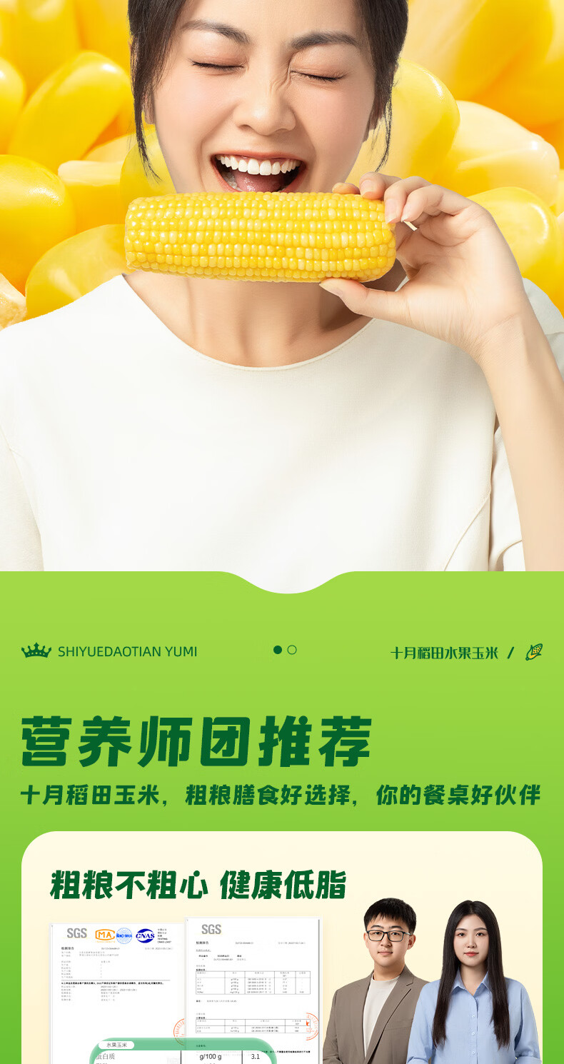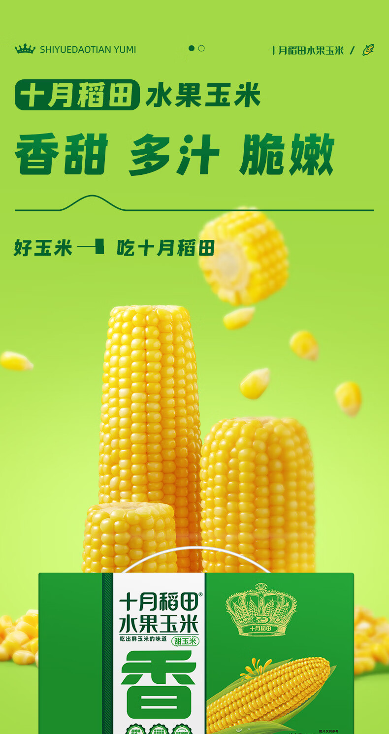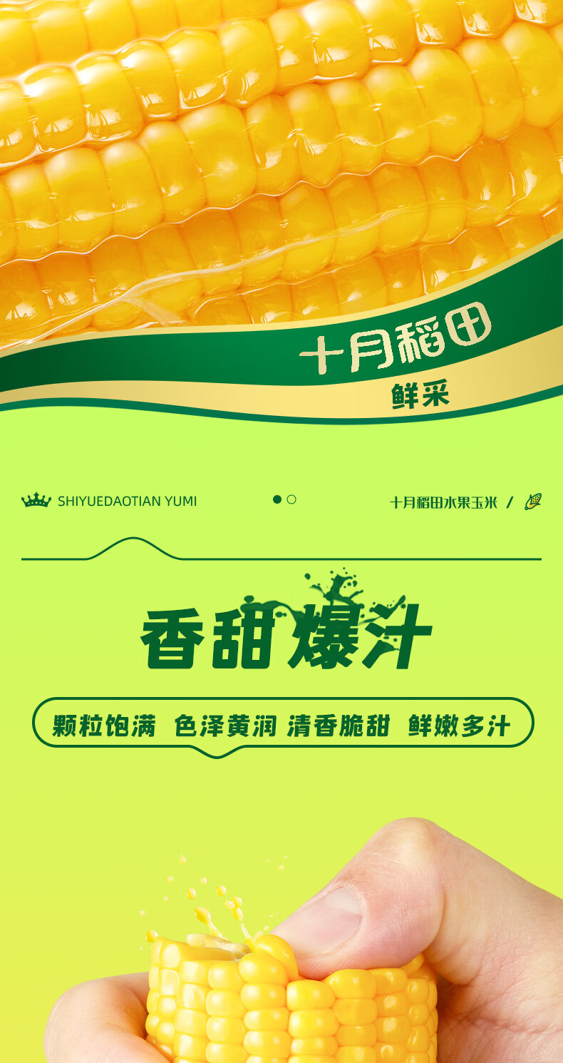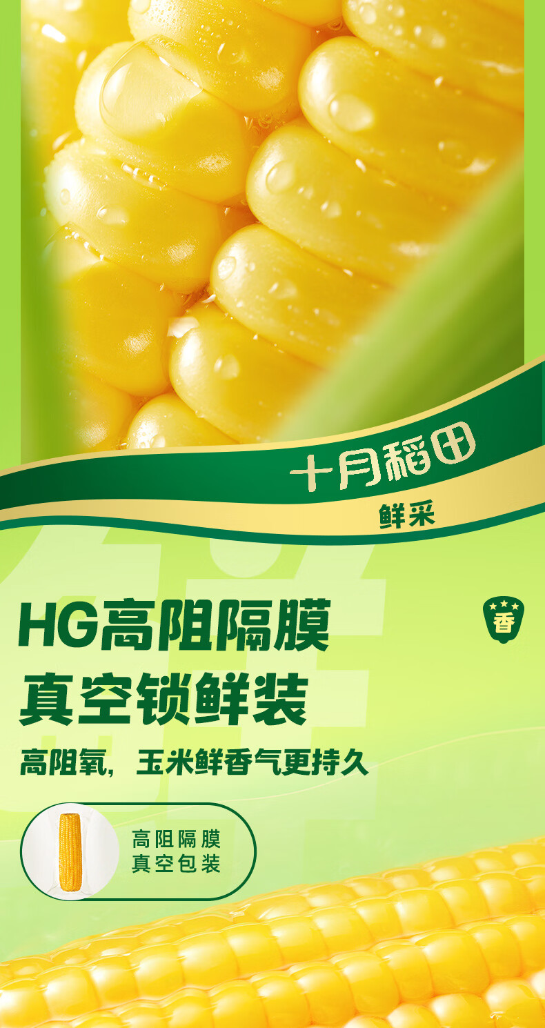 十月稻田 水果甜玉米 8根 3.52斤 真空开袋即食 低脂早餐 粗粮礼盒