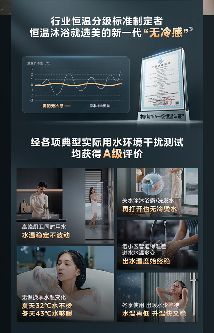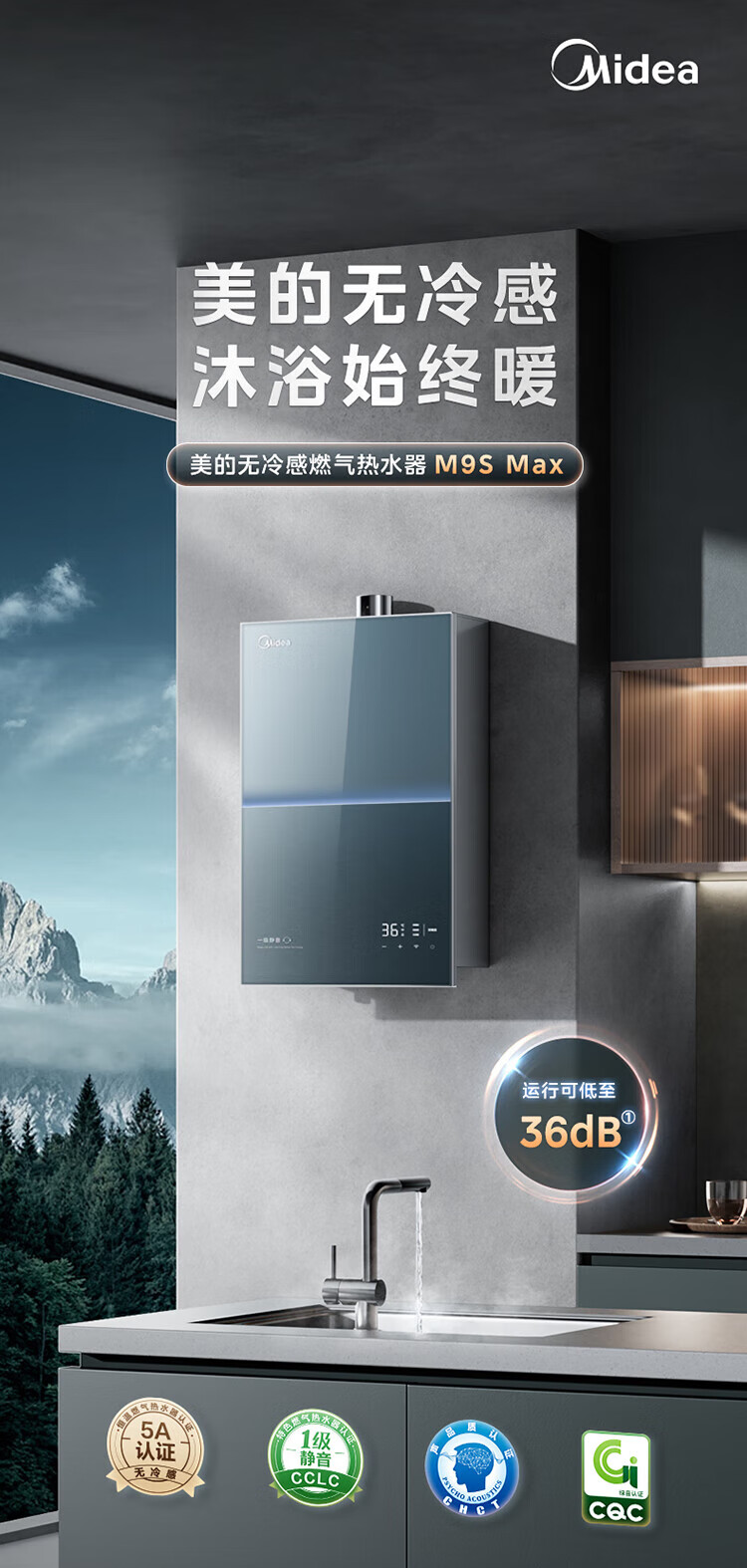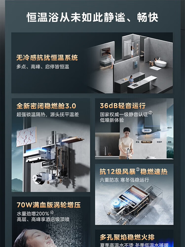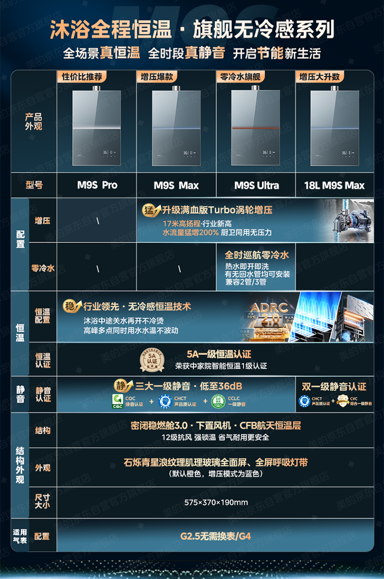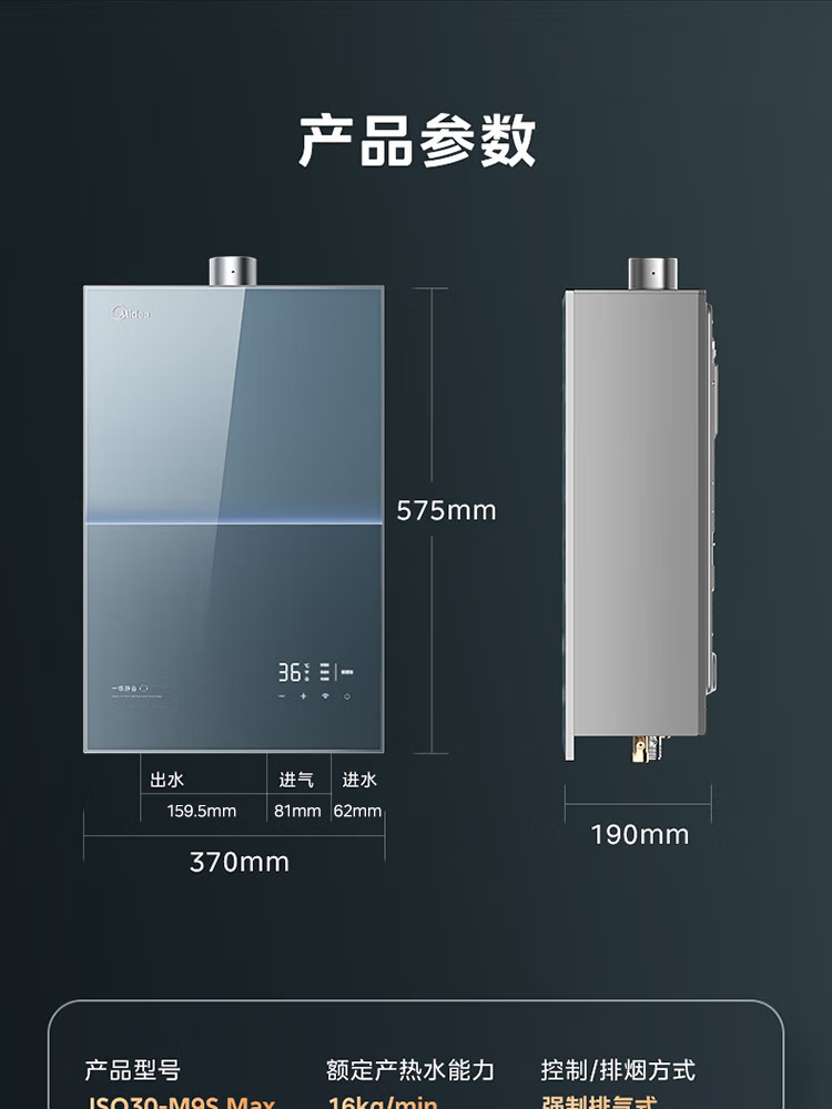 美的【无冷感M9S Max增压】16升 7A一级恒温全程暖 大水量 安睡一级静音 天然气燃气热水器
