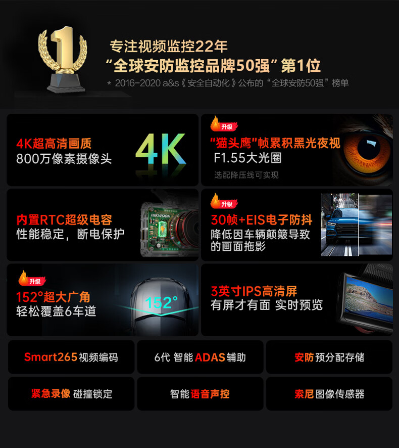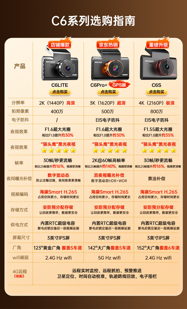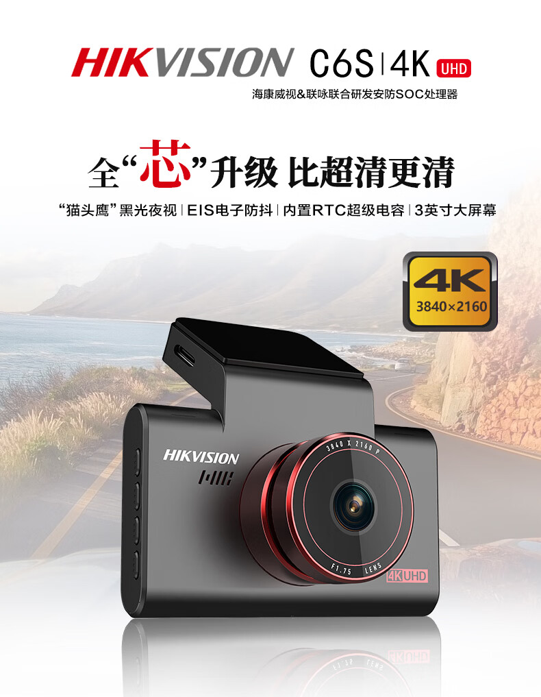 HIKVISION海康威视行车记录仪2026款C6S 4K超高清黑光夜视电子防抖超级电容