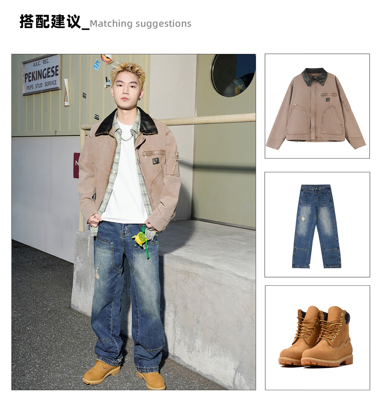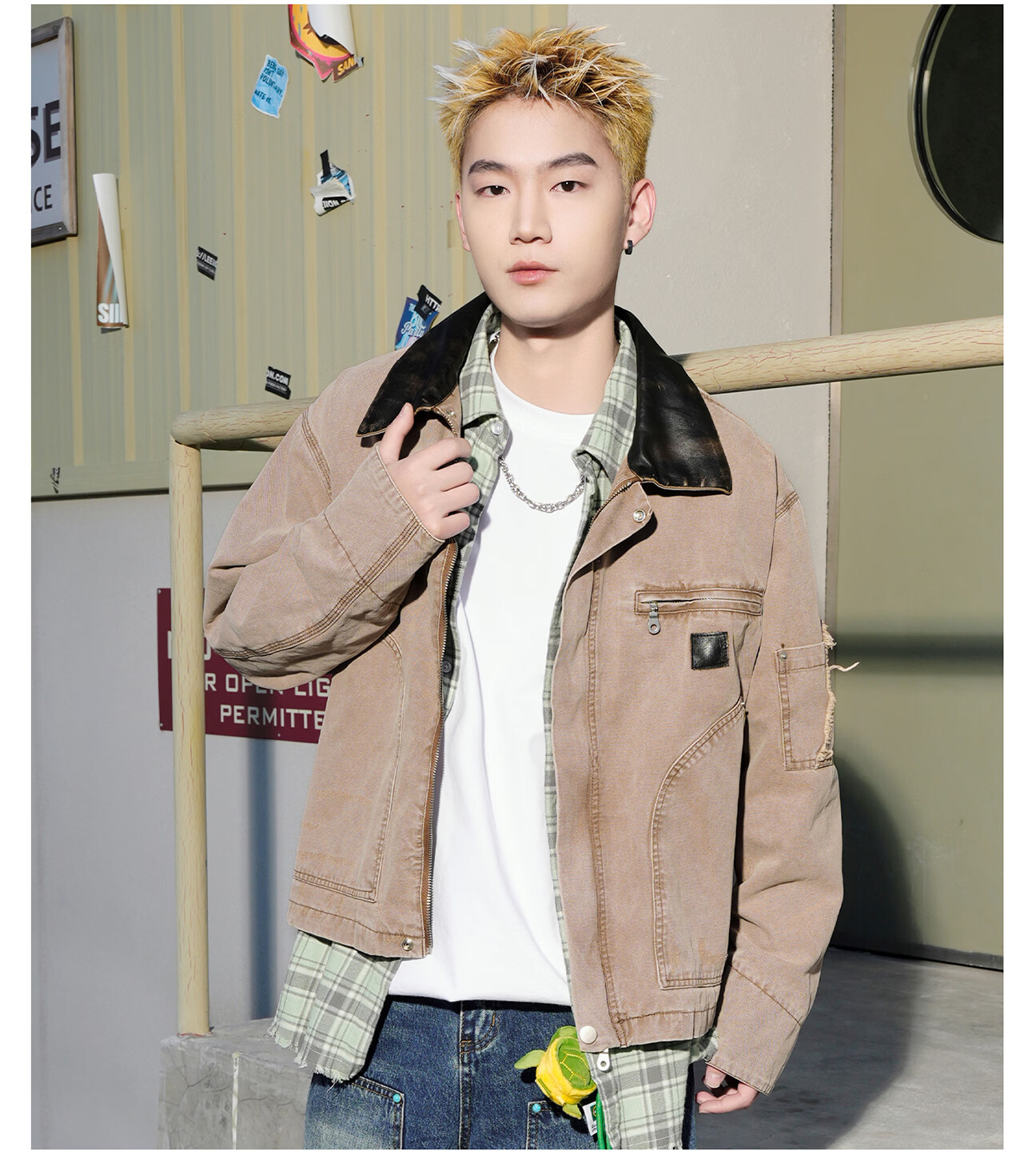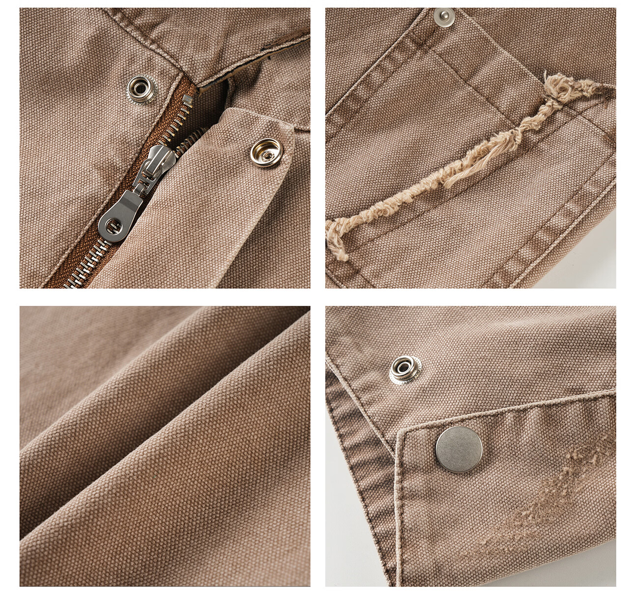 极路客2026新款秋冬卡其色外套男女款洗水 美式高智感 底特律夹克 卡其色 XL