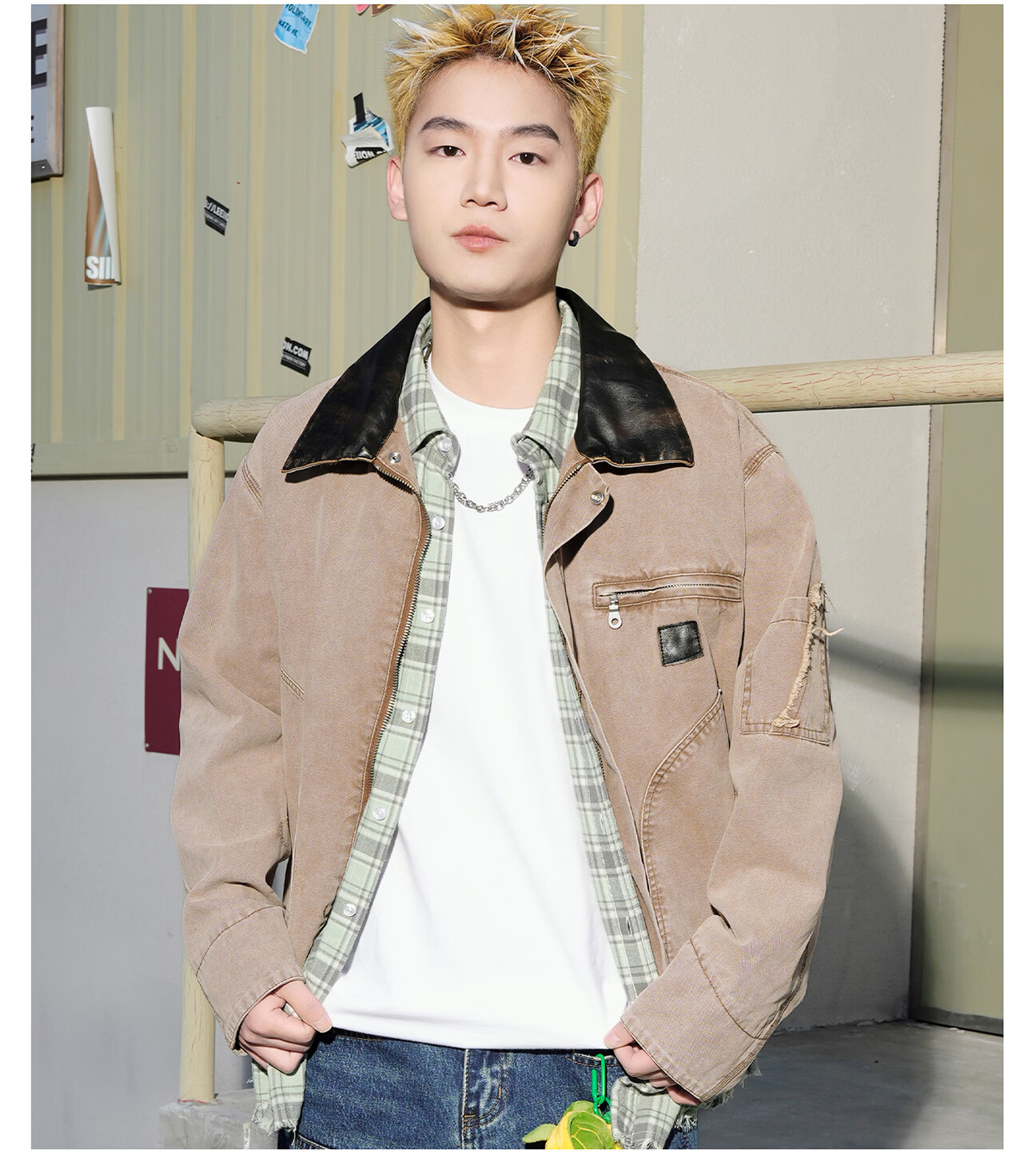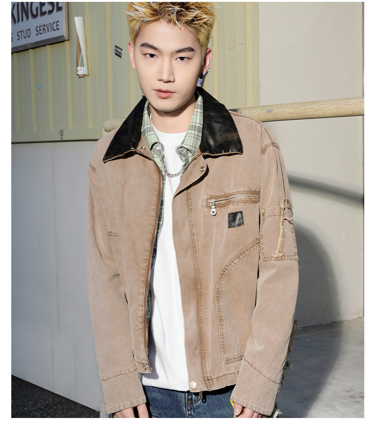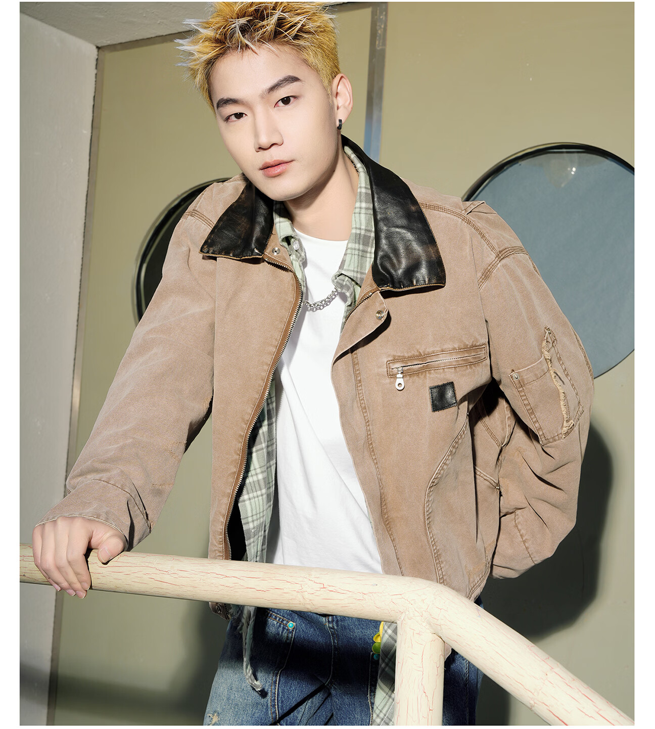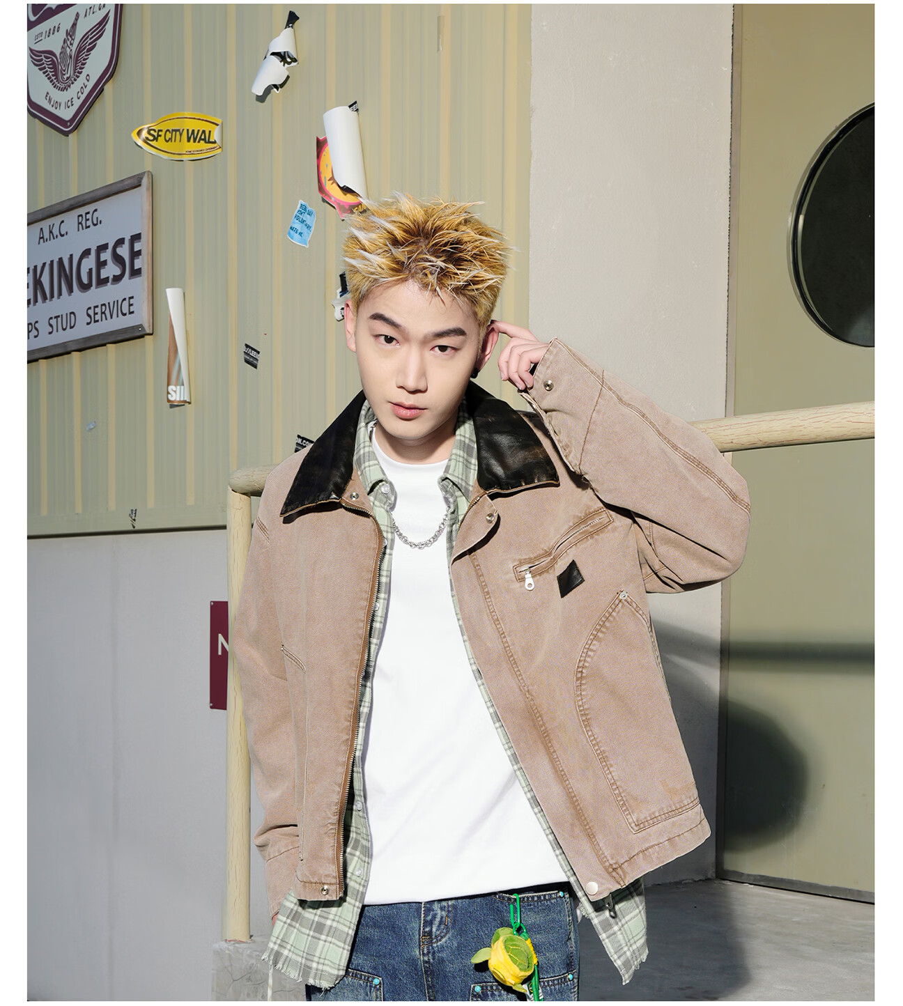 极路客2026新款秋冬卡其色外套男女款洗水 美式高智感 底特律夹克 卡其色 XL