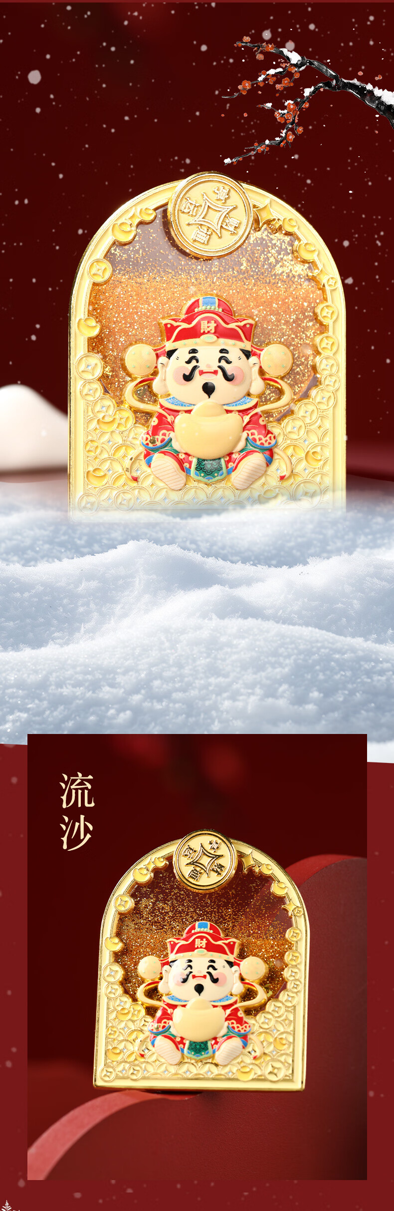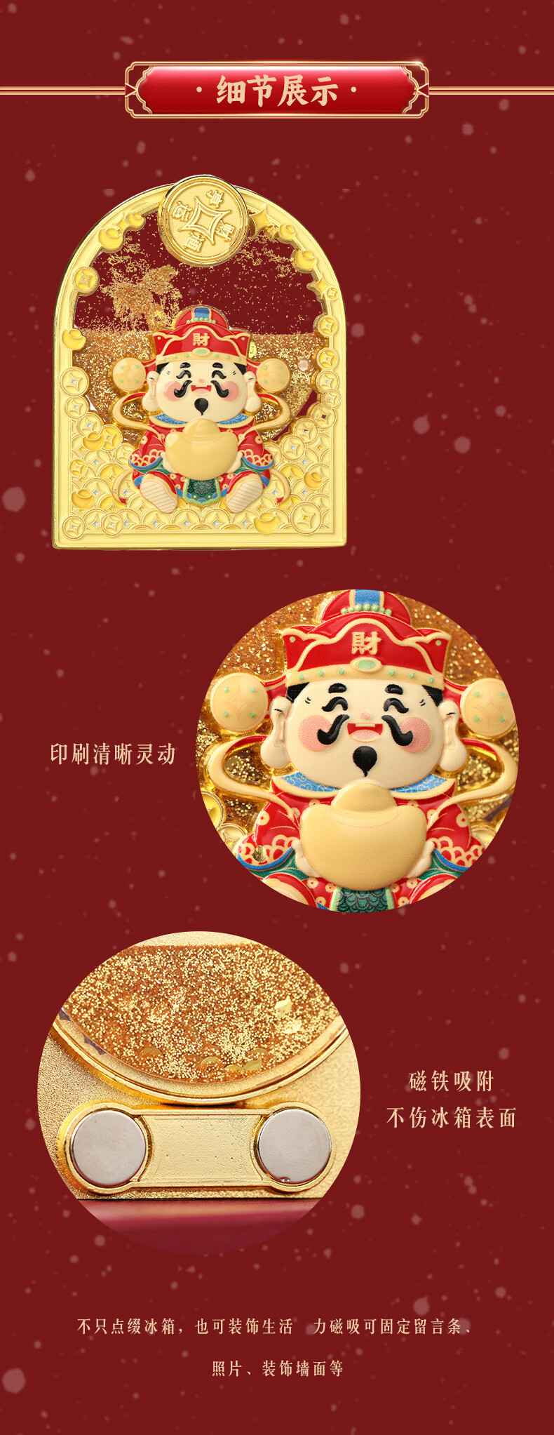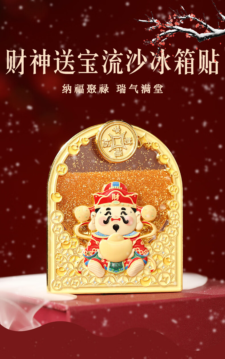 慈元阁财神送宝流沙磁吸冰箱贴复古招财国潮文创旅游伴手礼元旦新年礼物 财神送宝流沙冰箱贴