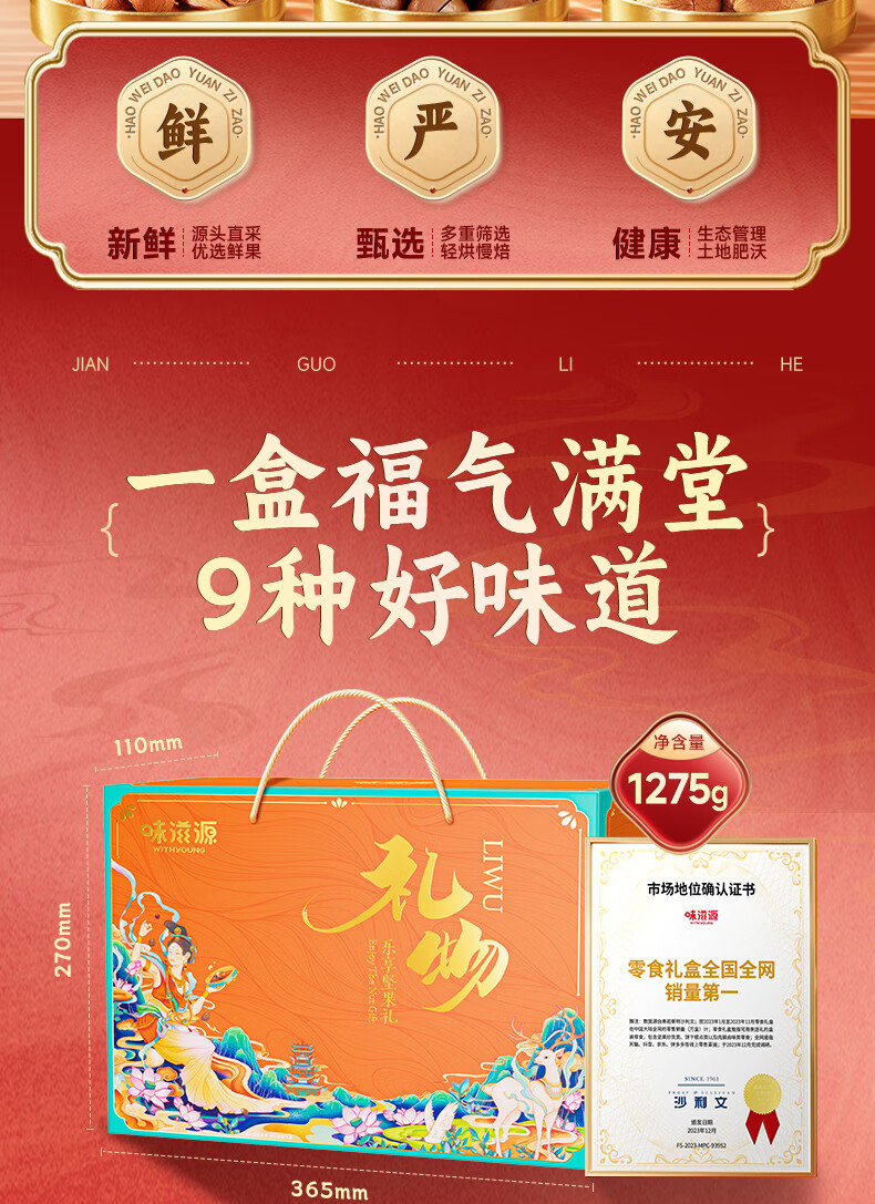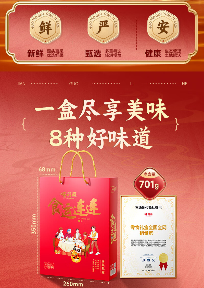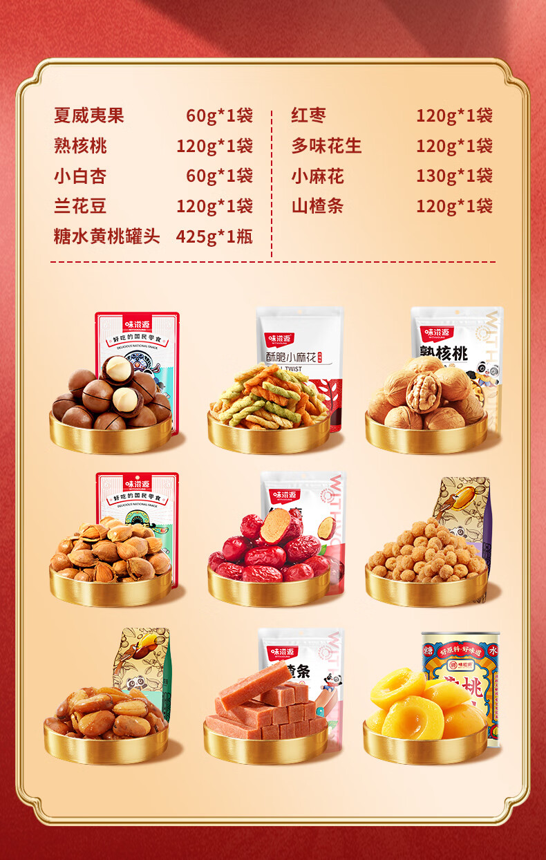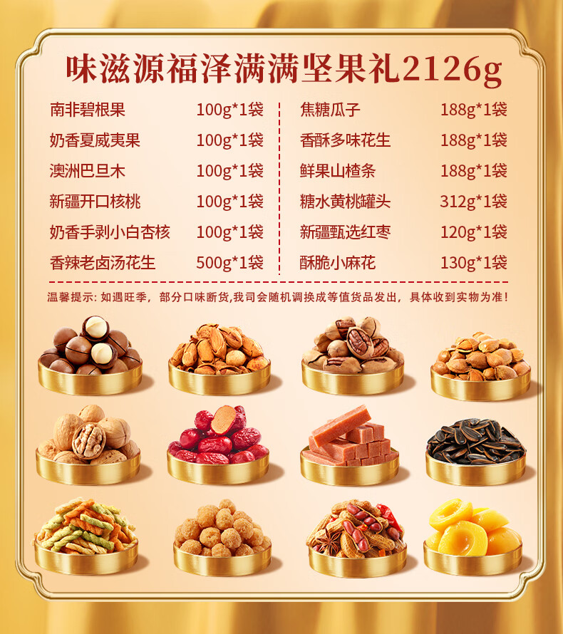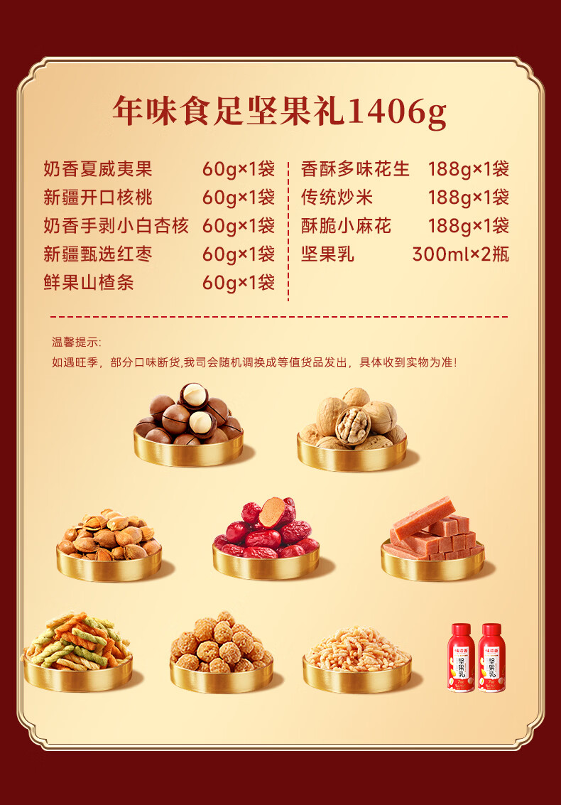 味滋源 坚果礼盒年货坚果炒货零食大礼包过年送礼节日企业团购 1406g/10袋