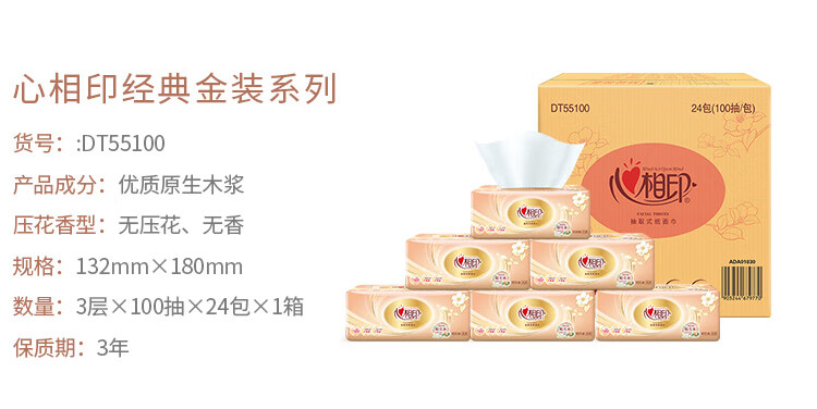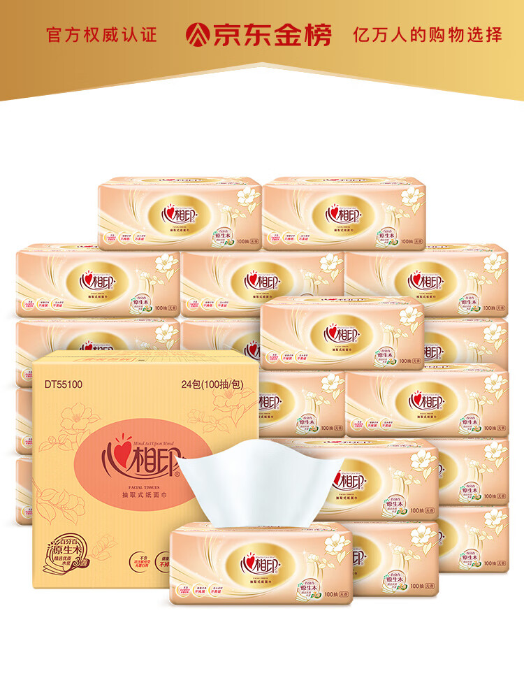 心相印经典系列抽纸24包整箱家庭实惠装 婴儿可用 面巾纸餐巾抽卫生纸巾 【活动实惠装】 3层 100抽*22包