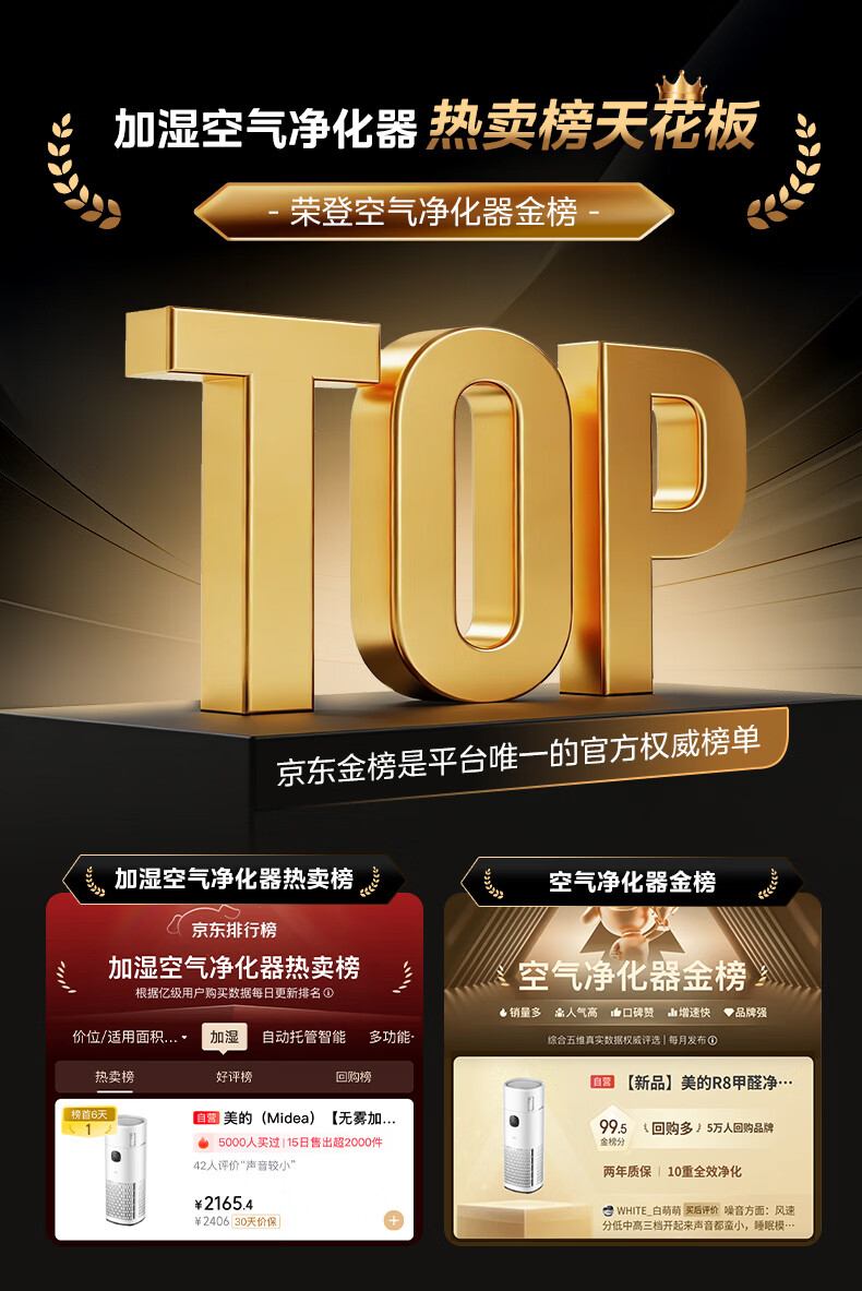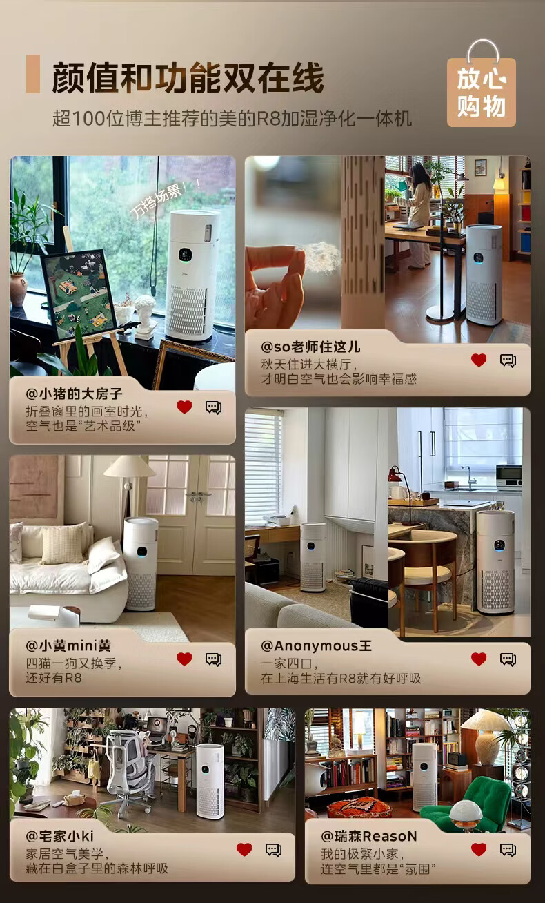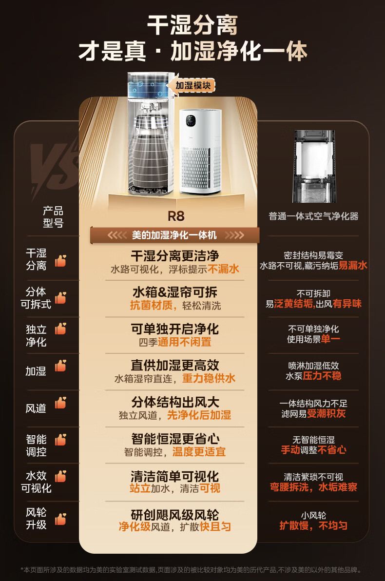 美的(Midea)【无雾加湿器】R8空气净化器加湿一体鼻炎家用甲醛数显除烟味异味过敏原吸猫毛空气净化机