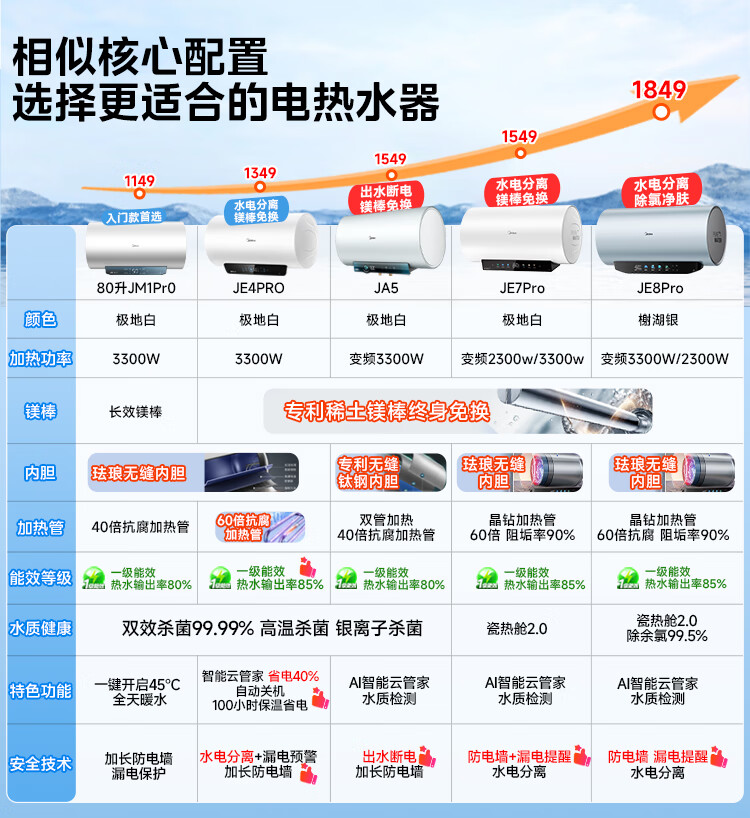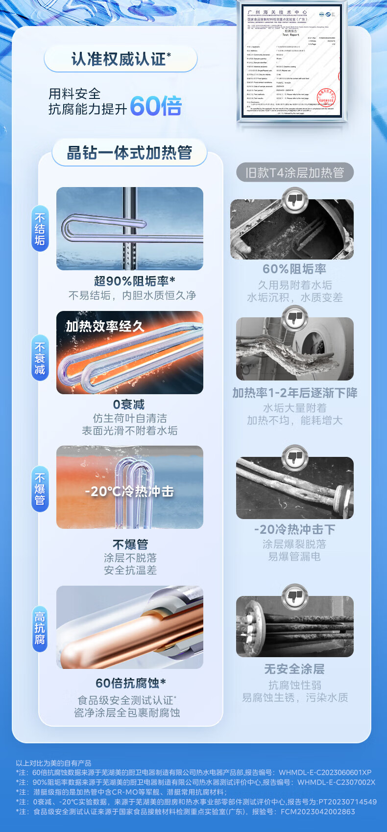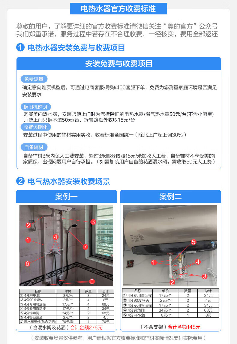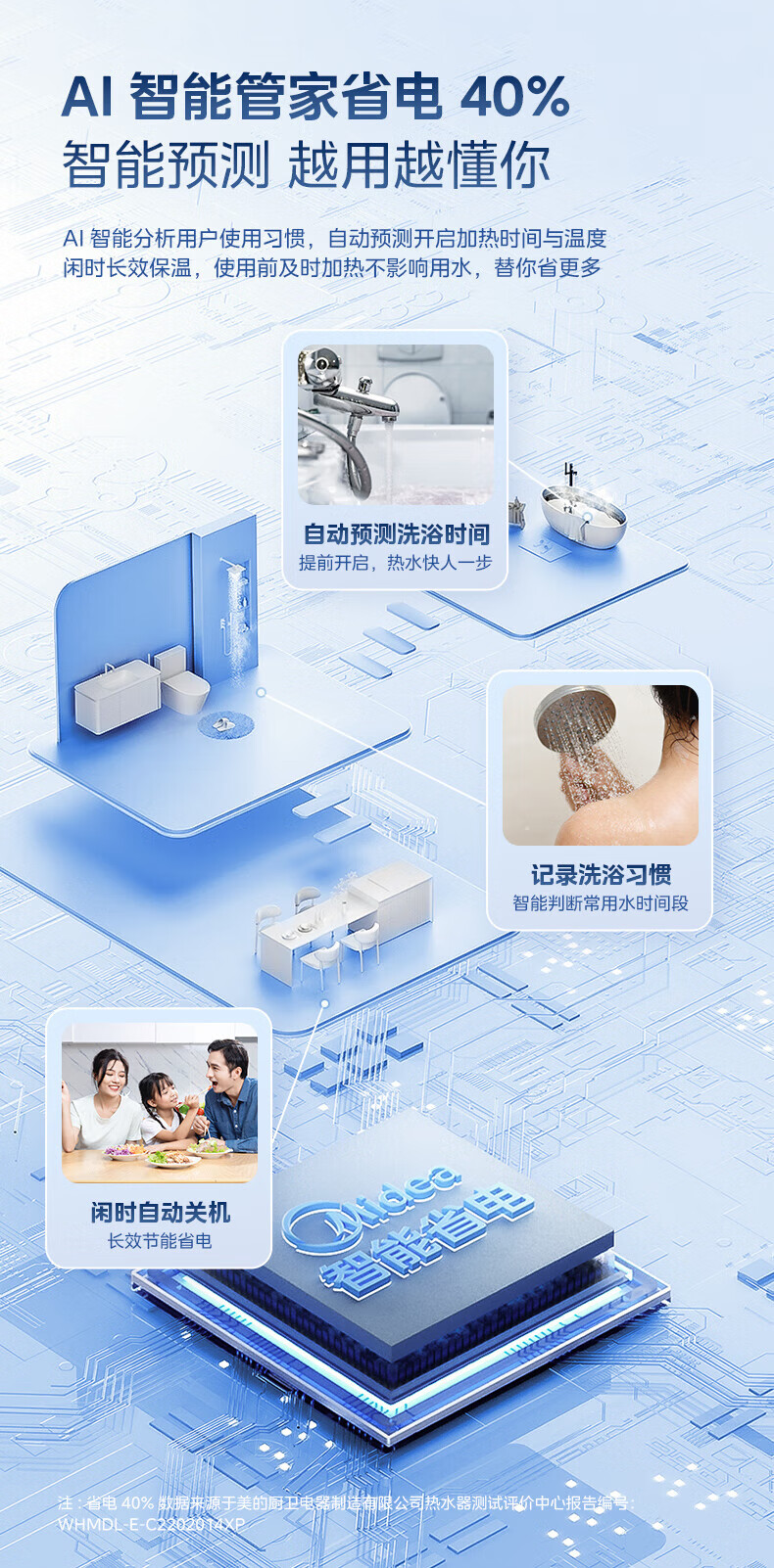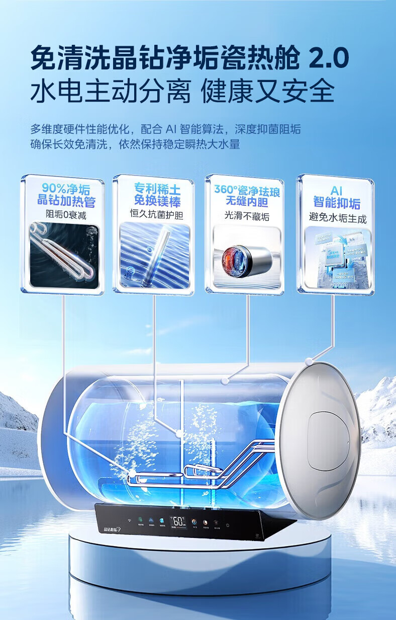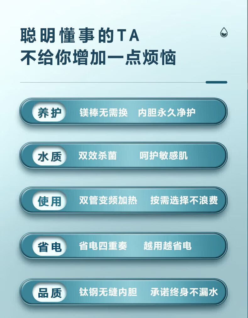 美的(Midea)电热水器60升80升3300W一级能效出水断电速热家用变频节能省电终身镁棒免换免清洗防电墙手机控制 60L 3300W 出水断电 变频双管·JA5