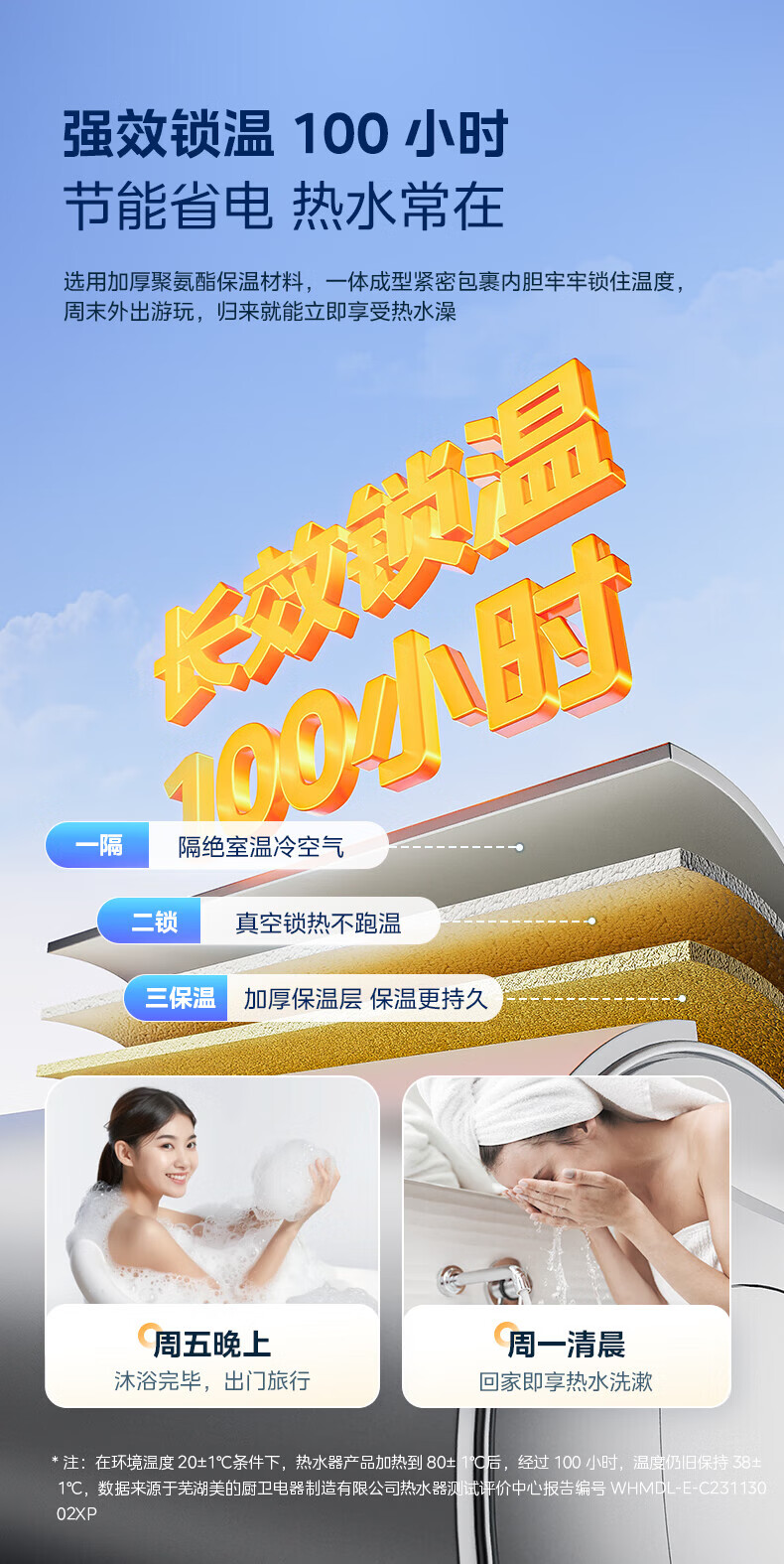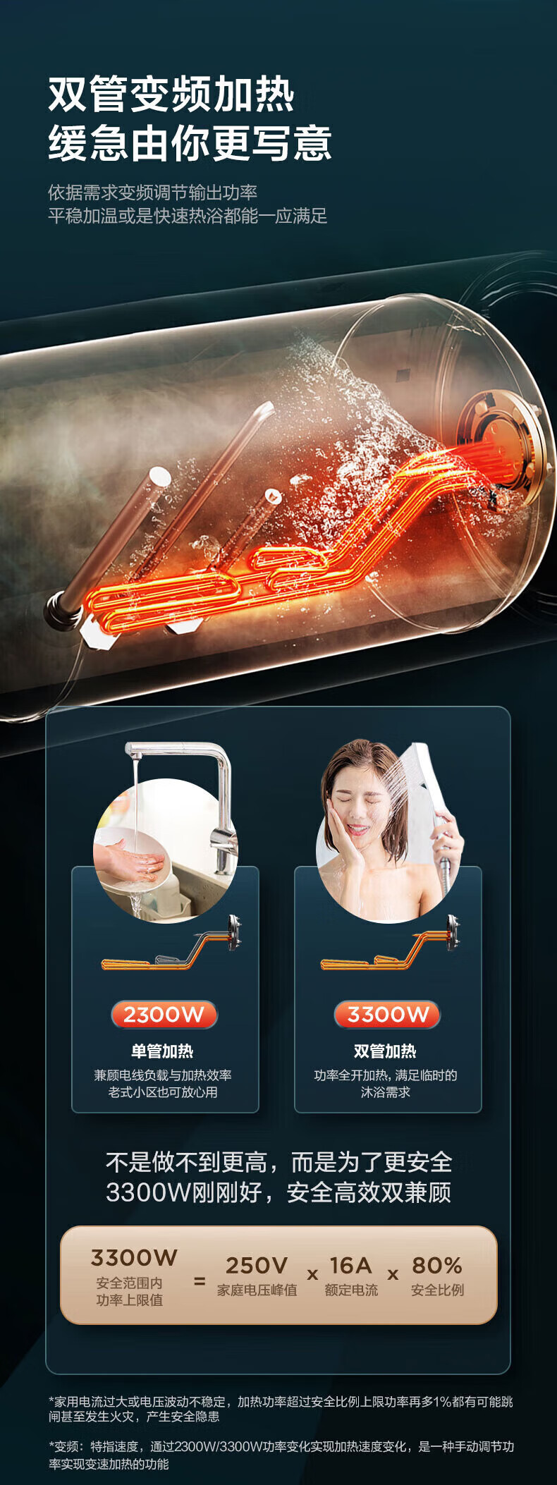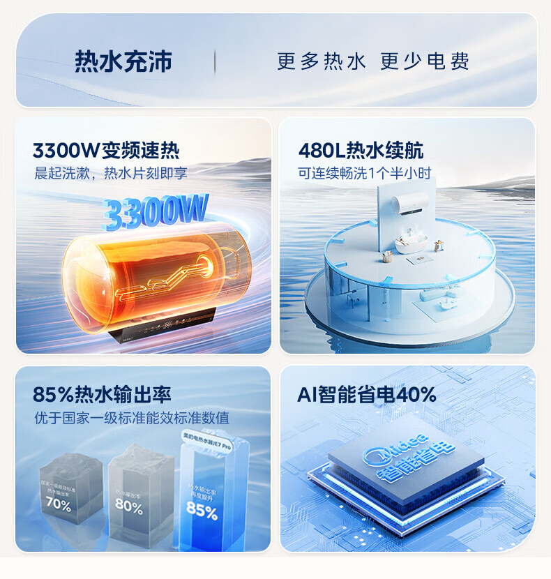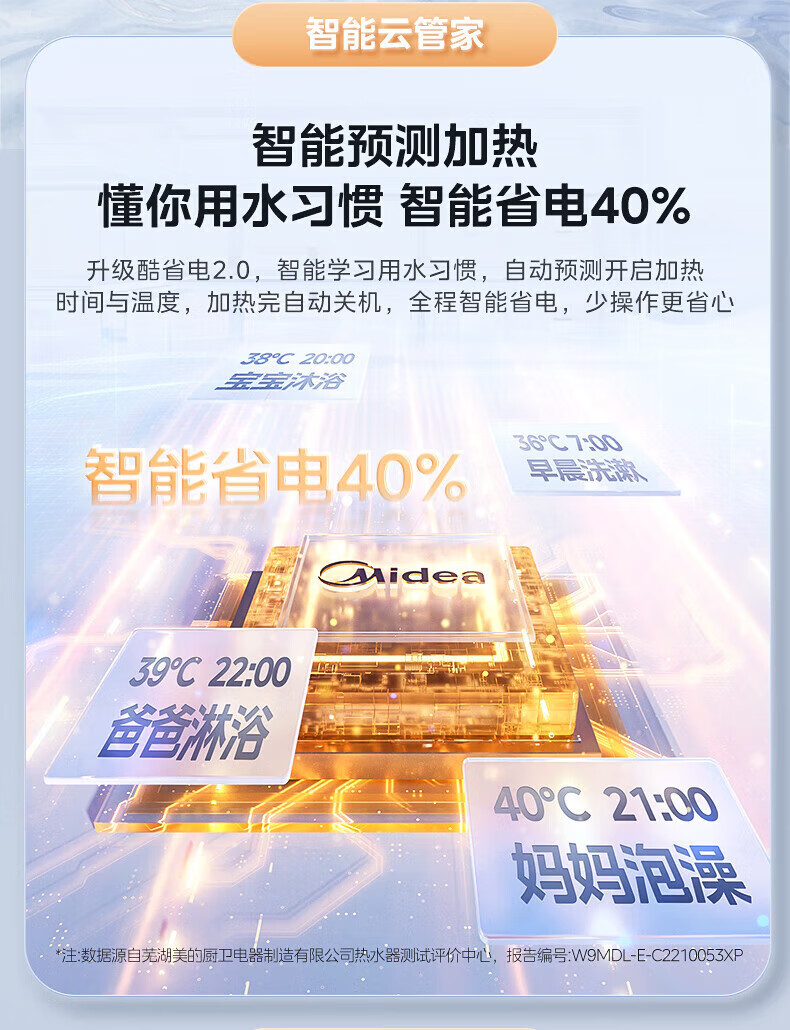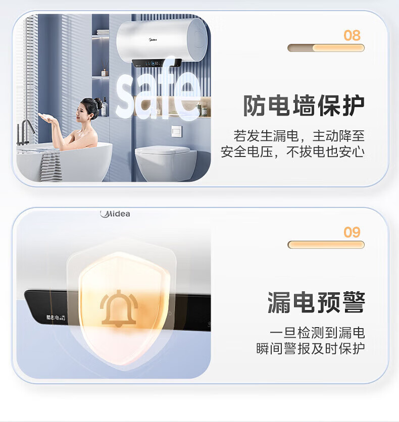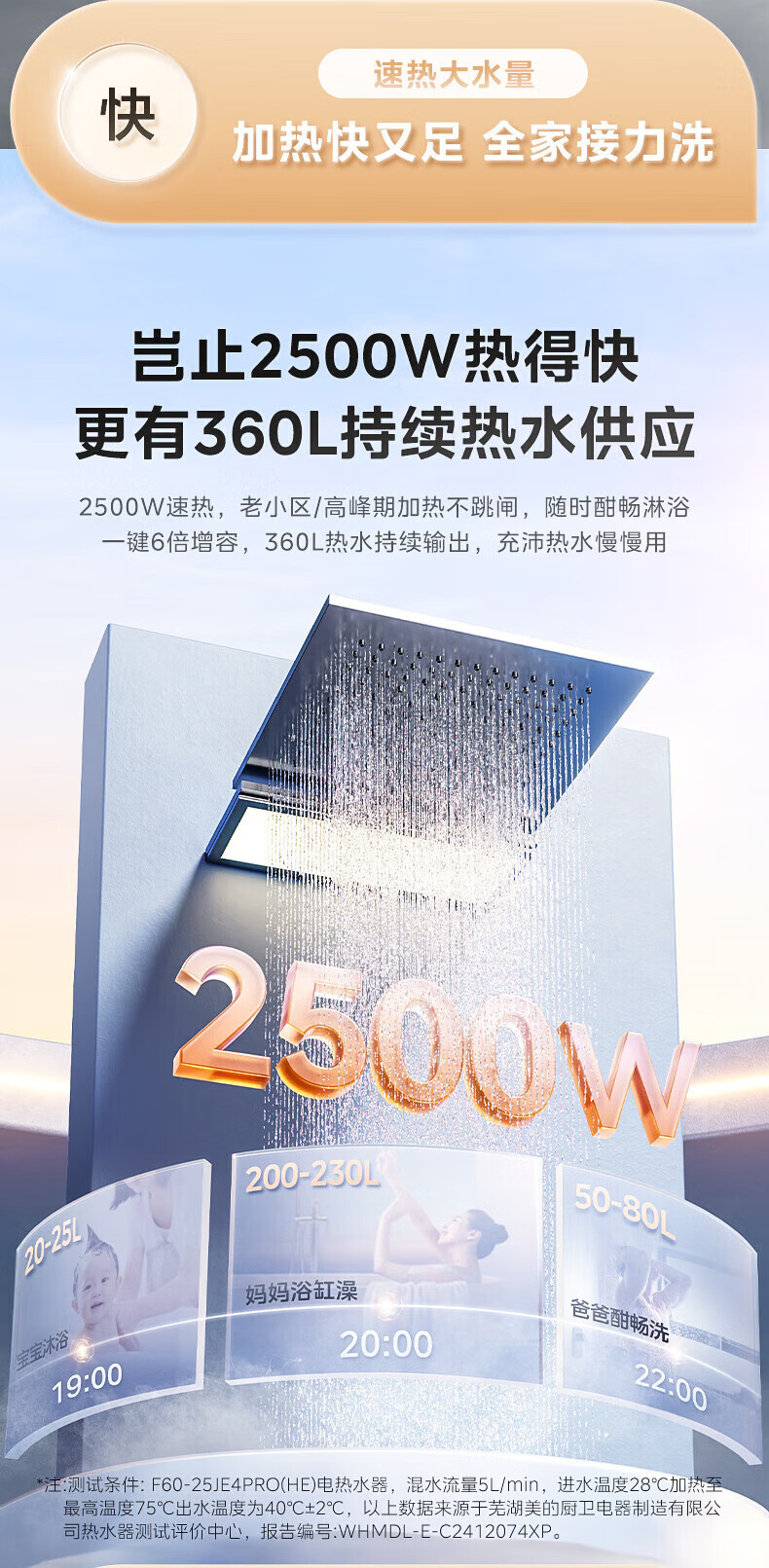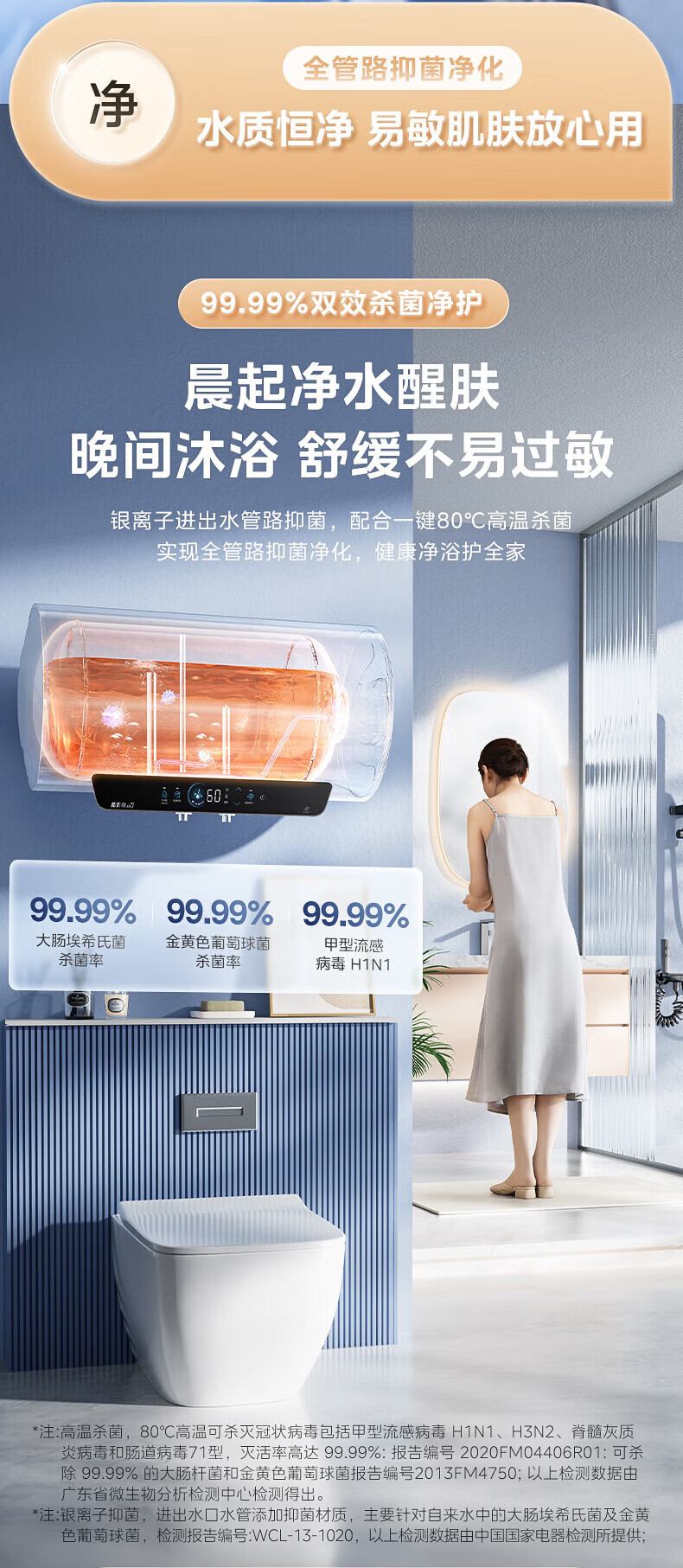 美的(Midea)电热水器60升80升3300W一级能效出水断电速热家用变频节能省电终身镁棒免换免清洗防电墙手机控制 60L 3300W 出水断电 变频双管·JA5