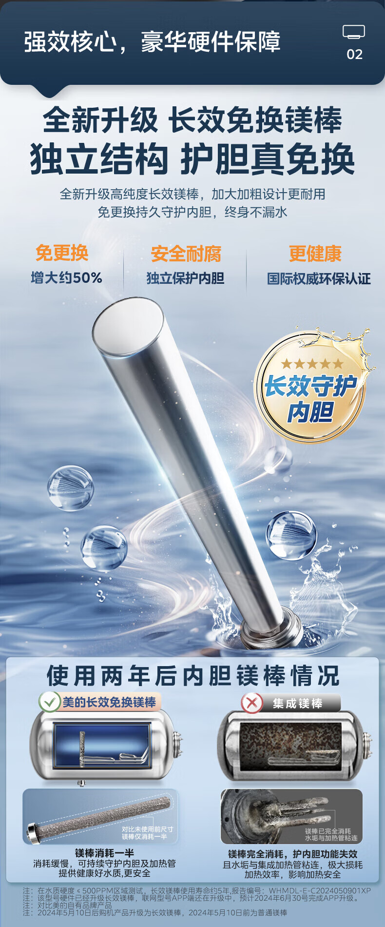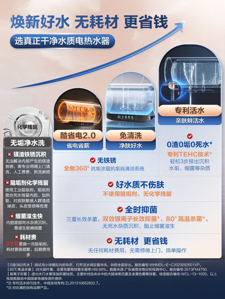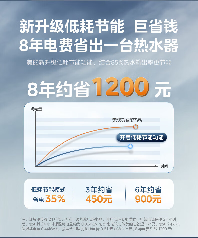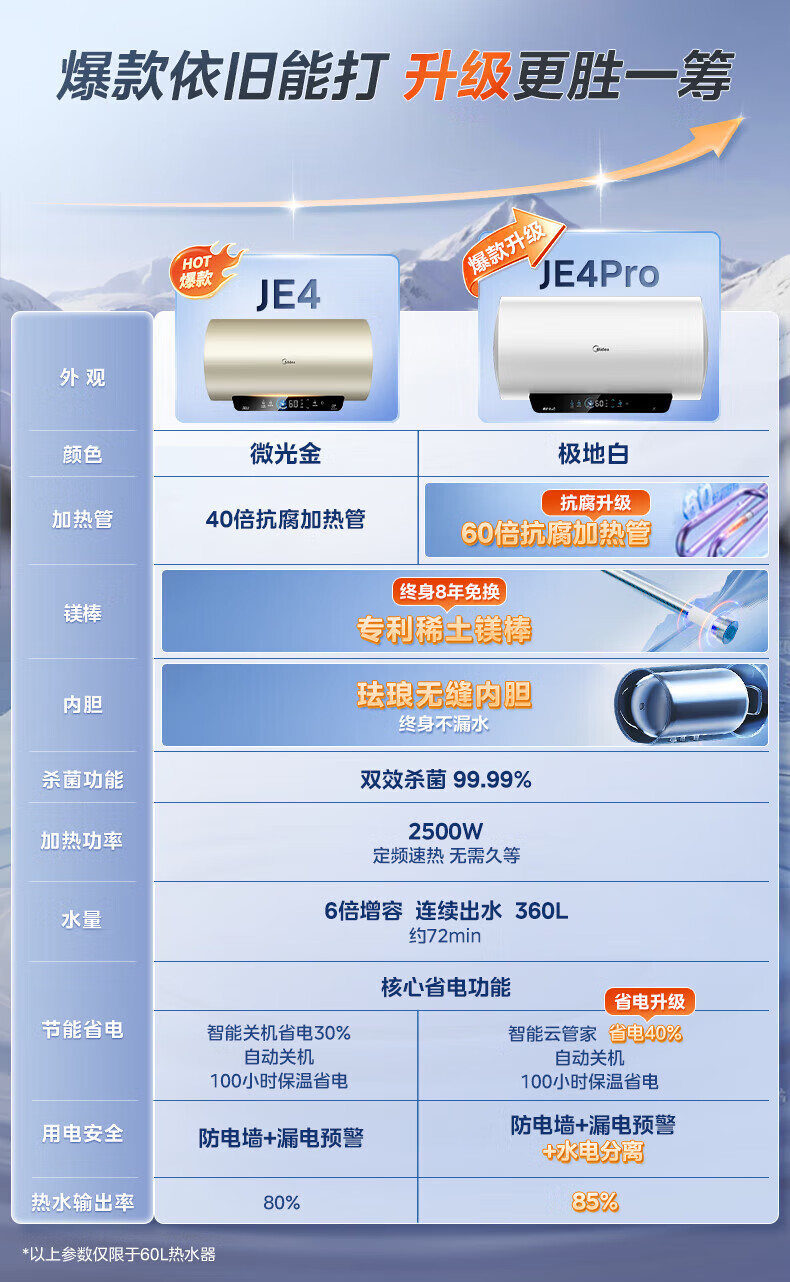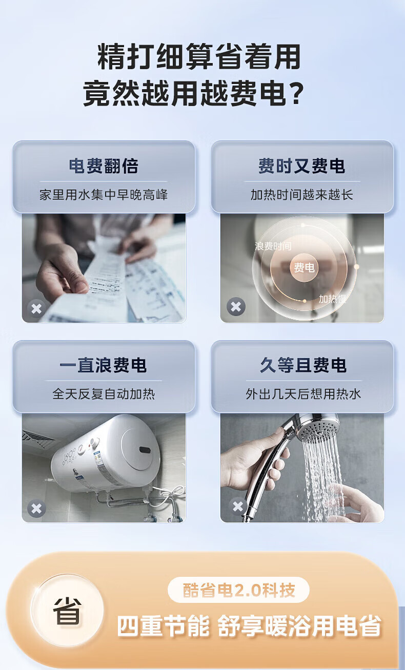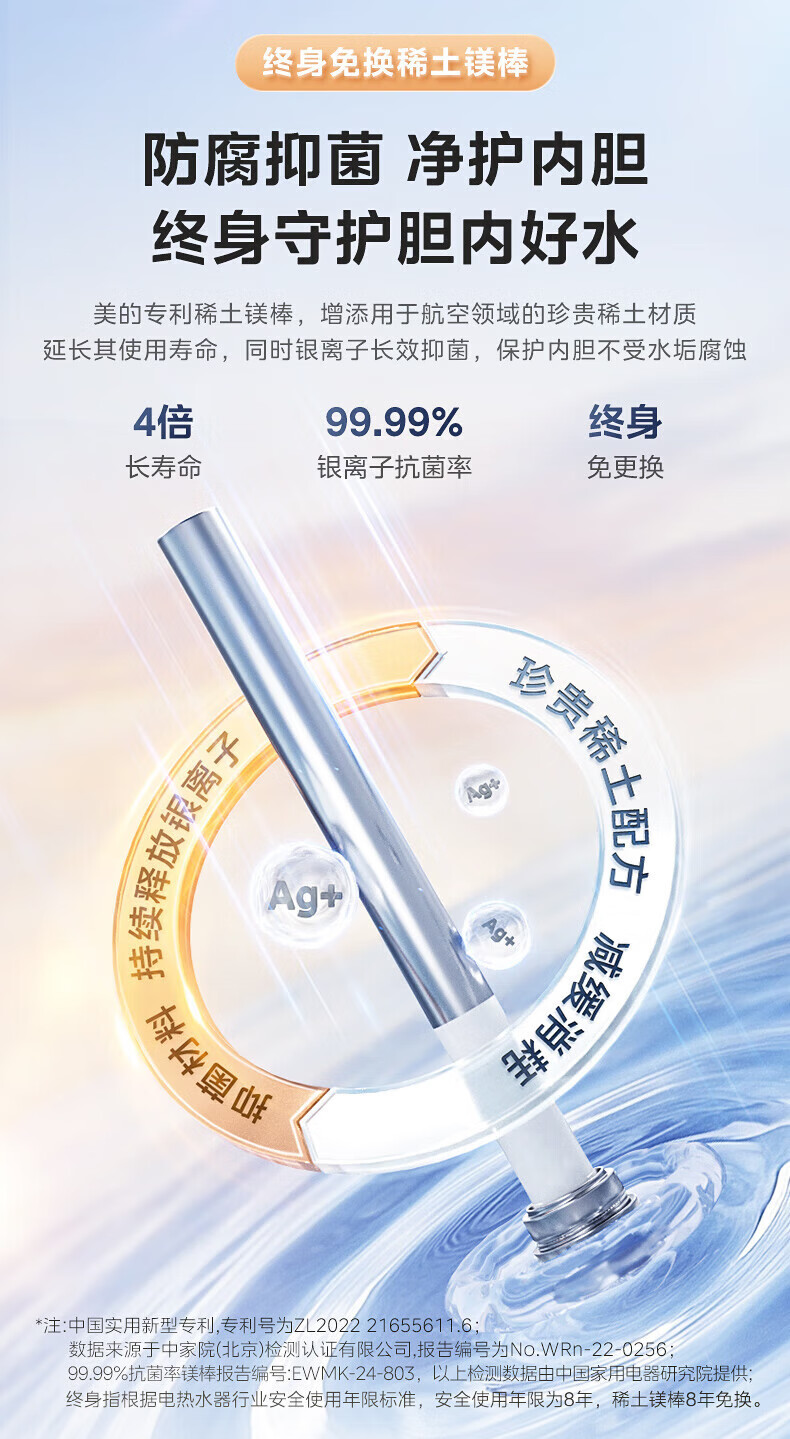 美的(Midea)电热水器60升80升3300W一级能效出水断电速热家用变频节能省电终身镁棒免换免清洗防电墙手机控制 60L 3300W 出水断电 变频双管·JA5