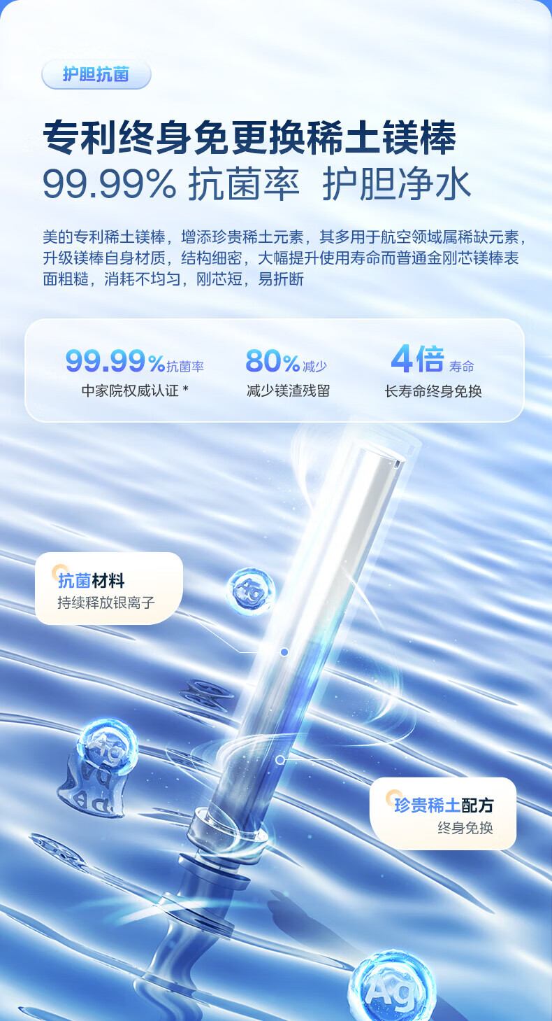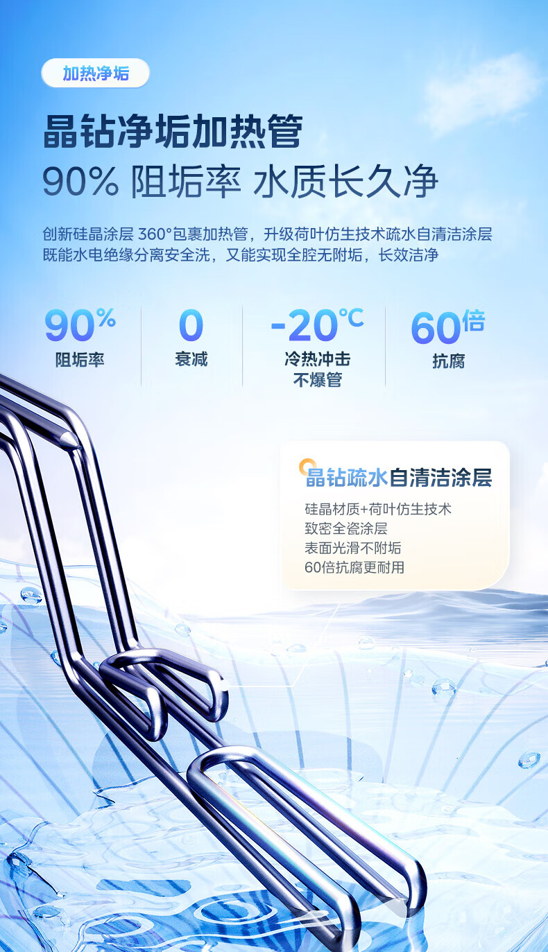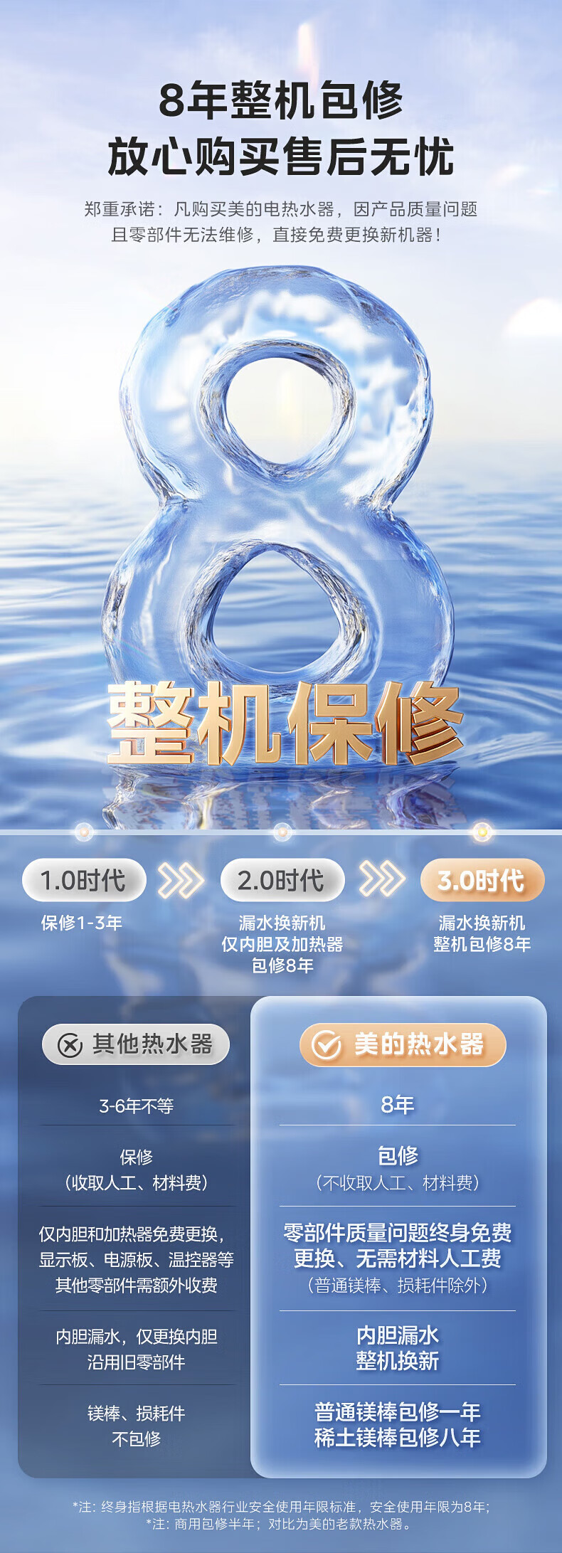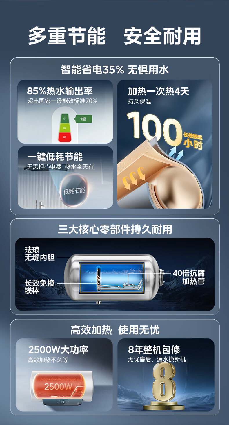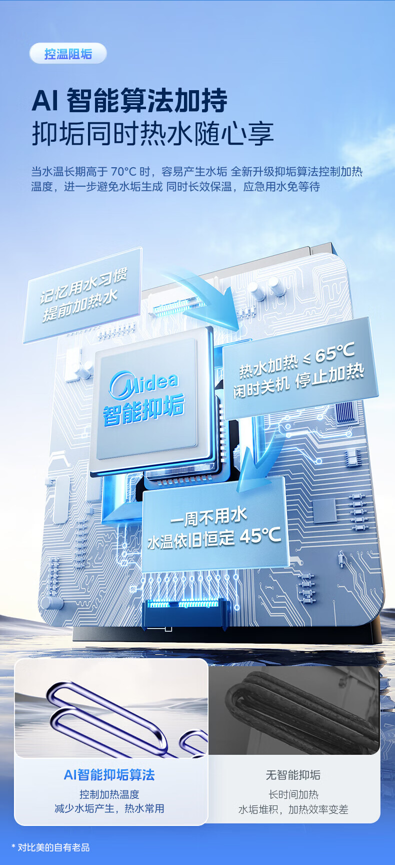 美的(Midea)电热水器60升80升3300W一级能效出水断电速热家用变频节能省电终身镁棒免换免清洗防电墙手机控制 60L 3300W 出水断电 变频双管·JA5