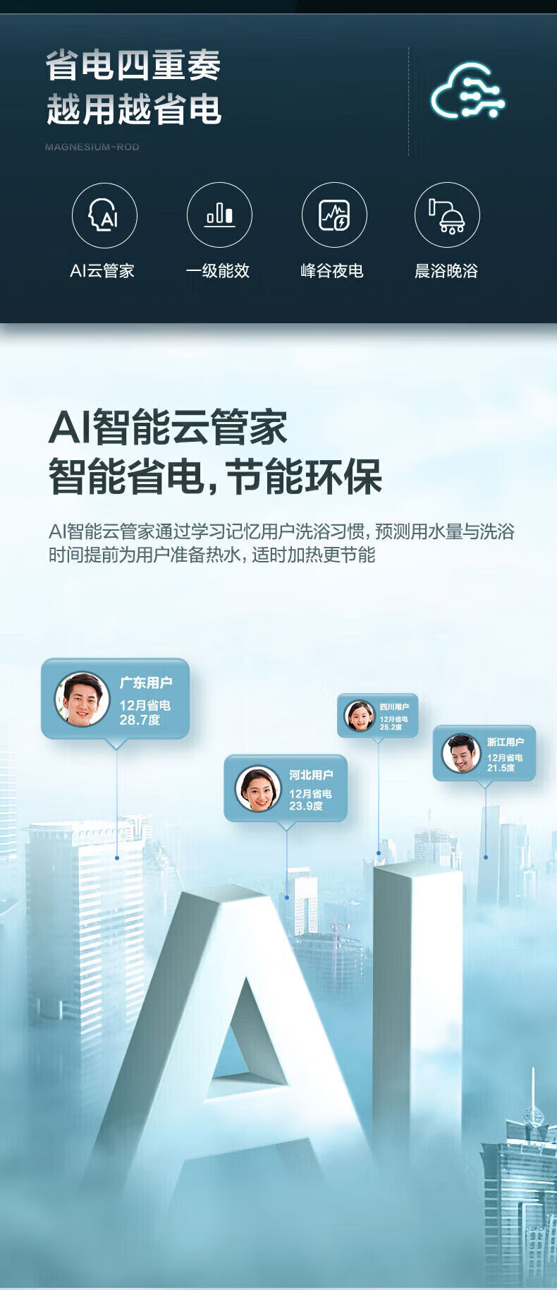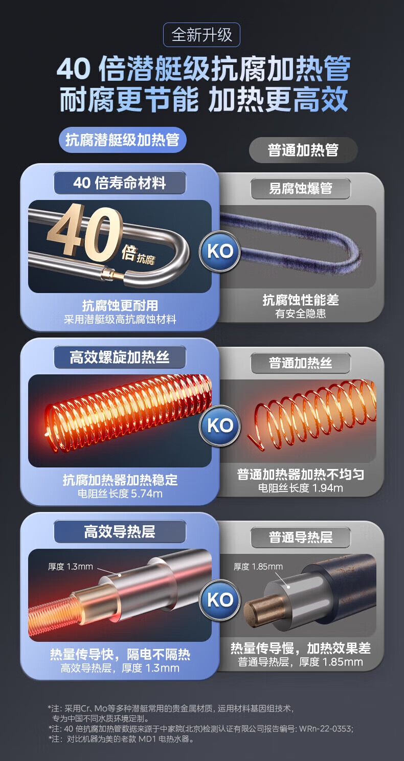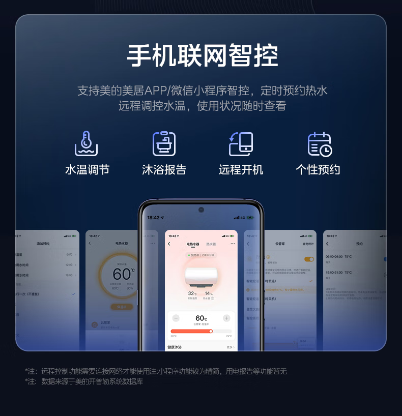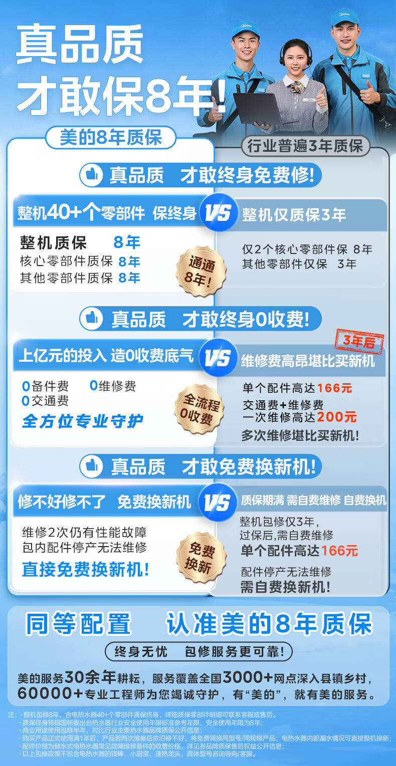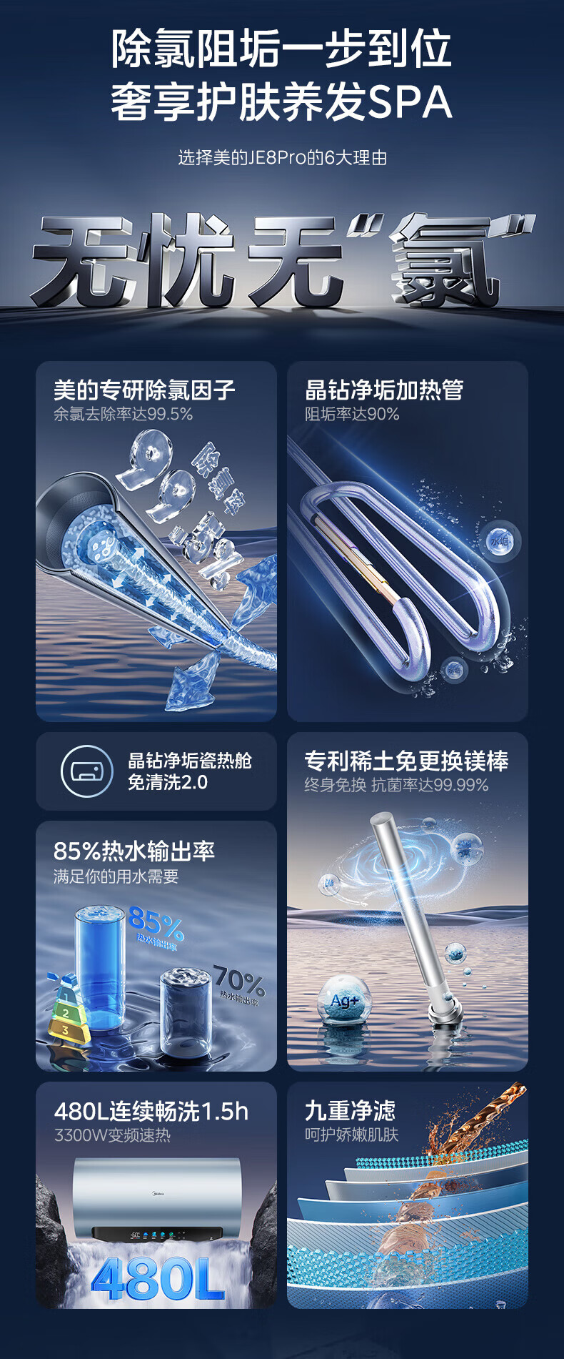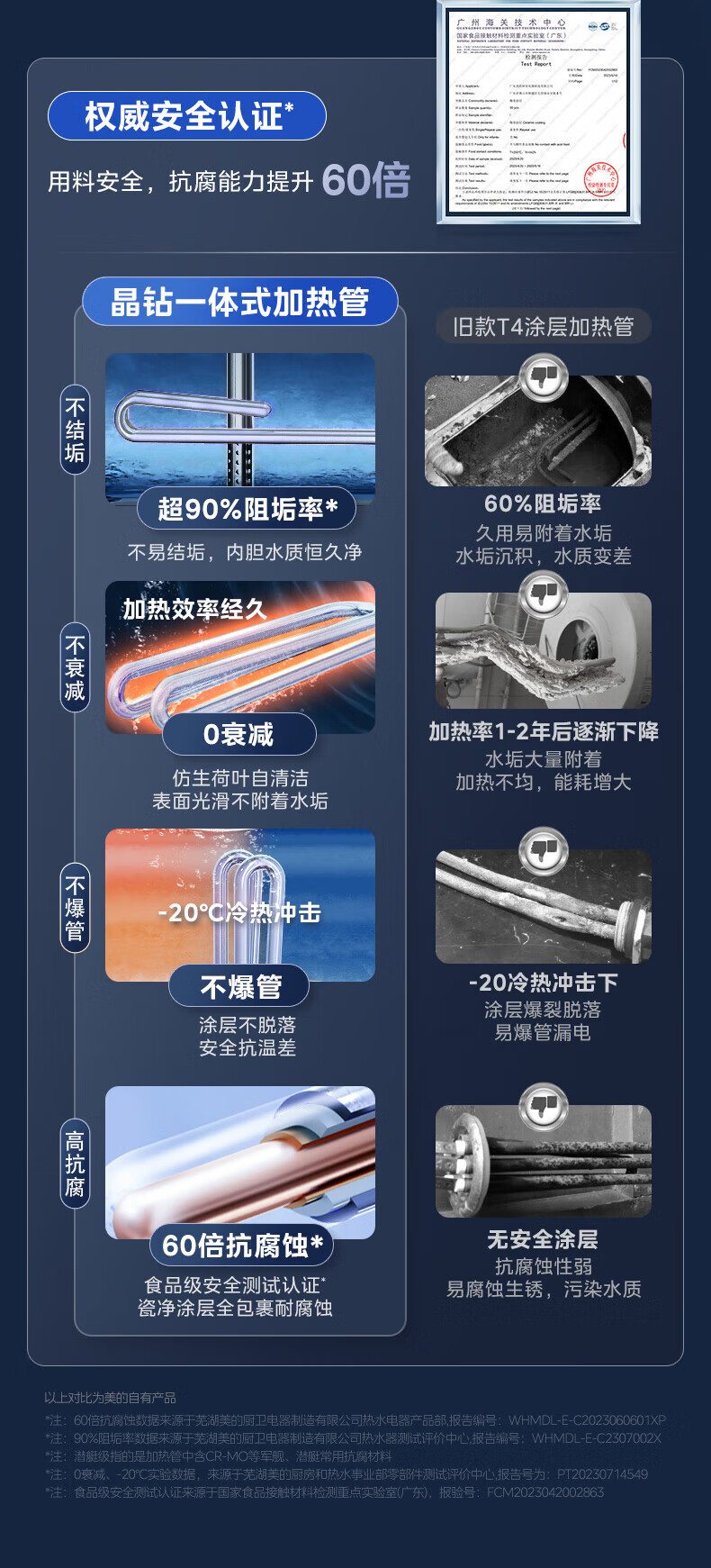 美的(Midea)电热水器60升80升3300W一级能效出水断电速热家用变频节能省电终身镁棒免换免清洗防电墙手机控制 60L 3300W 出水断电 变频双管·JA5
