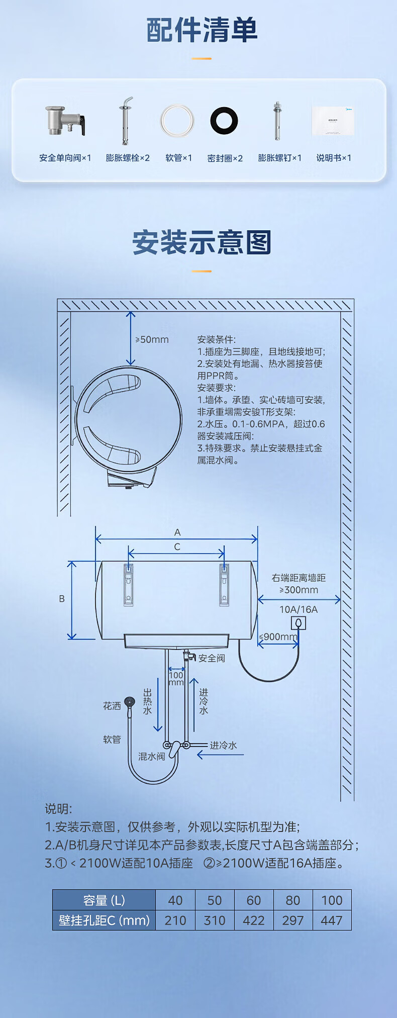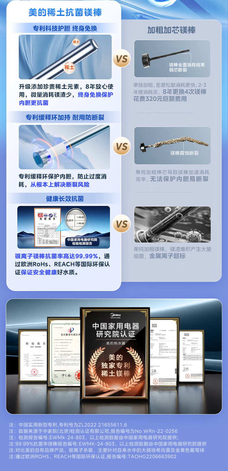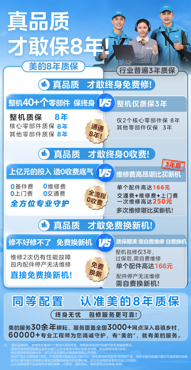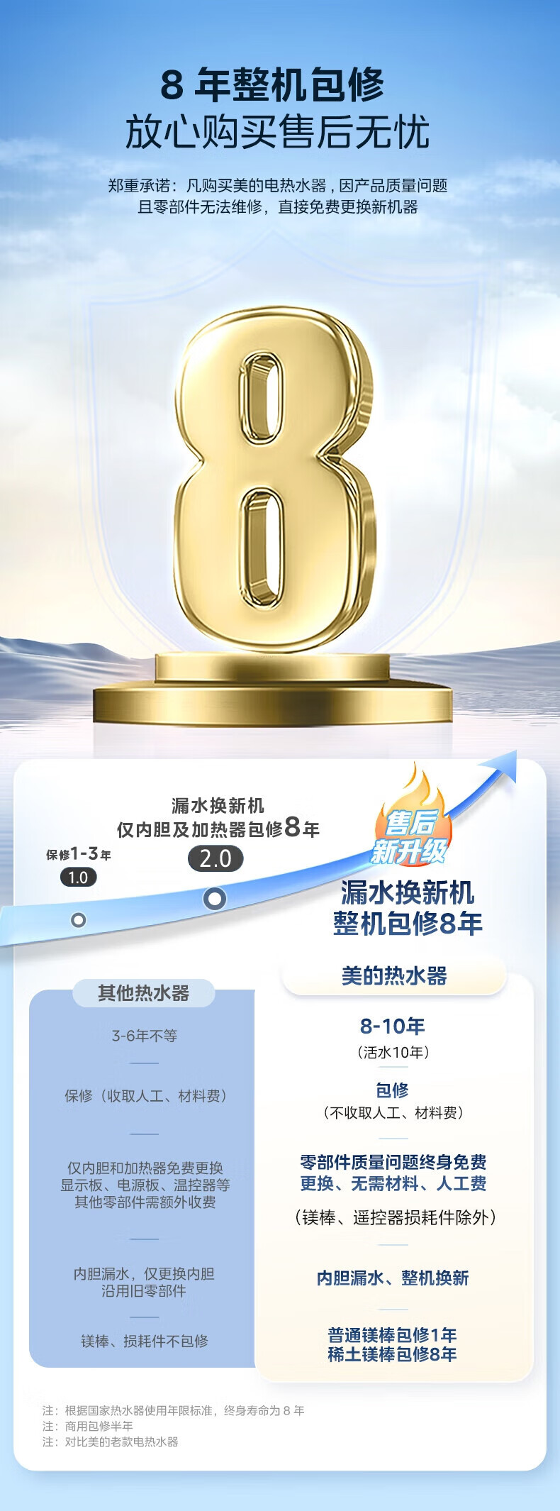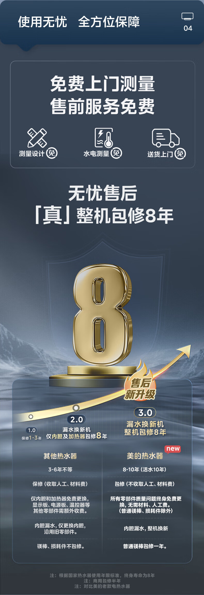 美的(Midea)电热水器60升80升3300W一级能效出水断电速热家用变频节能省电终身镁棒免换免清洗防电墙手机控制 60L 3300W 出水断电 变频双管·JA5