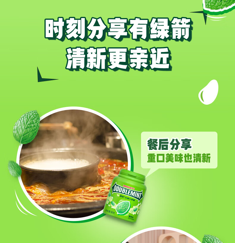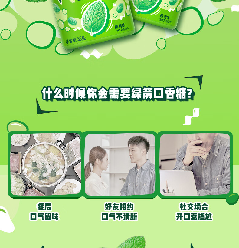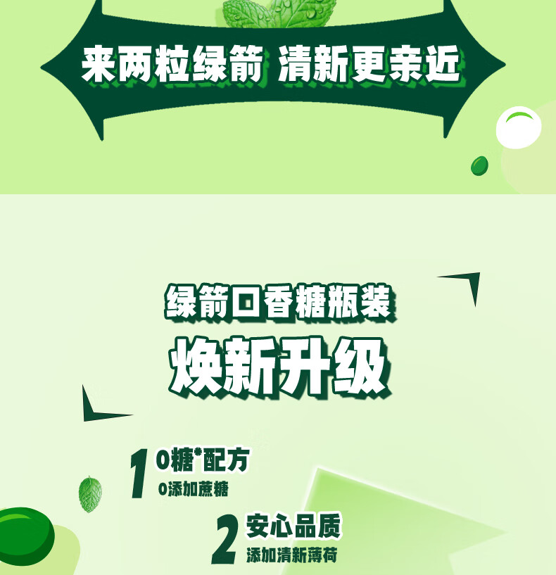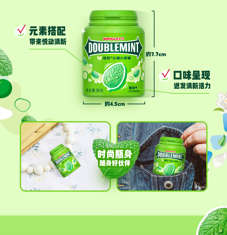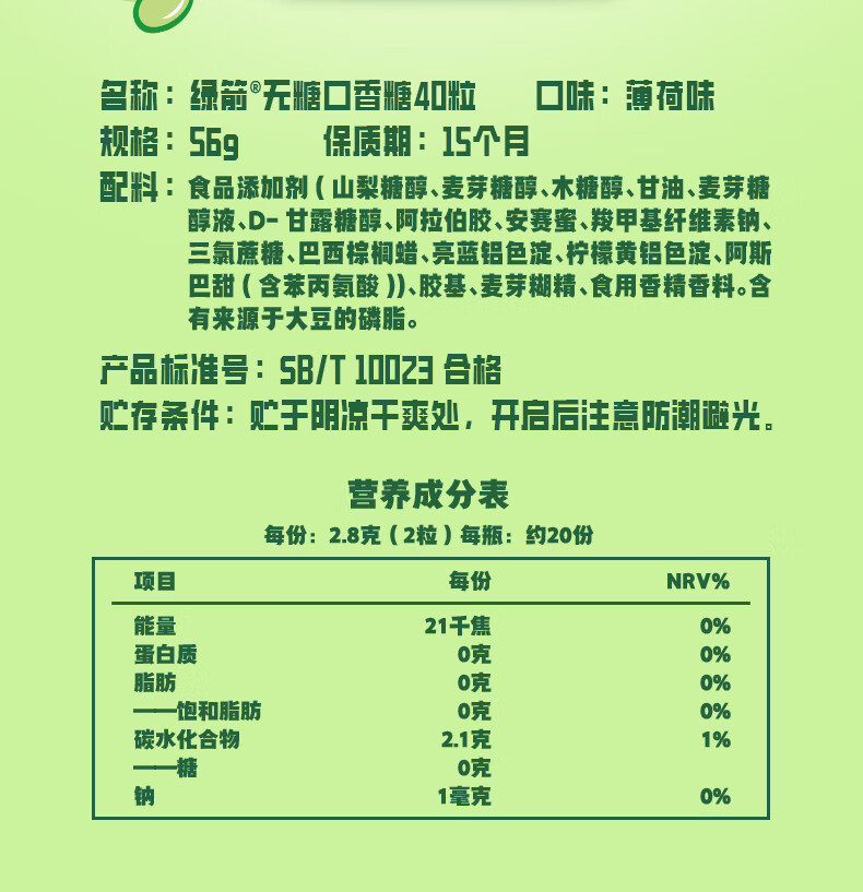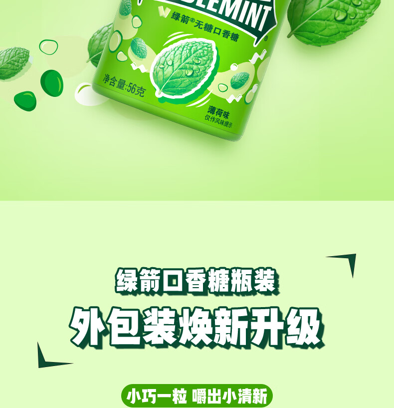 绿箭【白鹿同款】原味薄荷味无糖口香糖果约40粒56g清新口气休闲A 【5瓶】绿箭56g薄荷口味