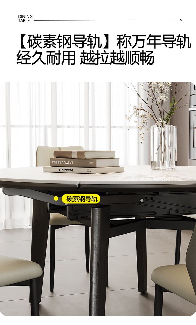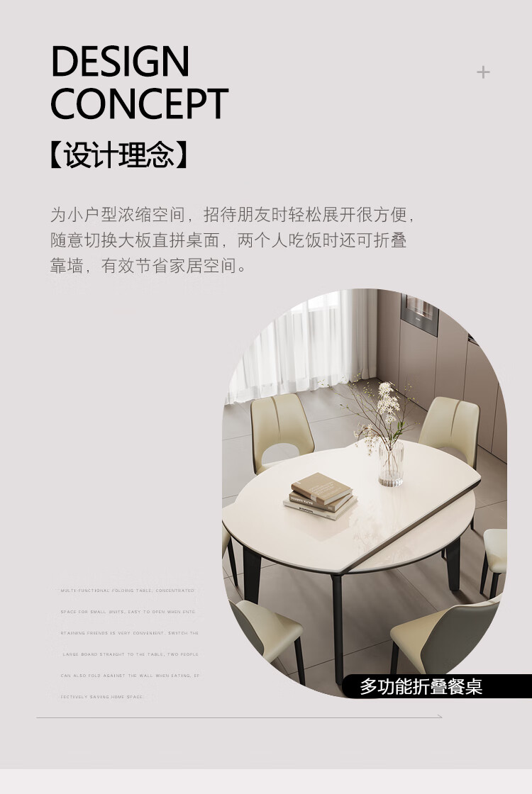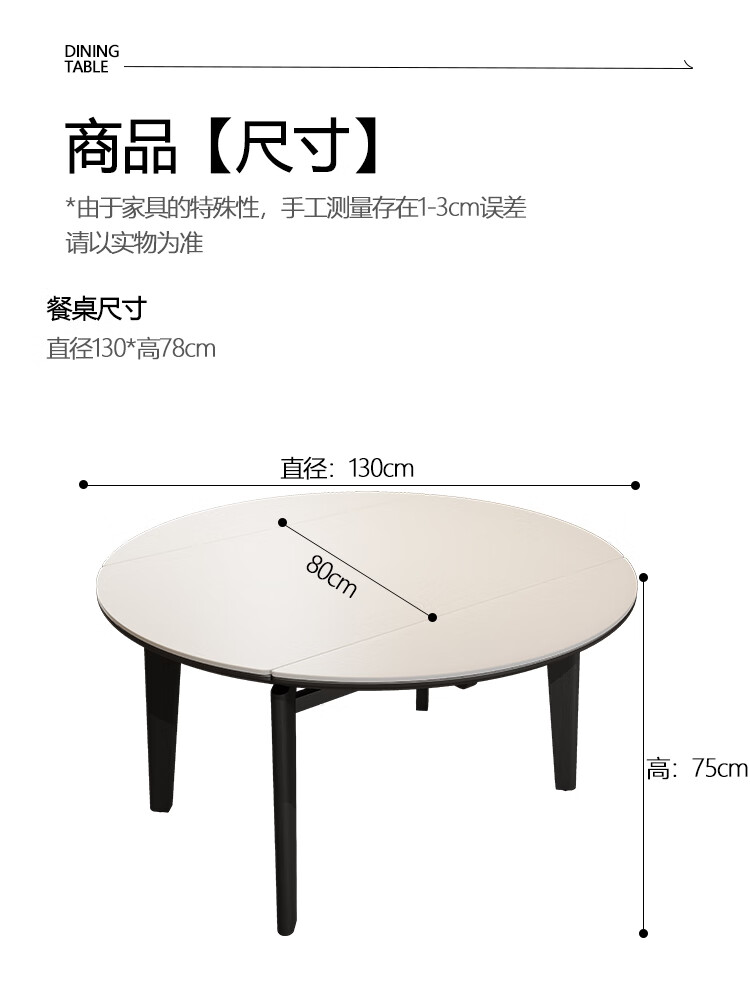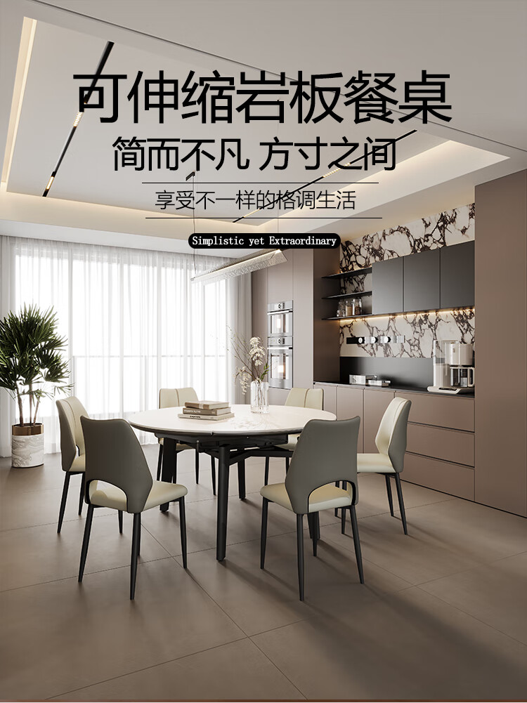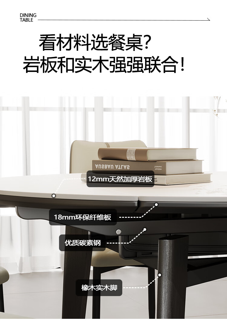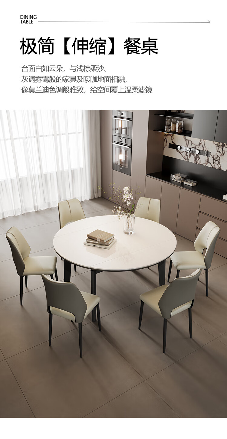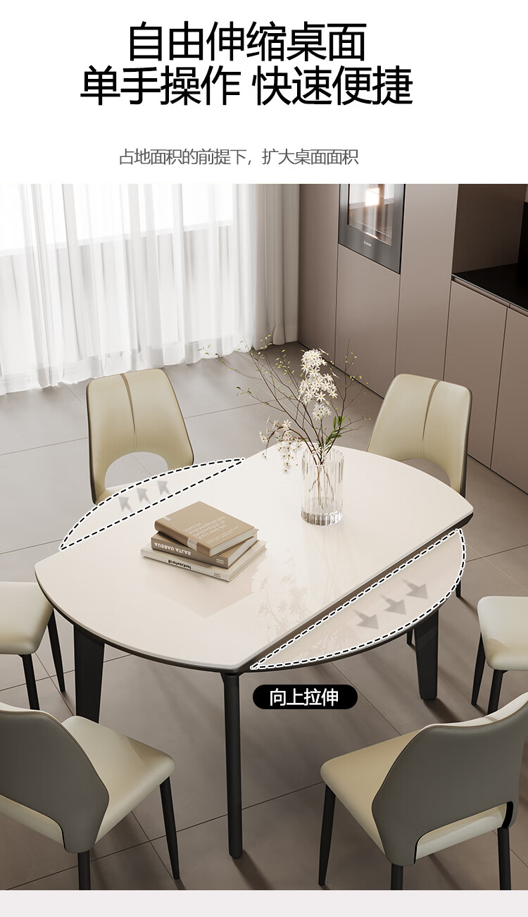 欧荷家具可伸缩餐桌小户型可方可圆现代简约岩板餐桌椅组合家用可变圆桌 1.3m加厚岩板餐桌 一桌四椅
