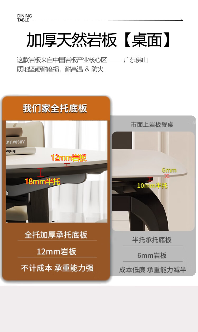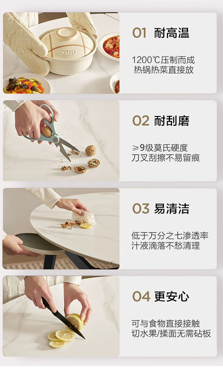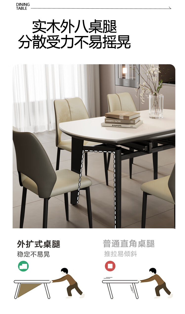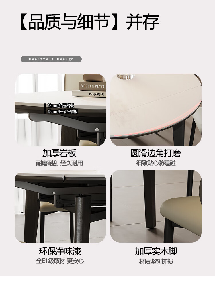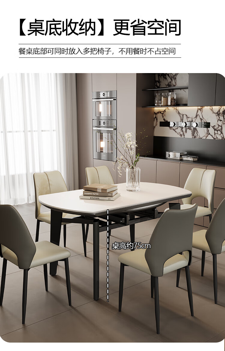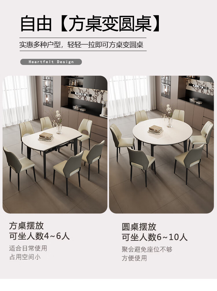 欧荷家具可伸缩餐桌小户型可方可圆现代简约岩板餐桌椅组合家用可变圆桌 1.3m加厚岩板餐桌 一桌四椅