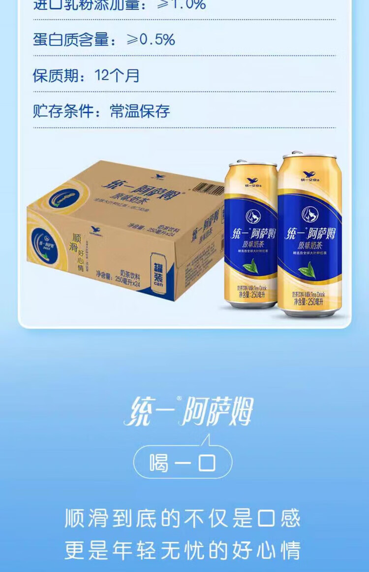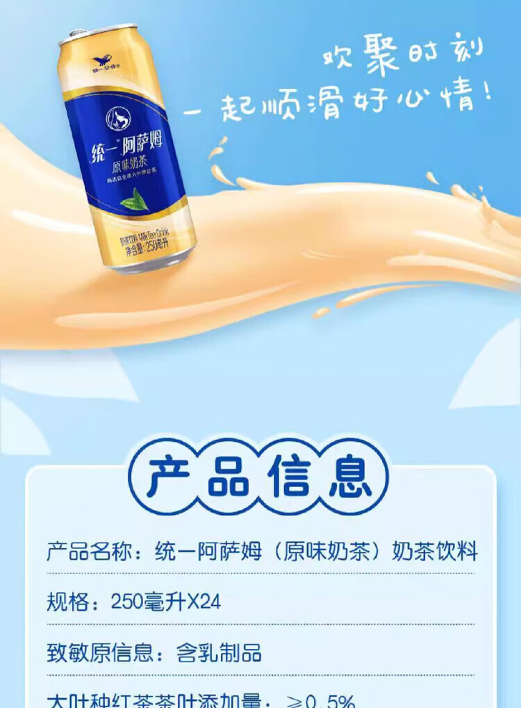 统一阿萨姆奶茶原味250ml*6/12罐小易拉罐装红茶饮品下午茶饮料 原味250ml*6罐(散装)