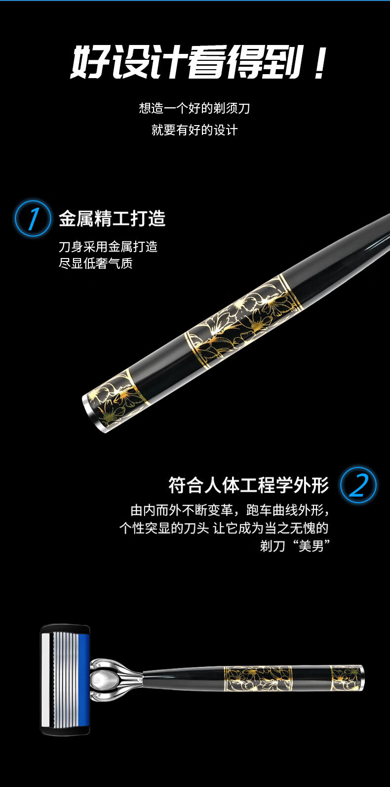 焕醒剃须刀手动进口6层刀片金属刀男士刮胡刀送男友老公礼物礼盒 H600-8(1刀架5刀头1剃须泡1底座)