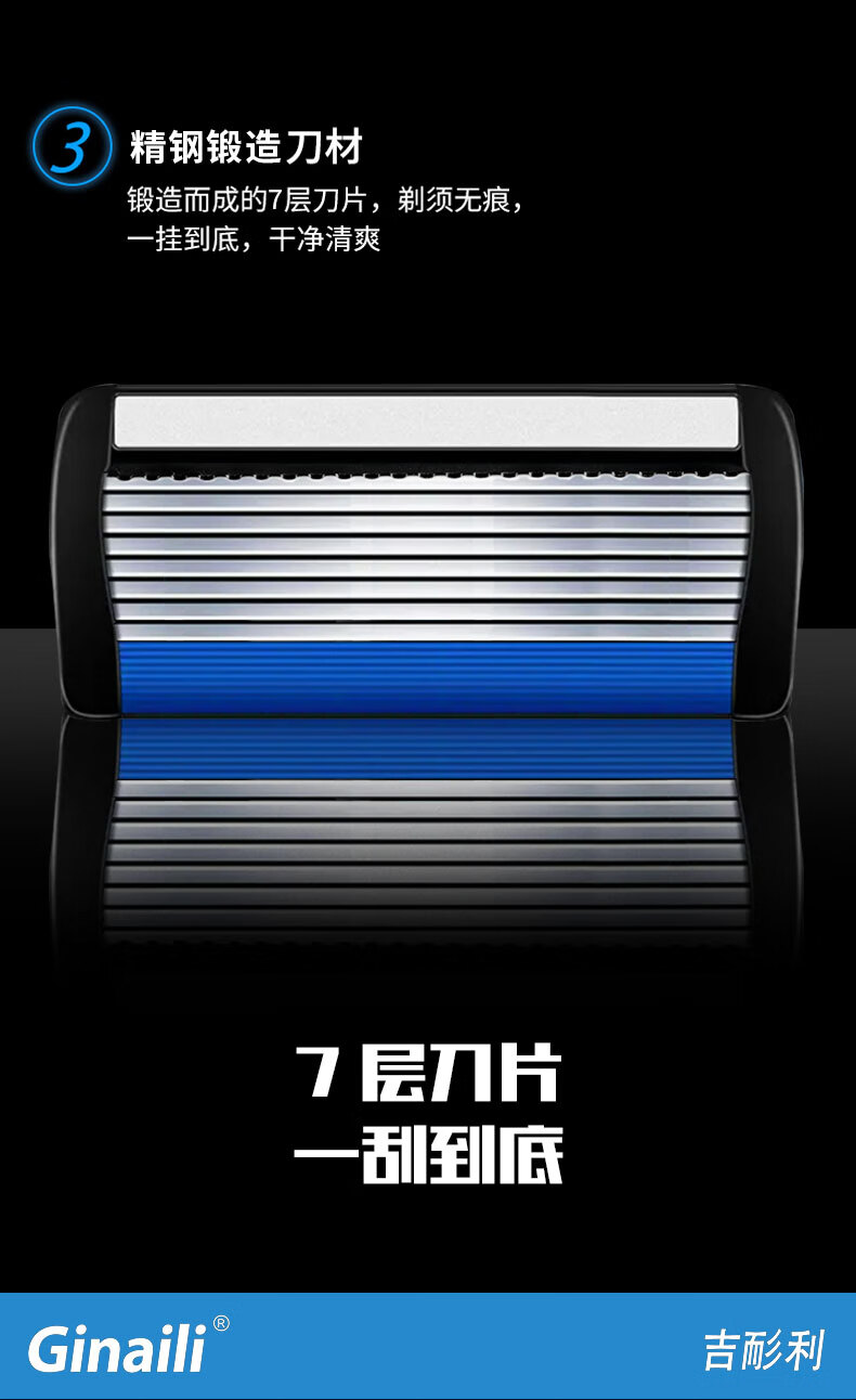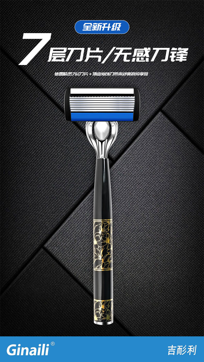 吉耏利新款中国风七层剃须刀手动刮胡刀防刮伤润滑条吉利通用进口刀片 新国风刀架+3刀片送收纳盒+剃须膏