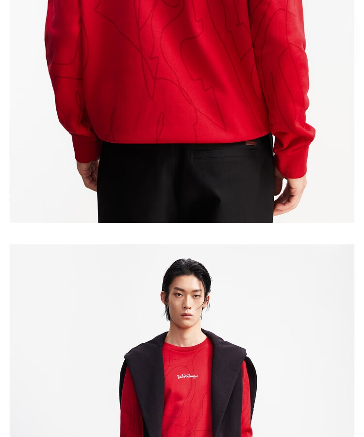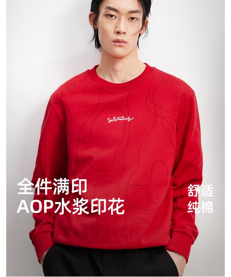 杰克·琼斯(JACK&JONES)【红运系列】骐骥红26马年新款红色卫衣男装圆领长袖套头打底衫 F16红色 XL (185)