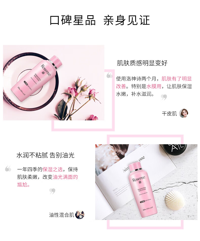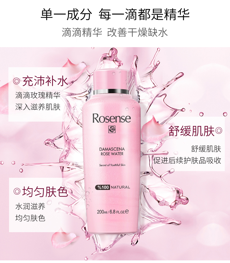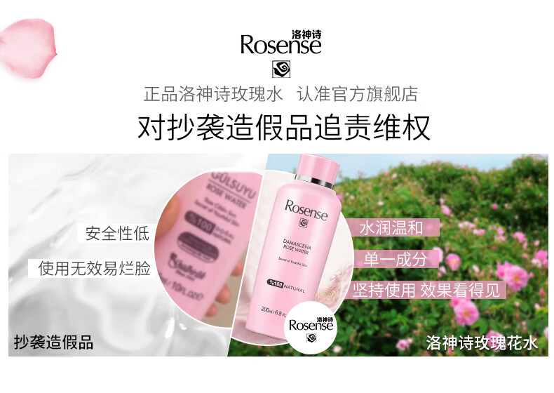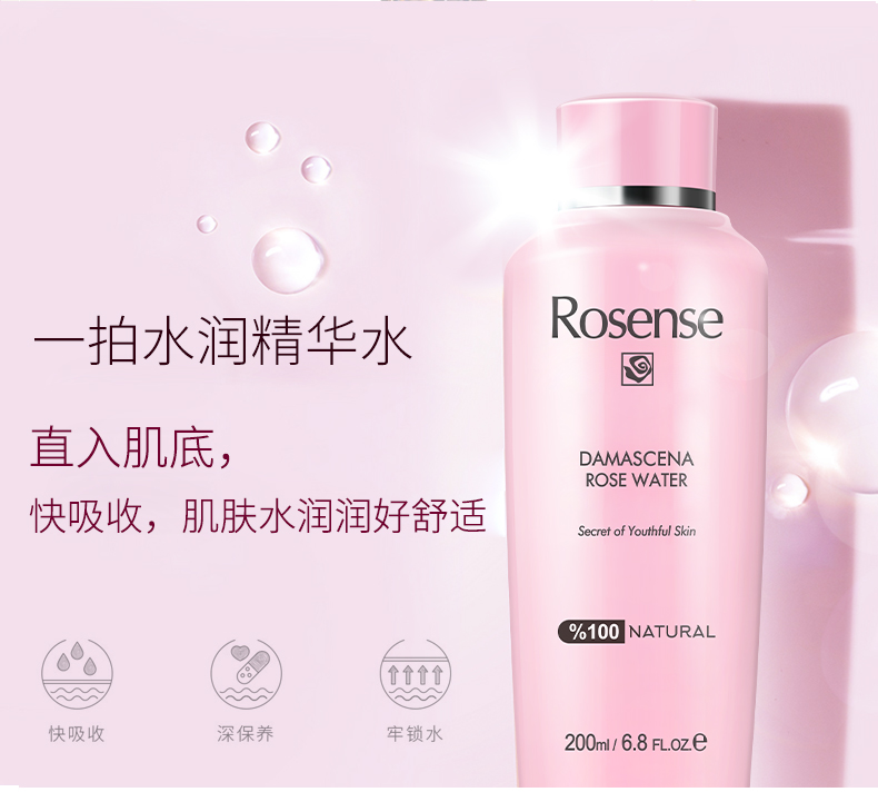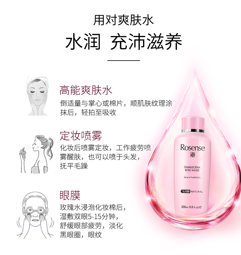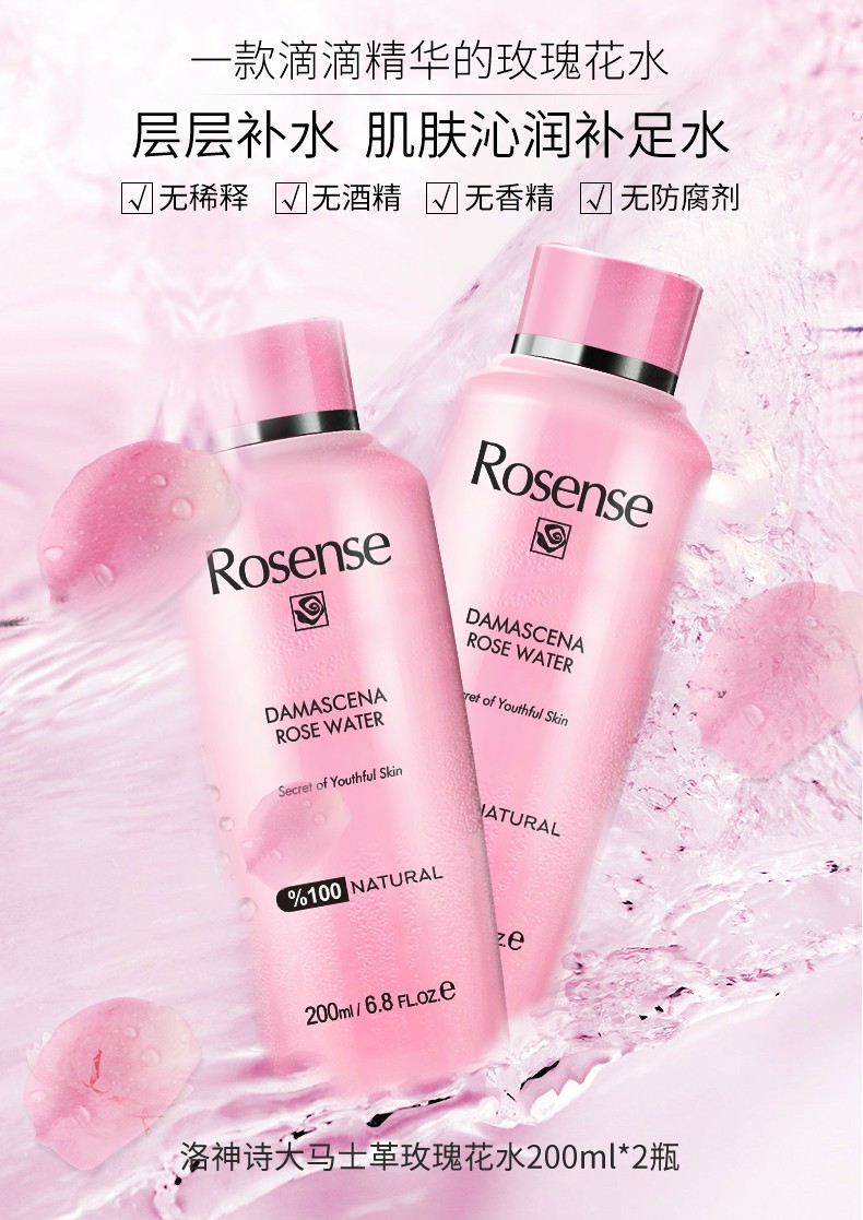 洛神诗(rosense) 土耳其玫瑰水女补水保湿纯露花水化妆爽肤水2瓶装(200ml*2瓶) 玫瑰水200ml*2瓶