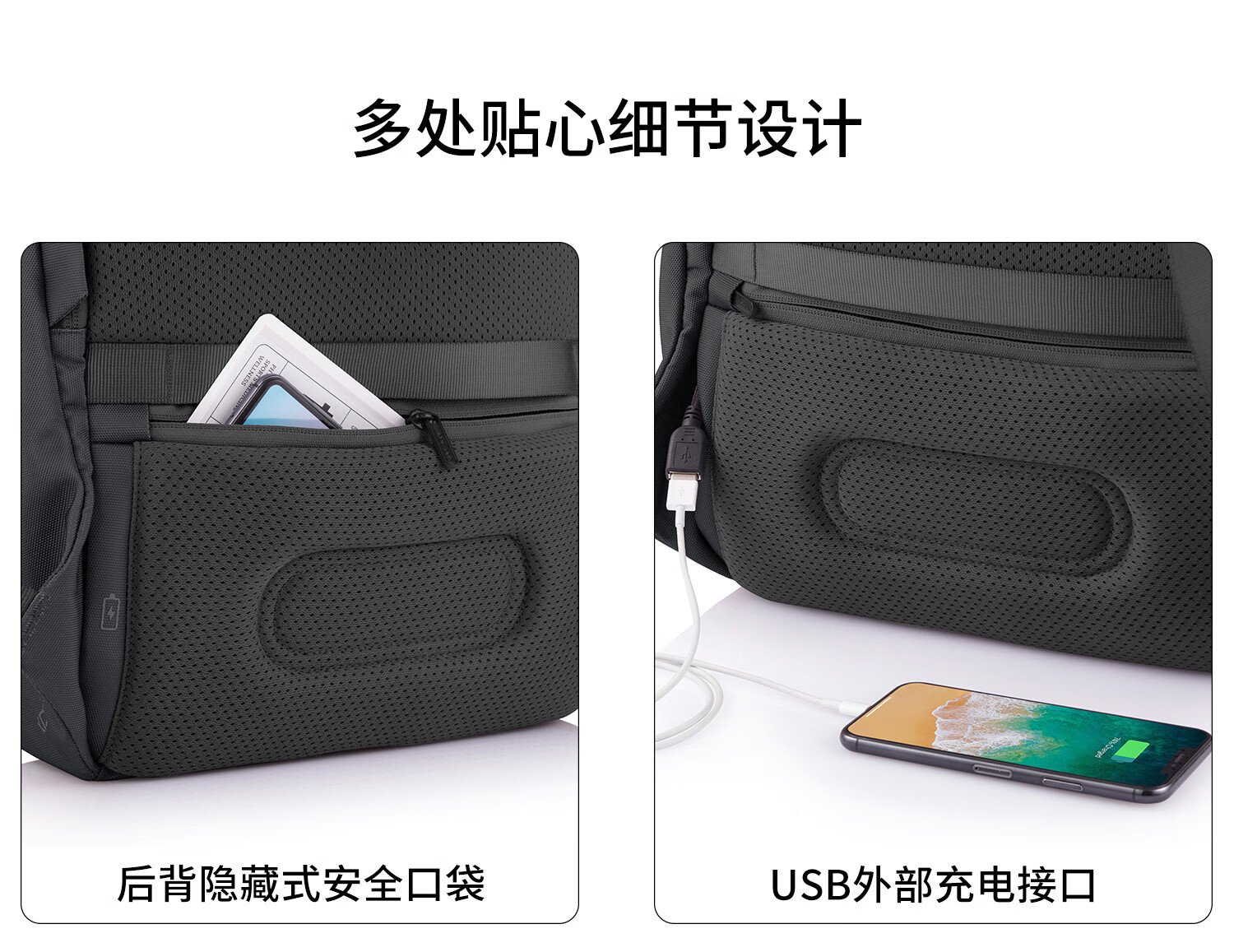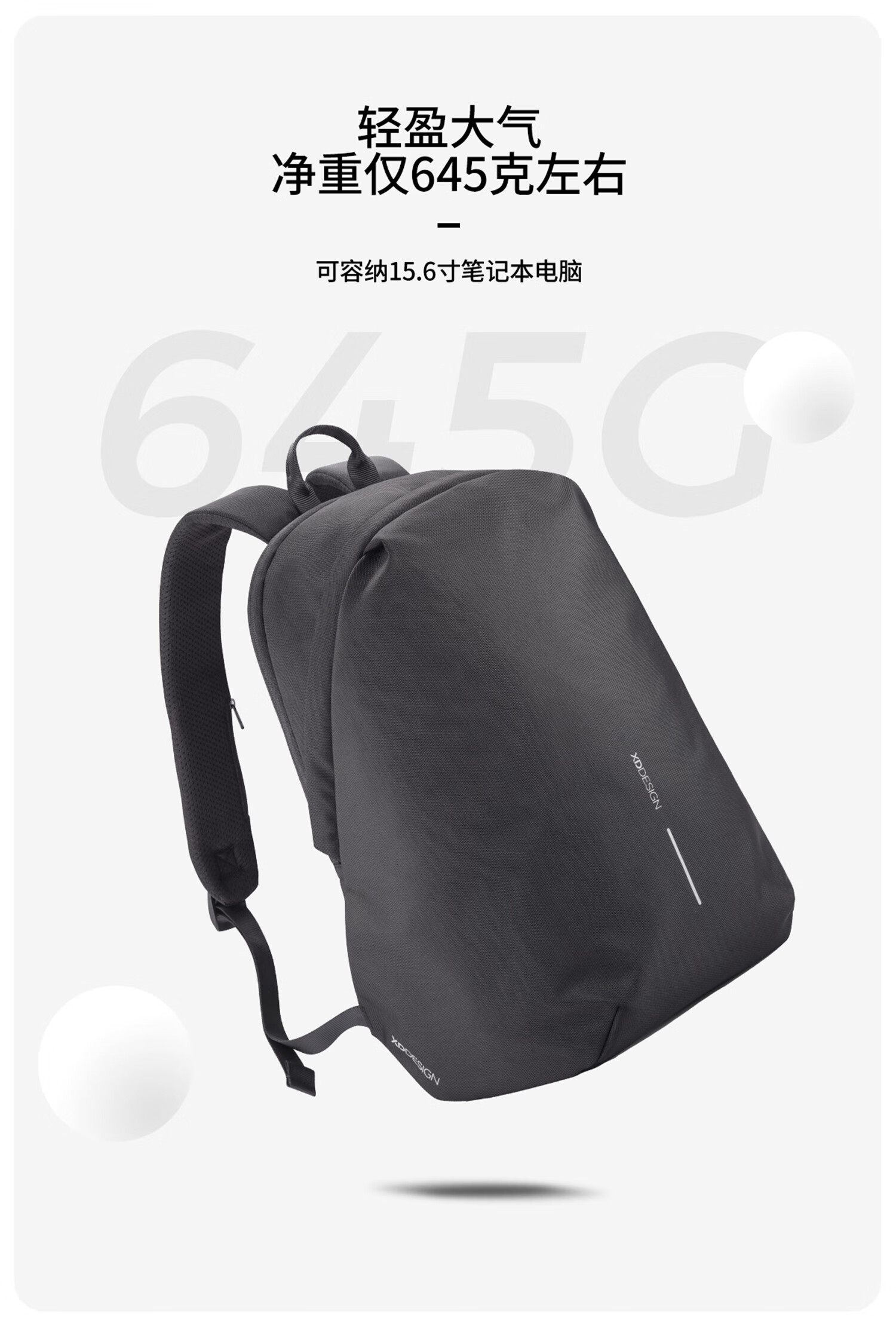 XDDESIGN爱思迪双肩包男女防盗背包通勤15.6英寸笔记本电脑包旅行包休闲包 黑色