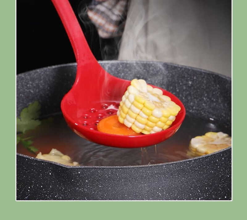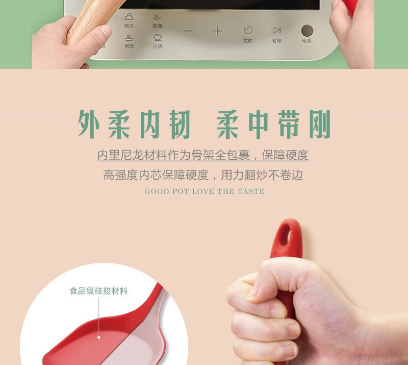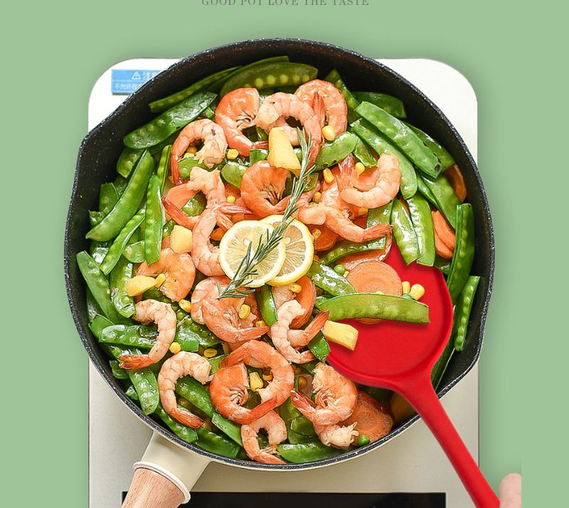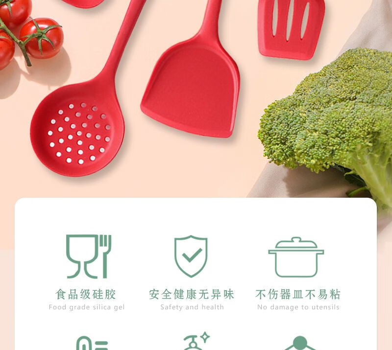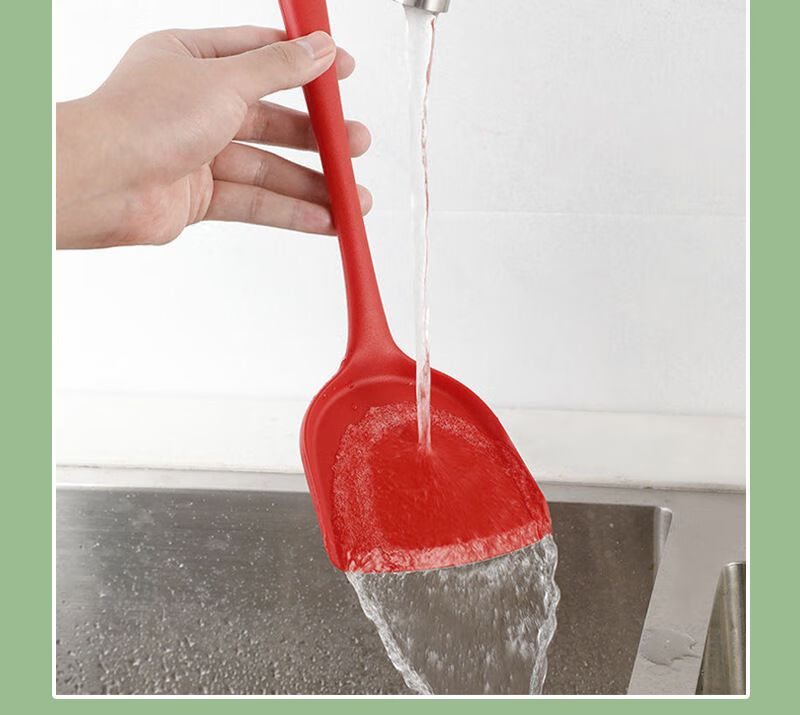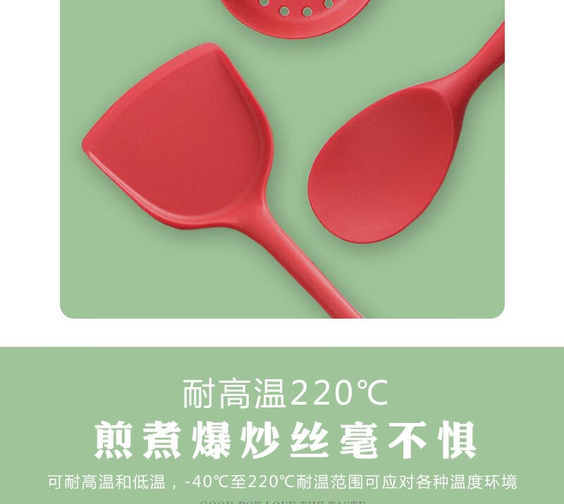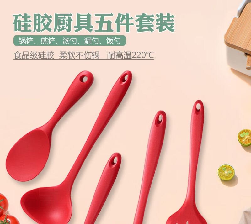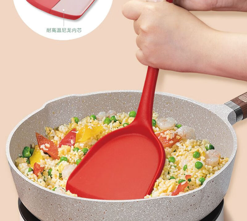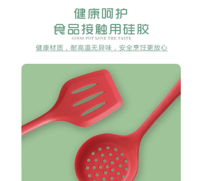 家用硅胶锅铲子不粘锅专用炒菜漏勺烫勺大号加长柄厨房用品耐高温 红色锅铲